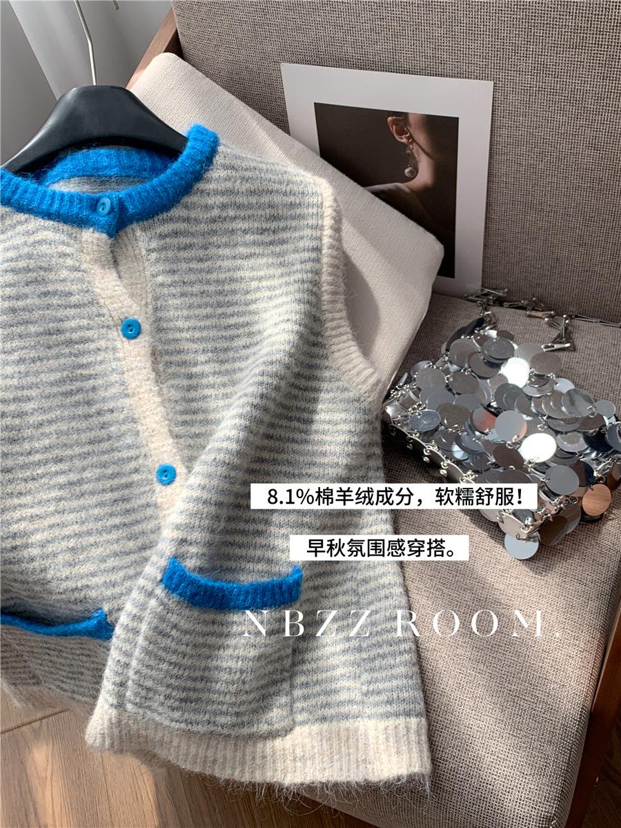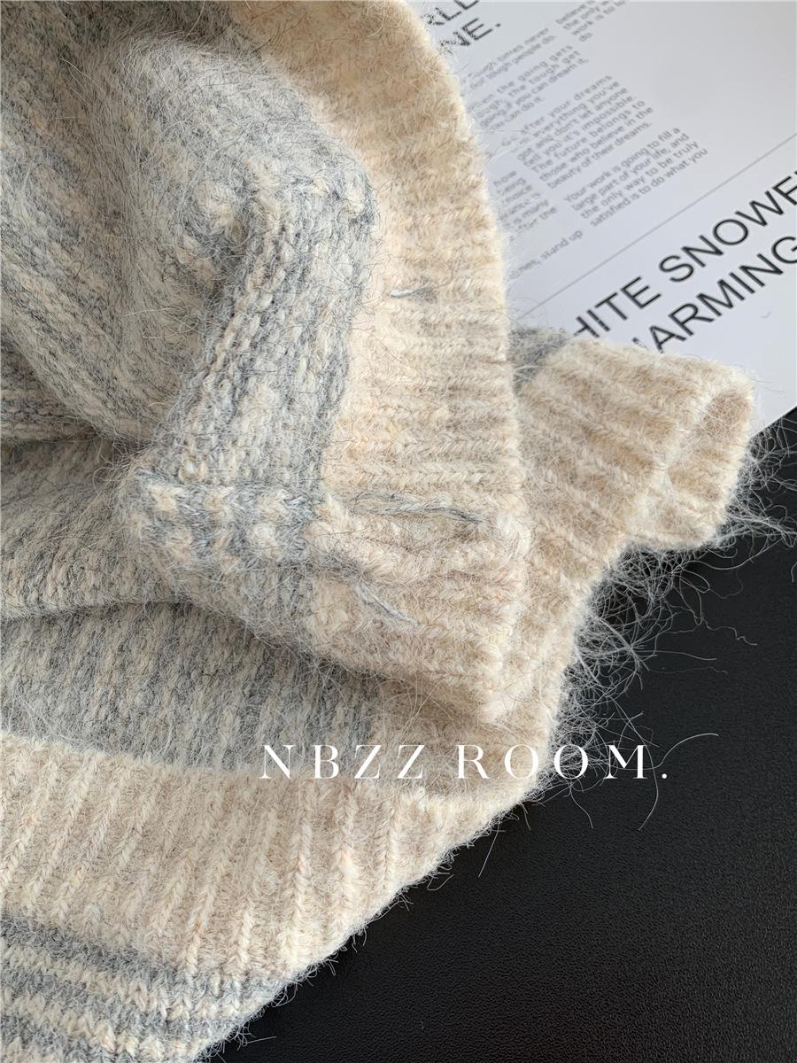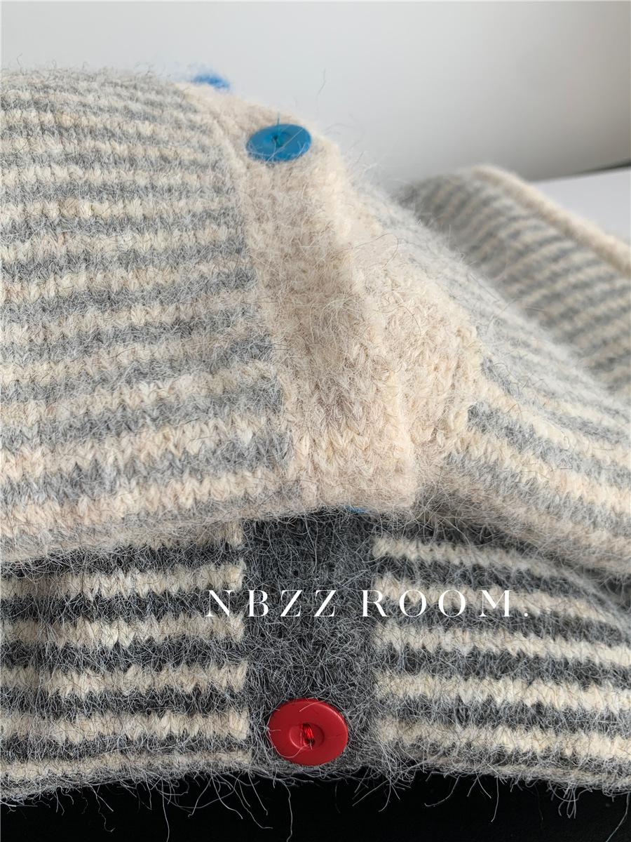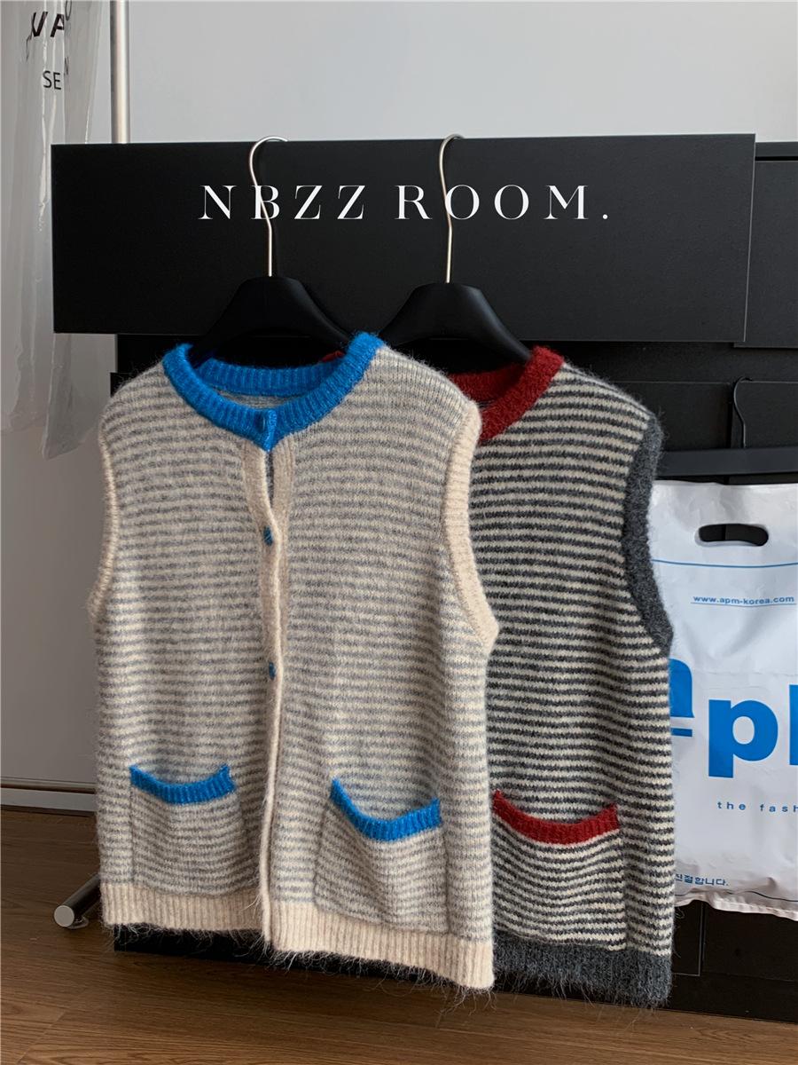 Chaleco de Punto a Rayas con Bloque de Color Retro de Lana Merino 11.5% para Mujer, Suéter Versátil para Capas, Tendencia Otoño/Invierno 2025