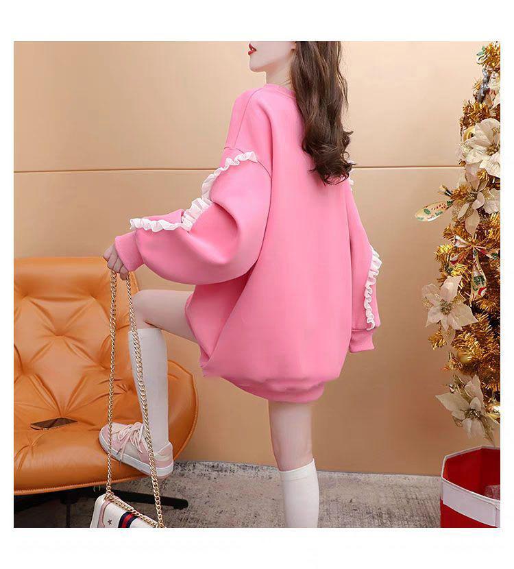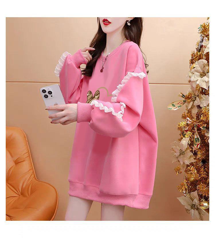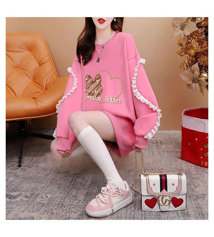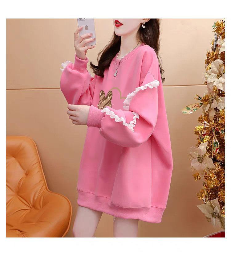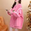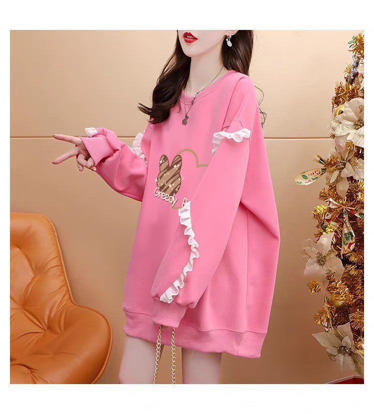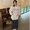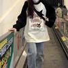 Suéter holgado de estilo perezoso con estampado de dibujos animados divertido para mujer, chic de estilo coreano, con costuras de gasa, combina con todo, top suelto de moda