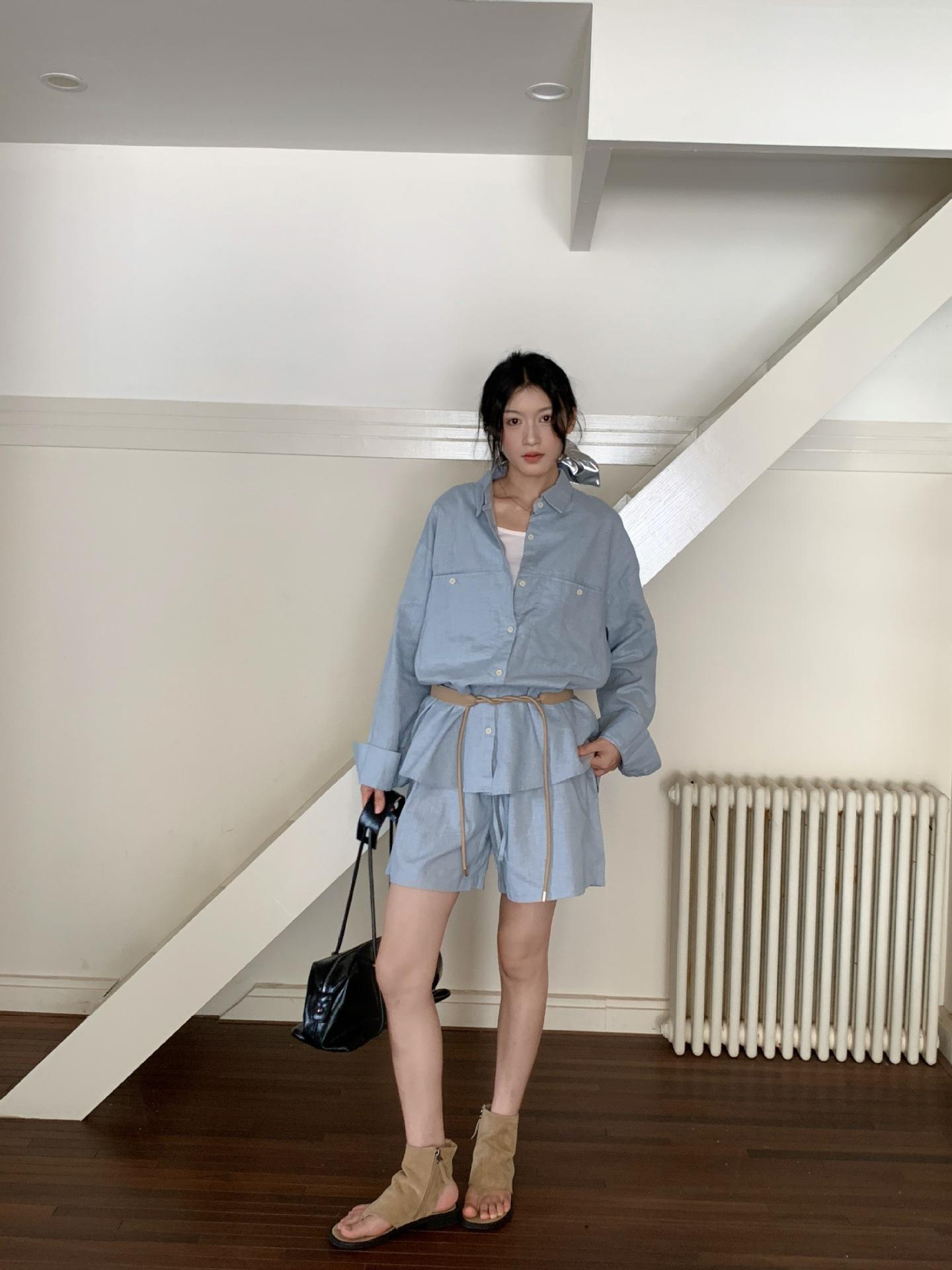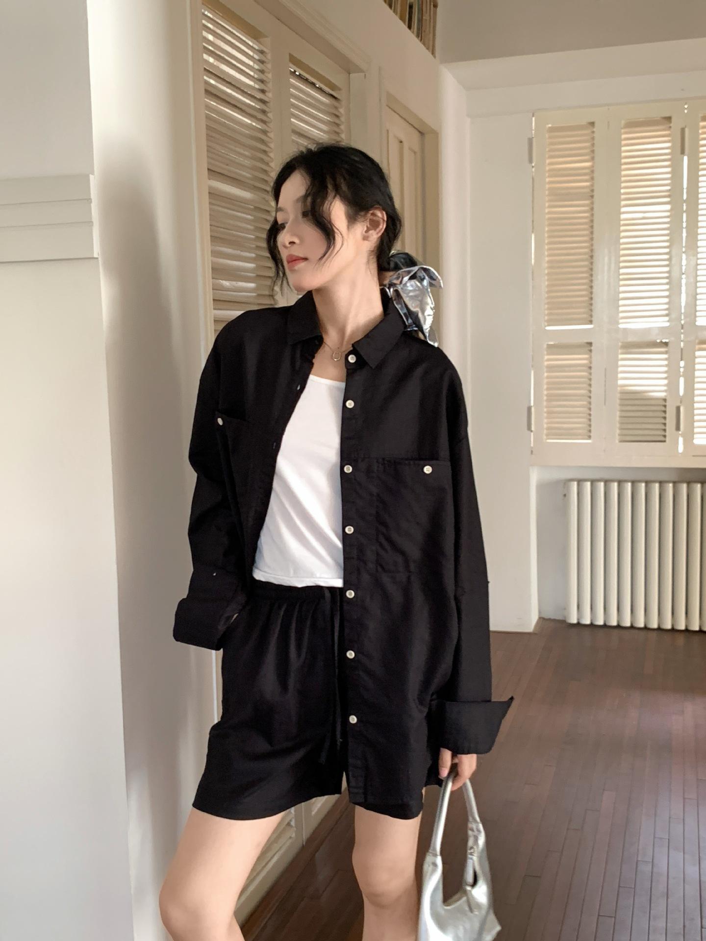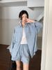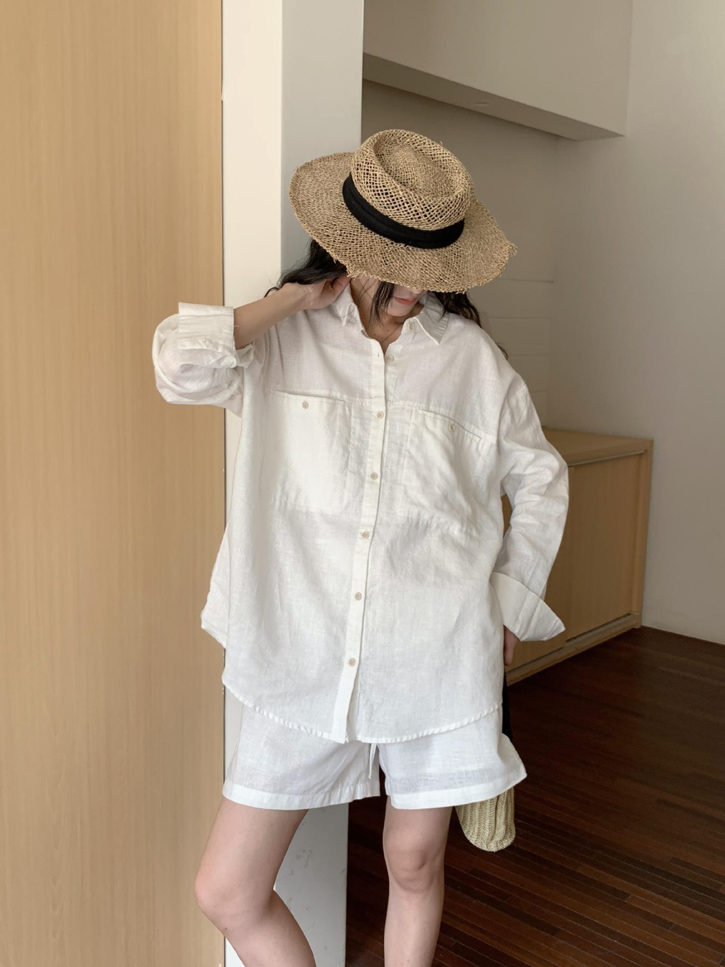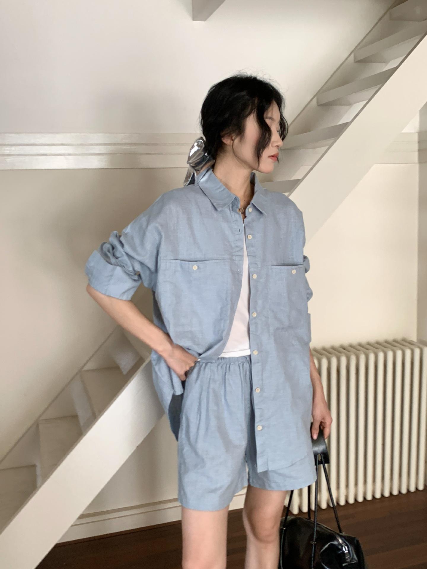 Traje Nuevo de Lino Lavado 2025 para Mujer Verano Dos Piezas de Alta Gama Slim Casual Camisa de Manga Larga Traje de Shorts