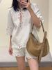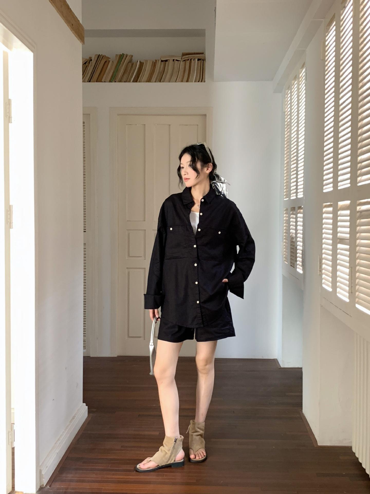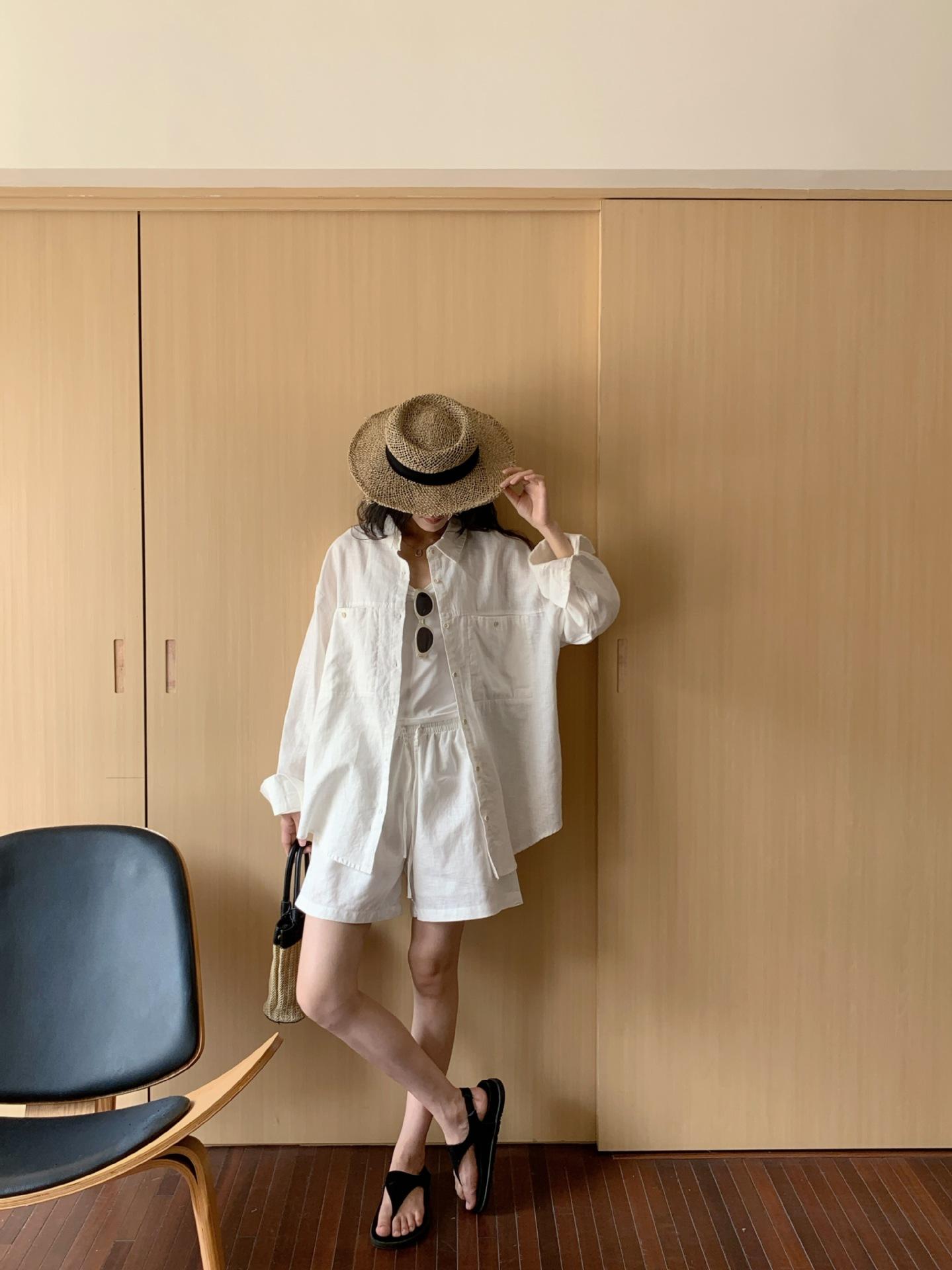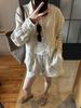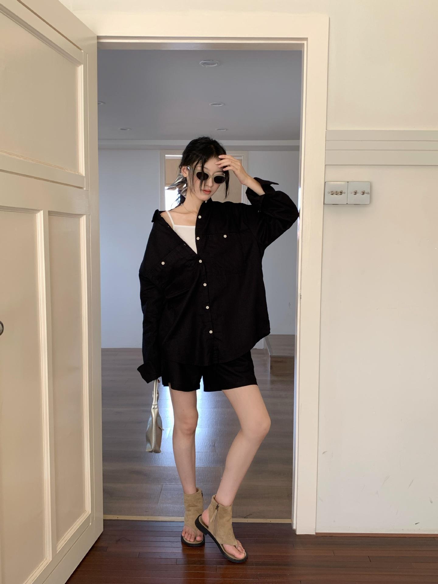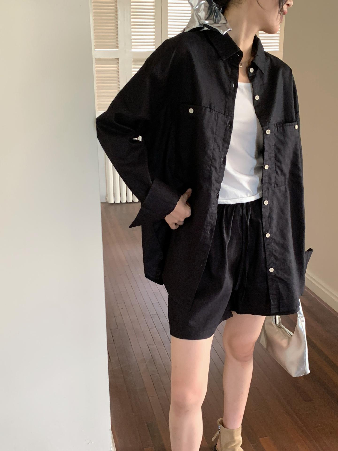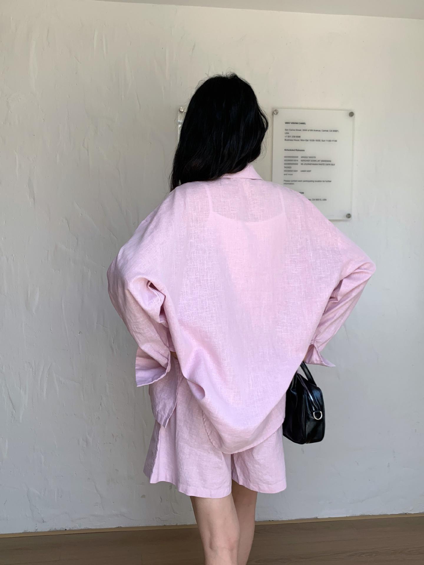 Traje Nuevo de Lino Lavado 2025 para Mujer Verano Dos Piezas de Alta Gama Slim Casual Camisa de Manga Larga Traje de Shorts