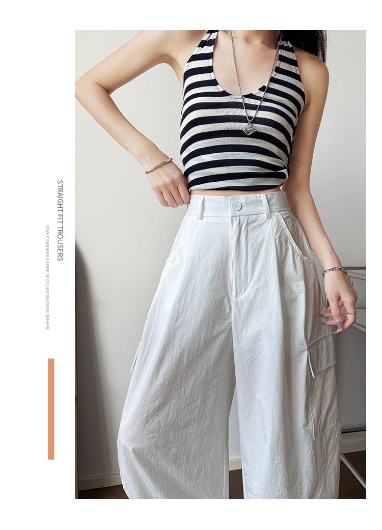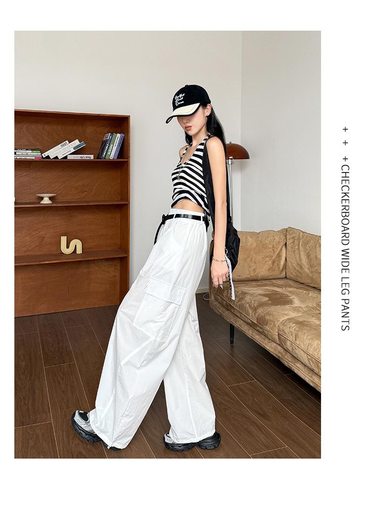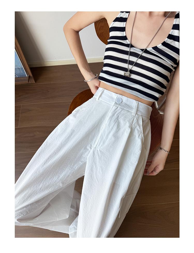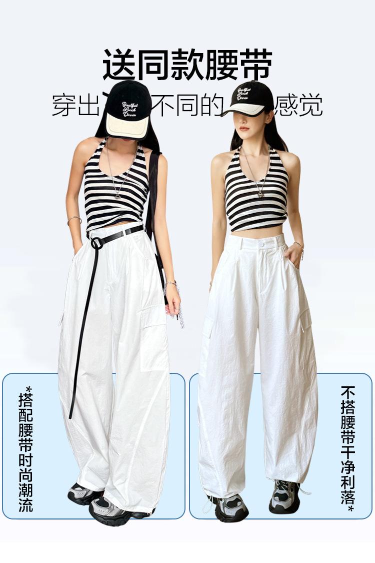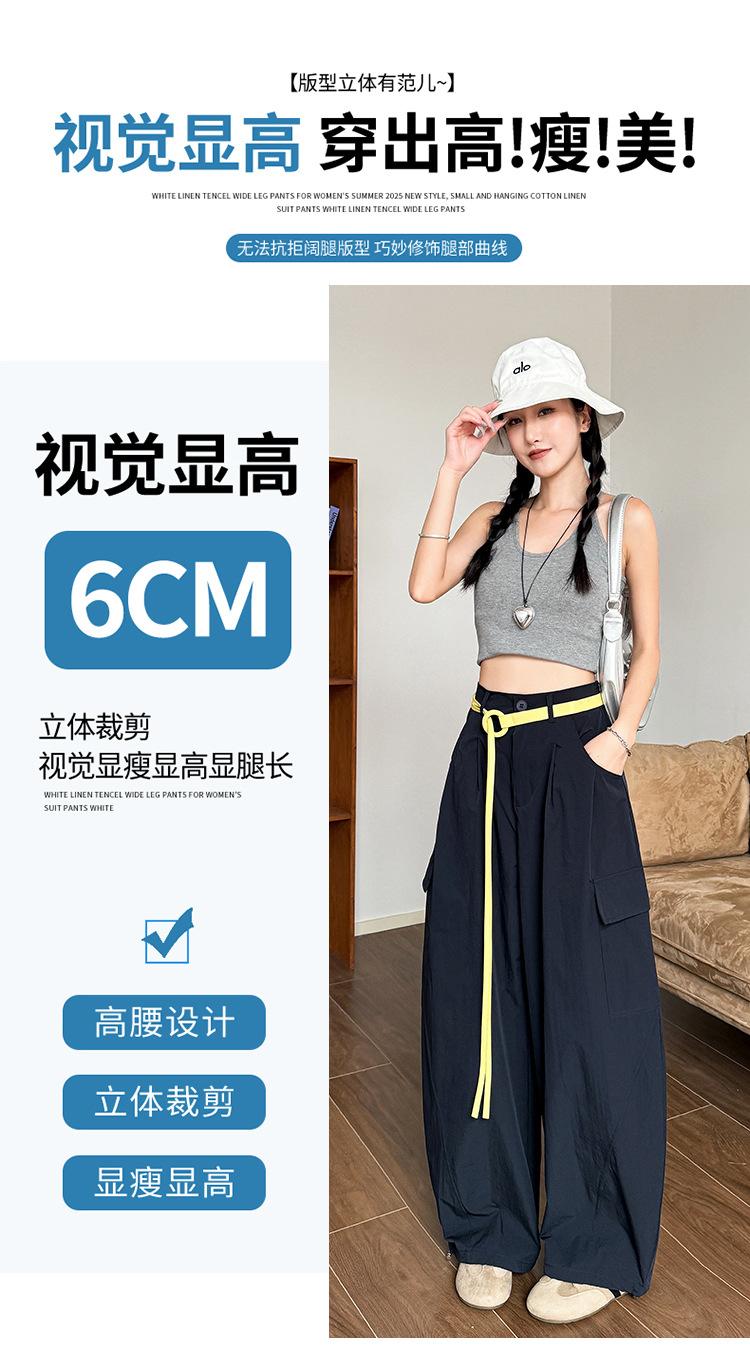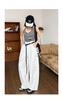 Pantalones de Trabajo Americanos Blancos Mujer Otoño 2025 Petite Cintura Alta Cimitarra Casual Adelgazantes Chica Caliente Pantalones de Pierna Ancha A6426