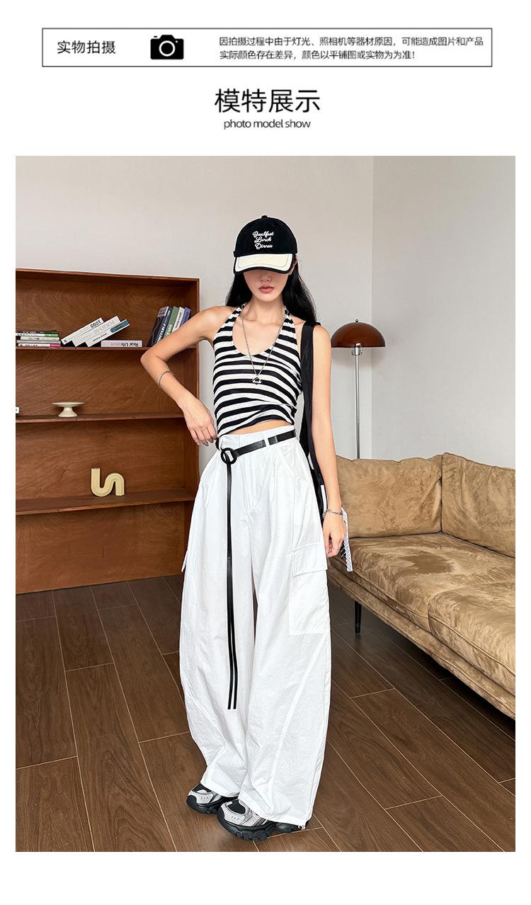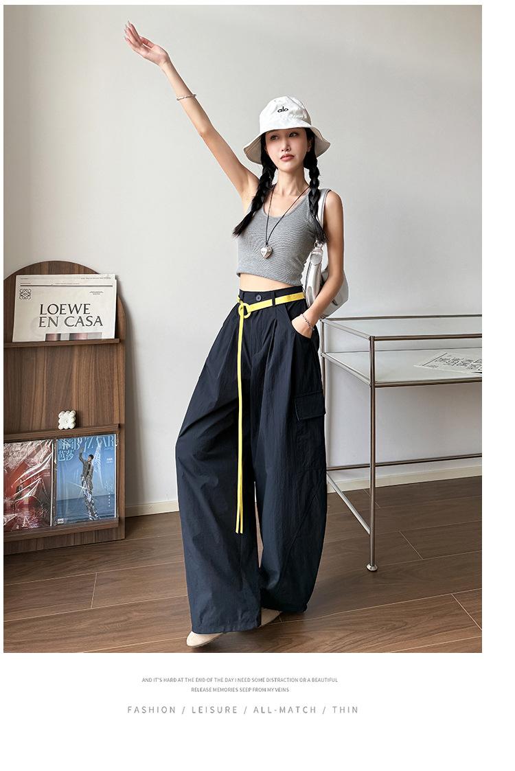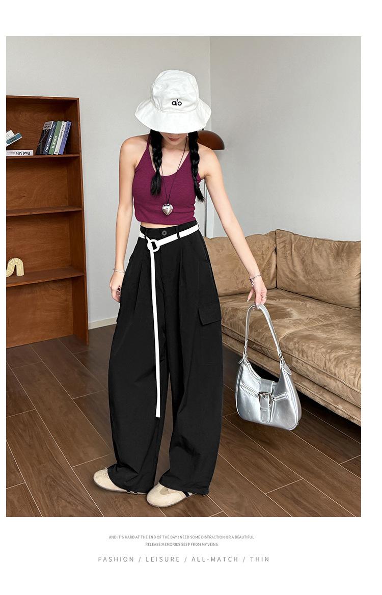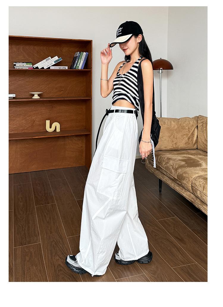 Pantalones de Trabajo Americanos Blancos Mujer Otoño 2025 Petite Cintura Alta Cimitarra Casual Adelgazantes Chica Caliente Pantalones de Pierna Ancha A6426