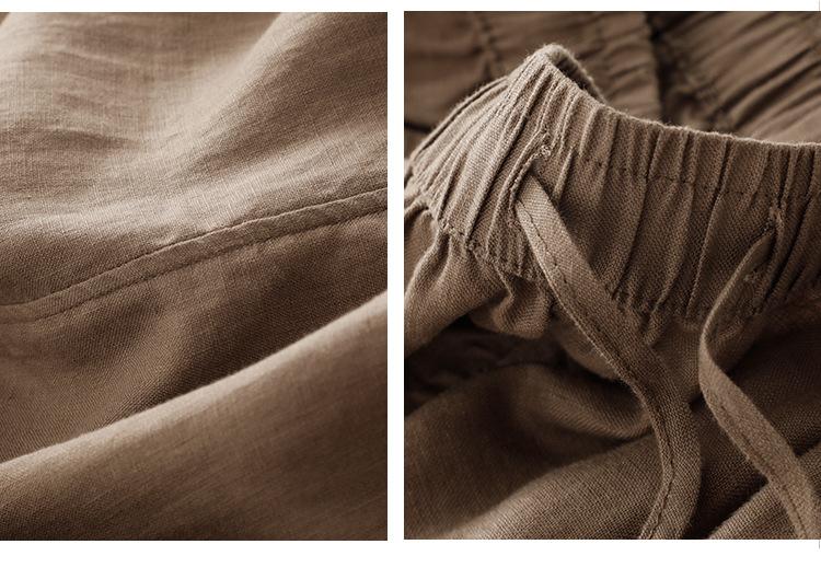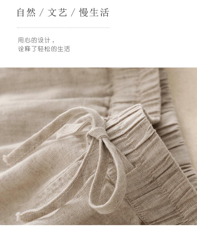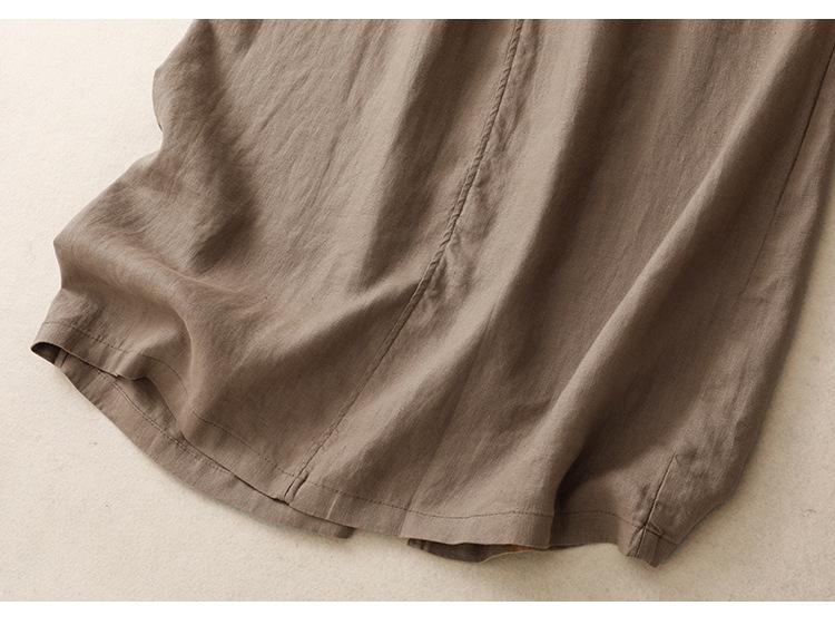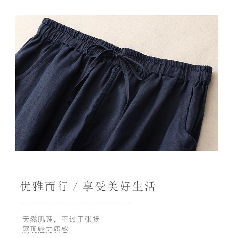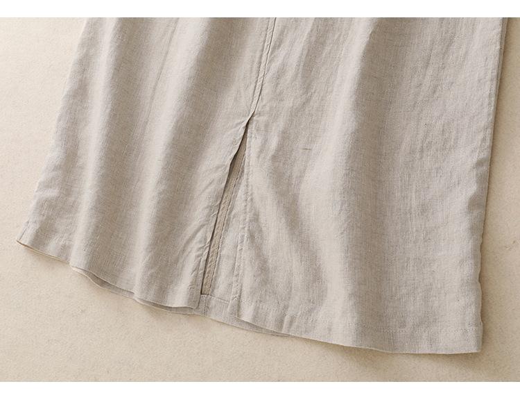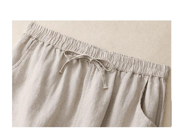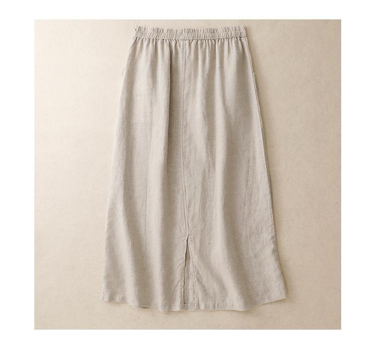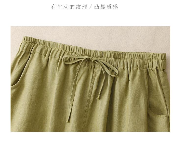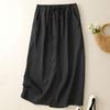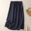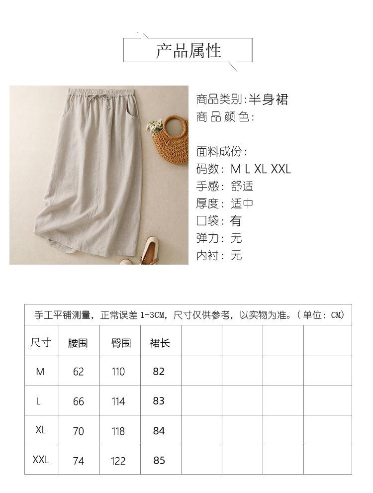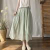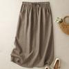 Falda de Lino Versátil de Largo Medio Literaria Adelgazante Línea A Color Sólido Lazo Falda Nueve Puntos Falda de Lino Fresca