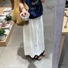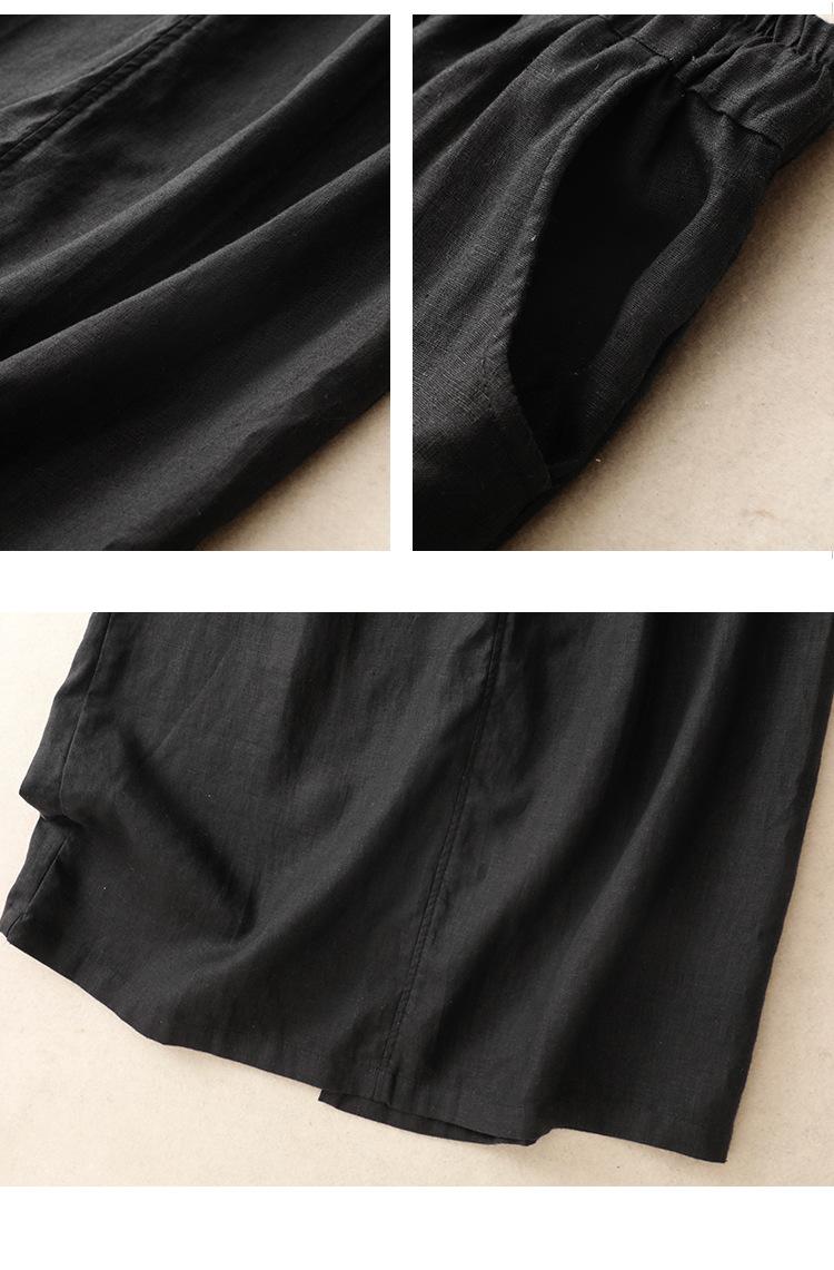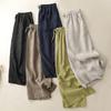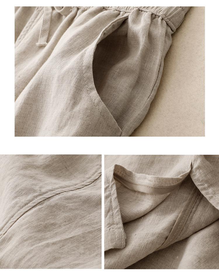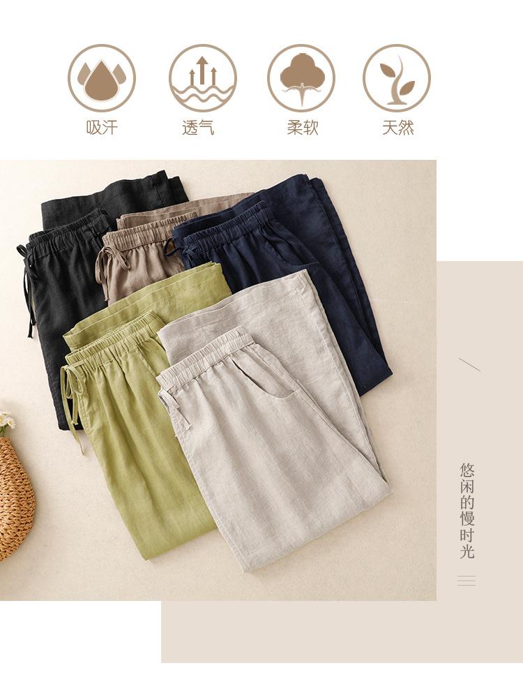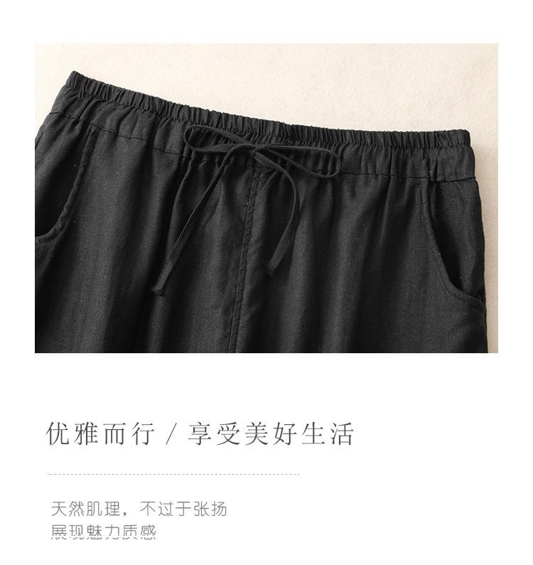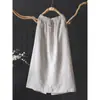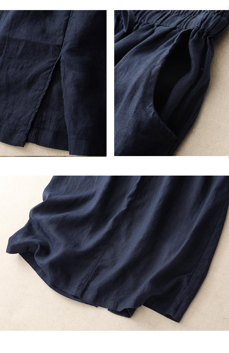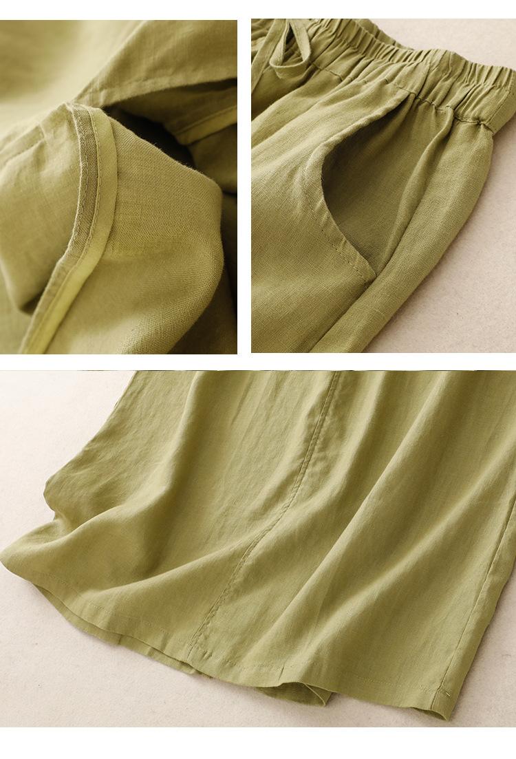 Falda de Lino Versátil de Largo Medio Literaria Adelgazante Línea A Color Sólido Lazo Falda Nueve Puntos Falda de Lino Fresca