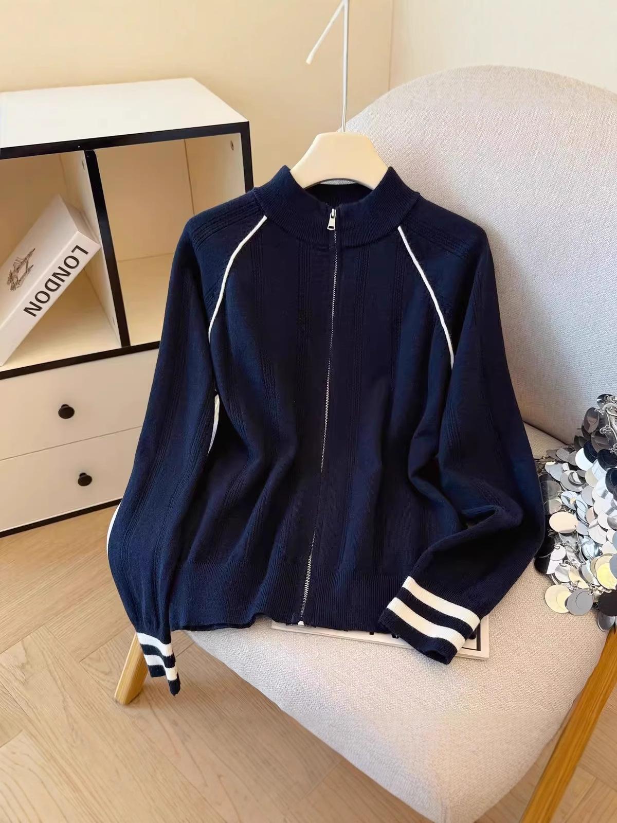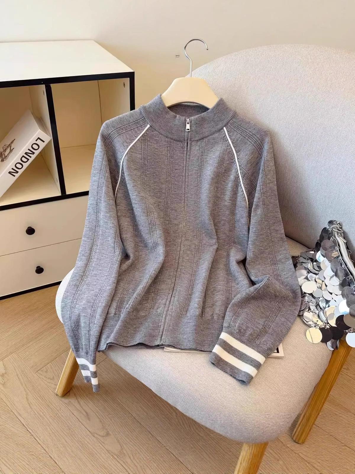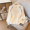 Chaqueta Deportiva Corta de Béisbol Estilo Coreano para Mujer Otoño de Alta Gama Suelta Perezosa con Cremallera Ropa Exterior Elegante Cárdigan Top