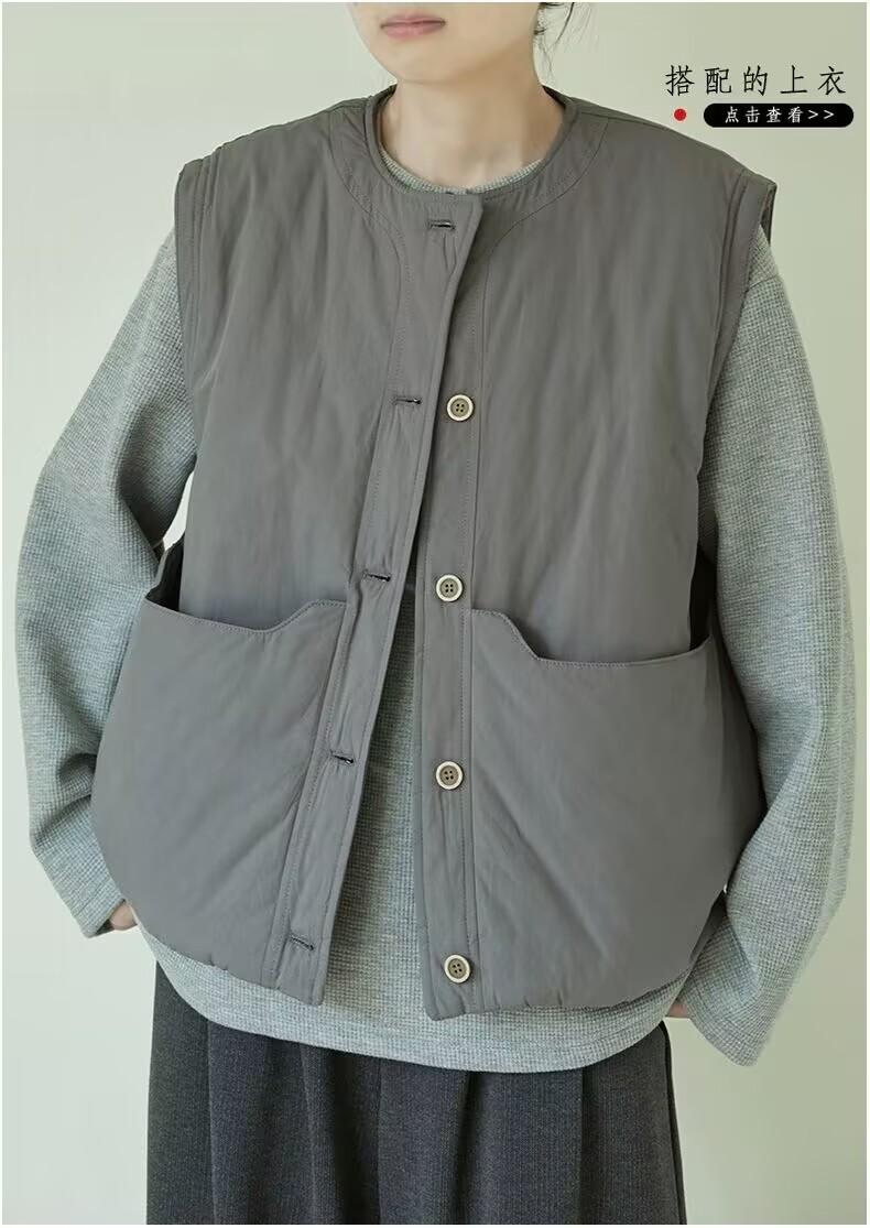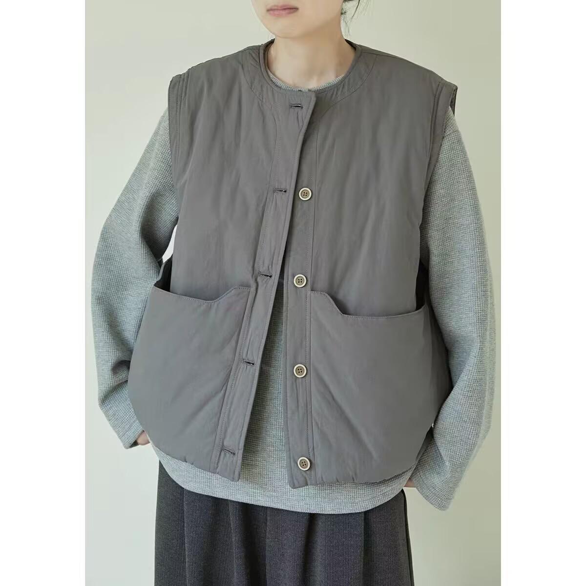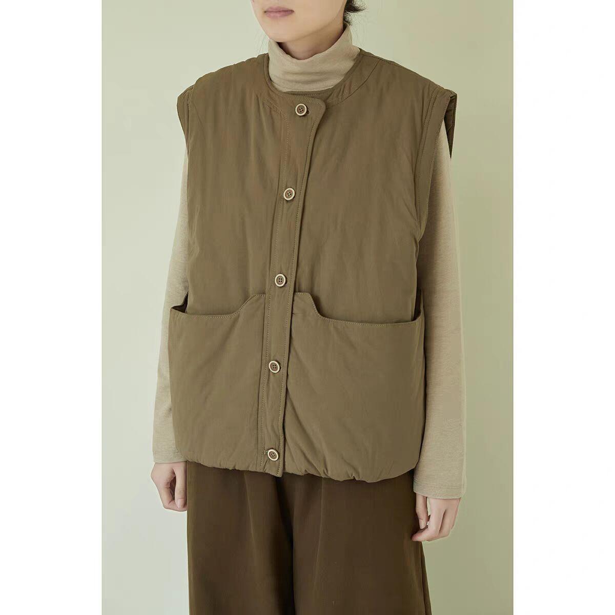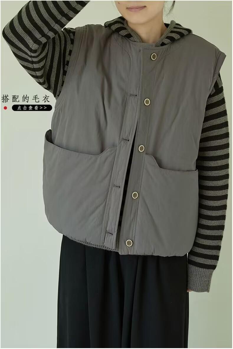 Nuevo Invierno Japonés Retro Acolchado Chaleco Acolchado de Algodón Suelto para Superponer Ropa de Abrigo Engrosado Cálido Chaleco Chaqueta de Algodón
