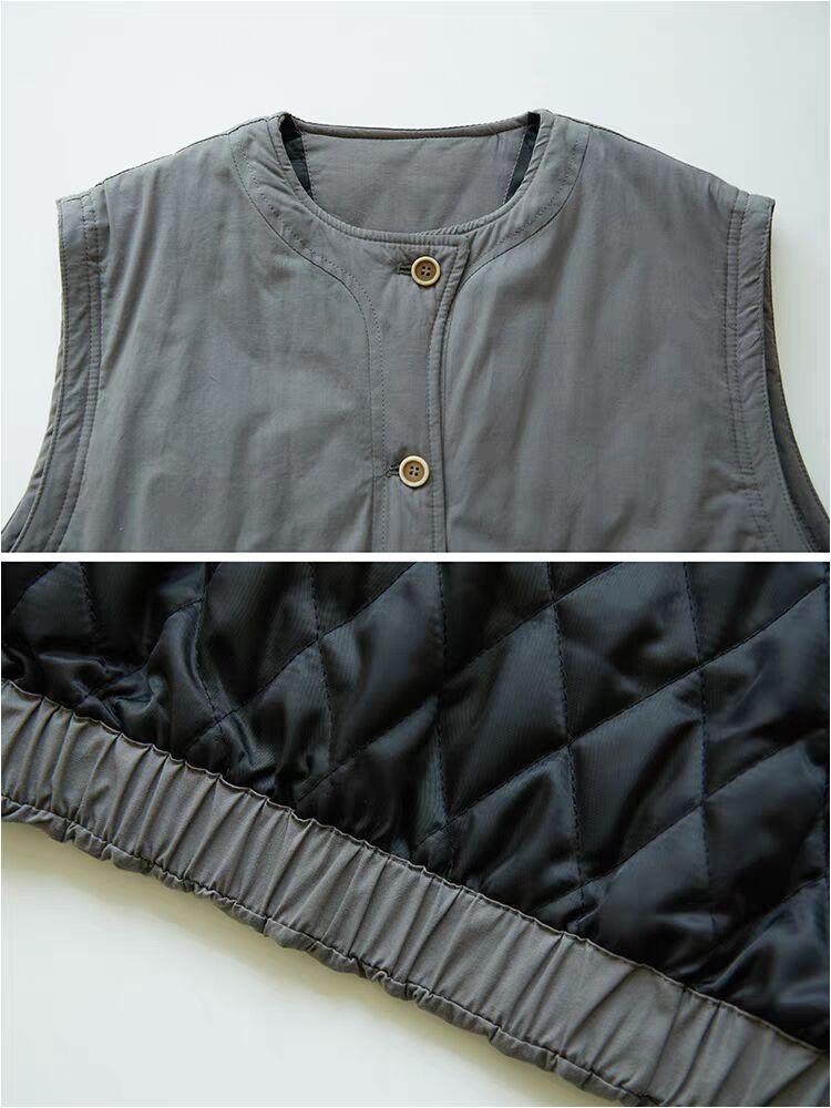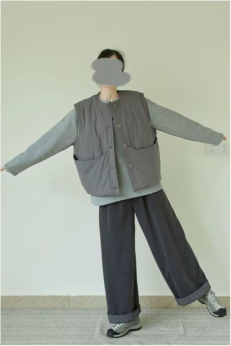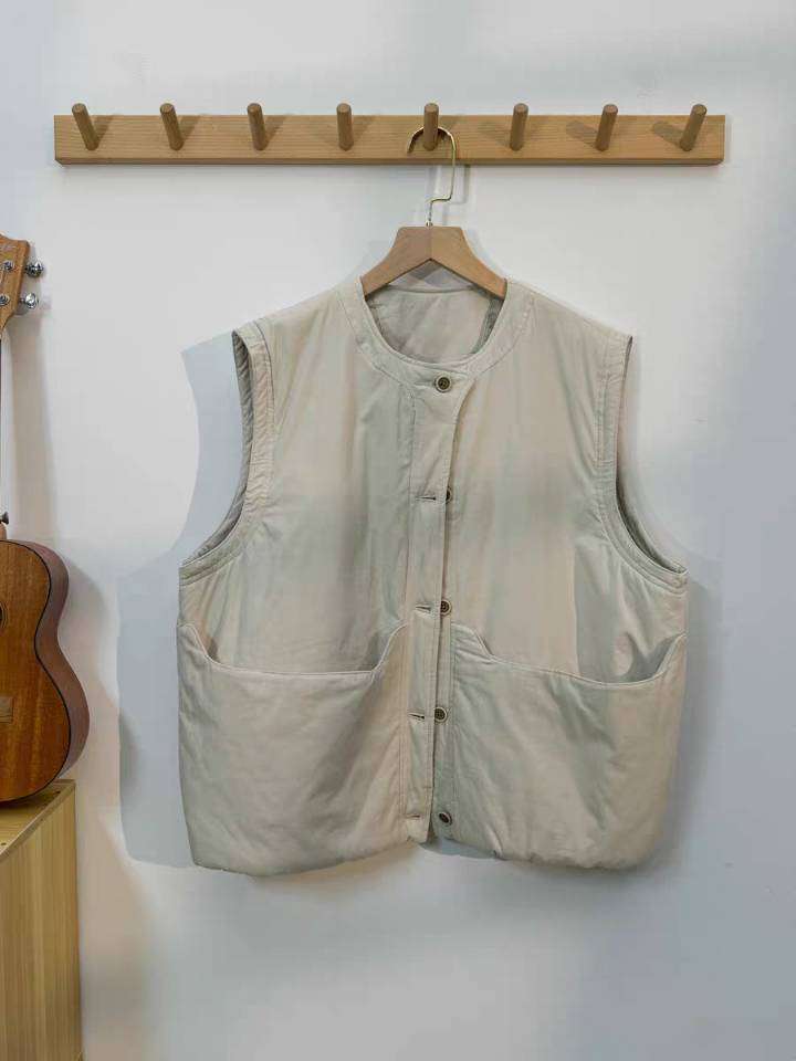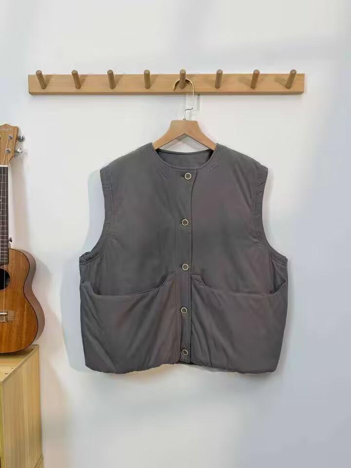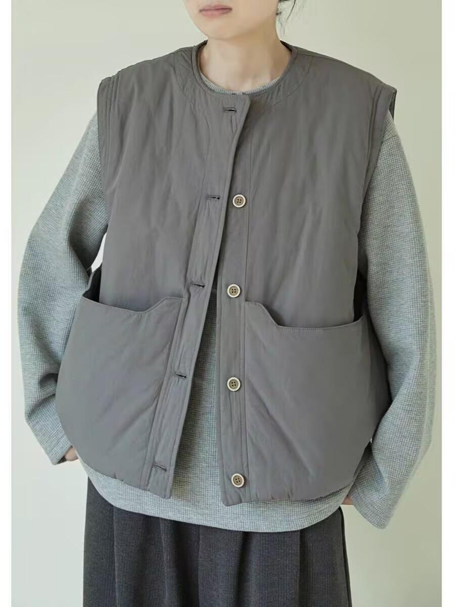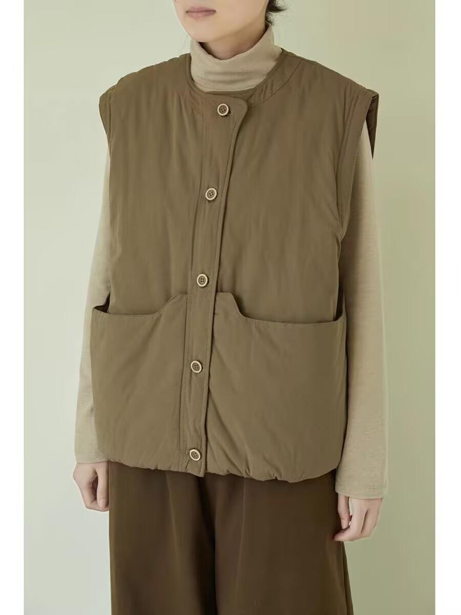 Nuevo Invierno Japonés Retro Acolchado Chaleco Acolchado de Algodón Suelto para Superponer Ropa de Abrigo Engrosado Cálido Chaleco Chaqueta de Algodón