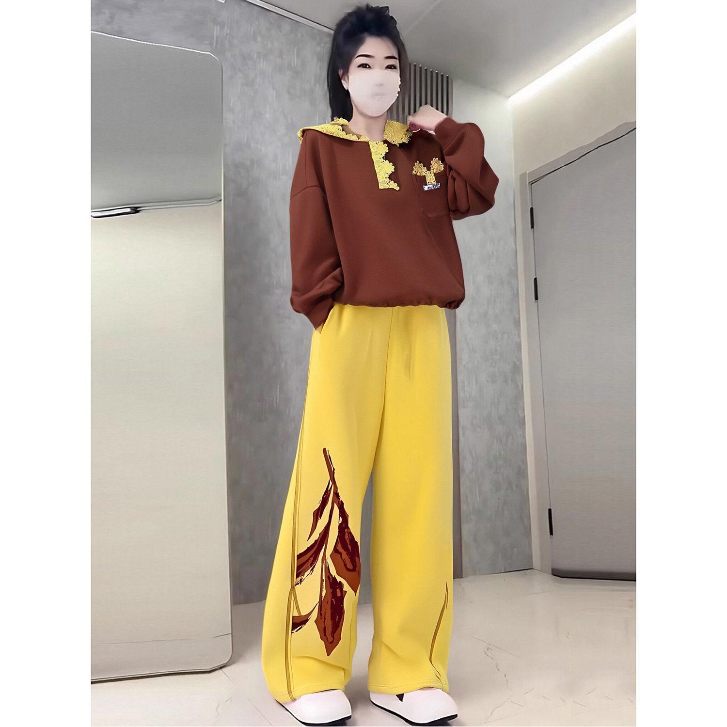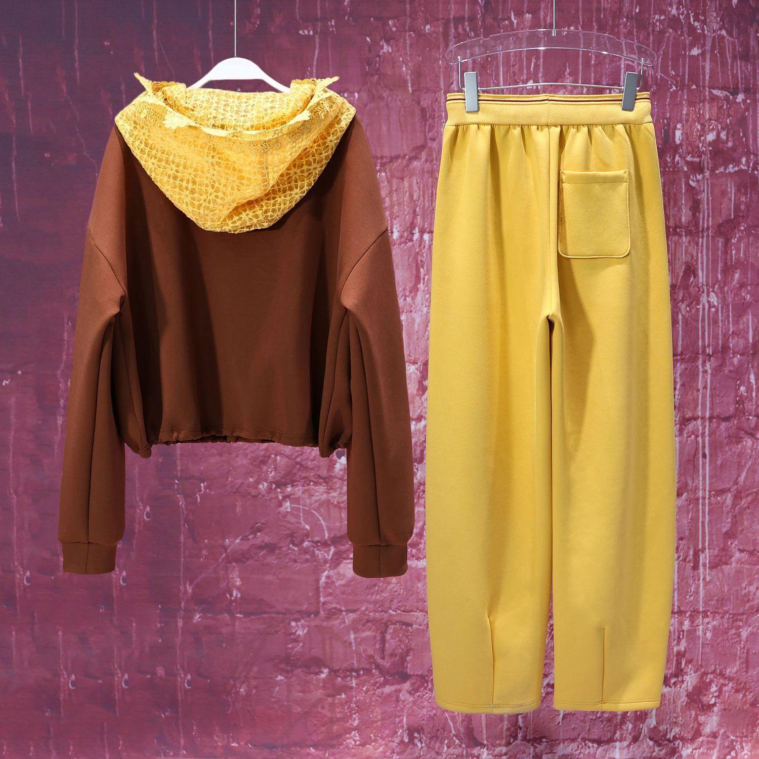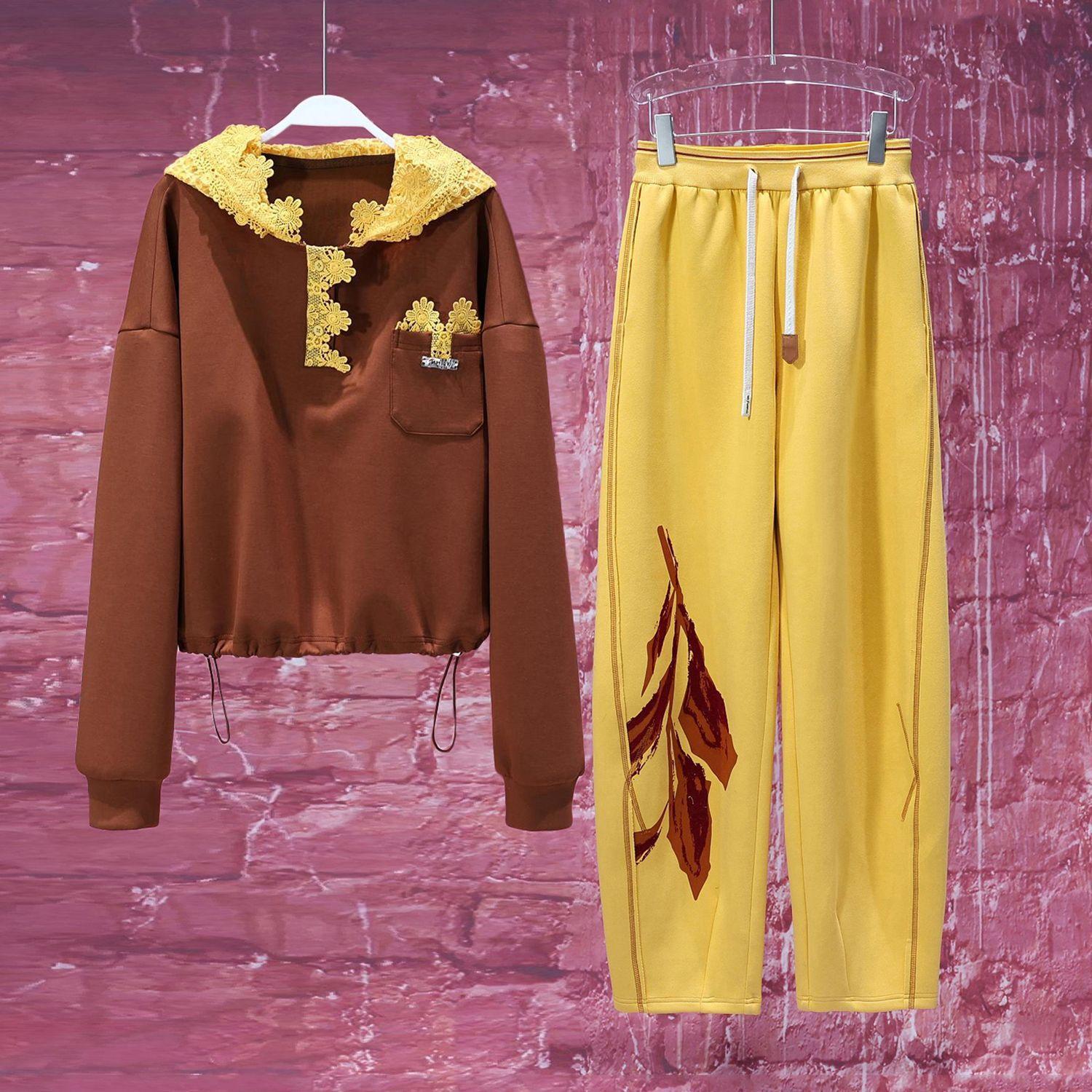 Chándal de Mujer Estilo Europeo 2025 Nuevo Primavera y Otoño Diseño Moderno y Elegante Sentido Encaje Sudadera con Capucha Conjunto de Dos Piezas Marea
