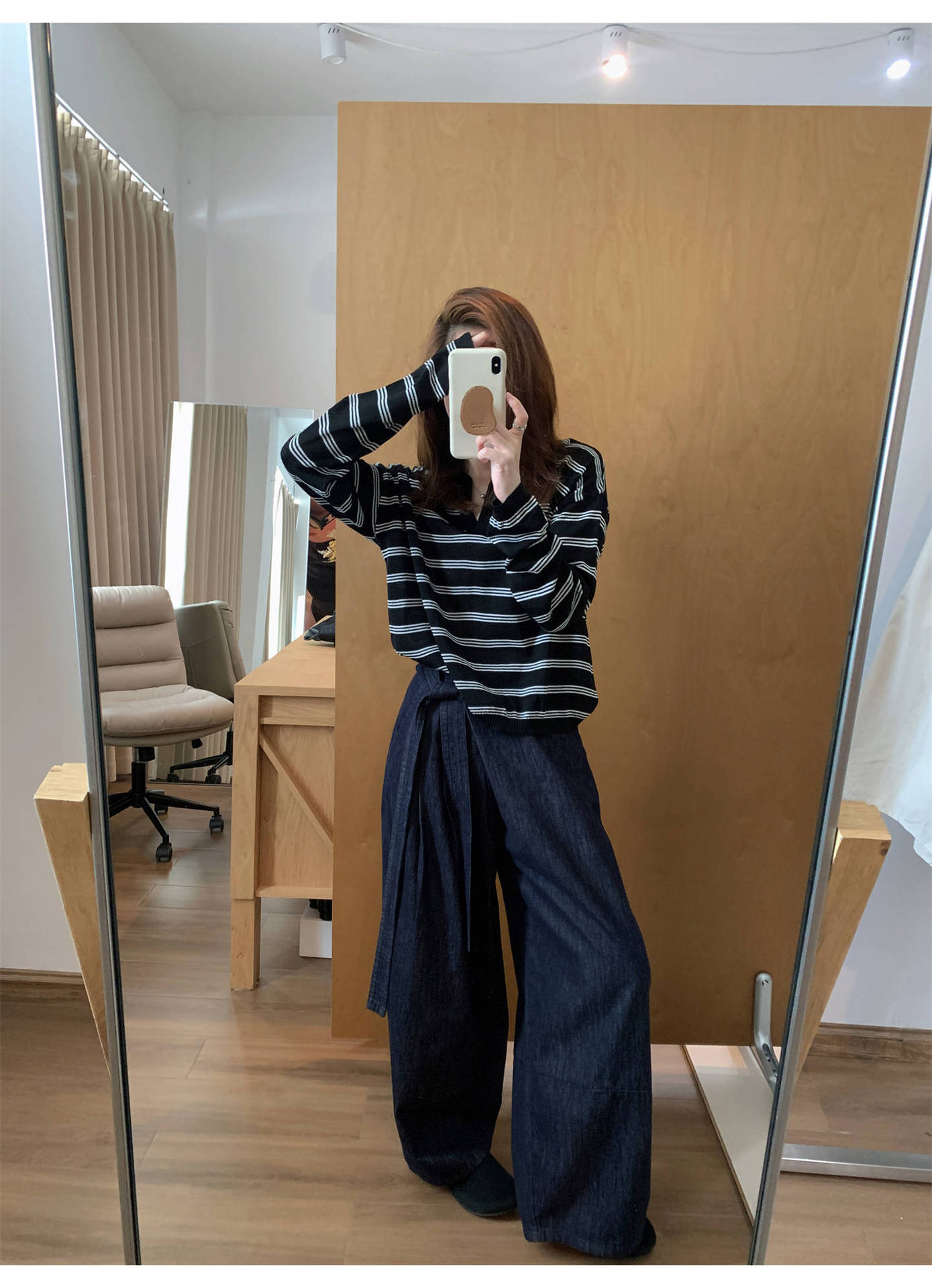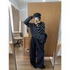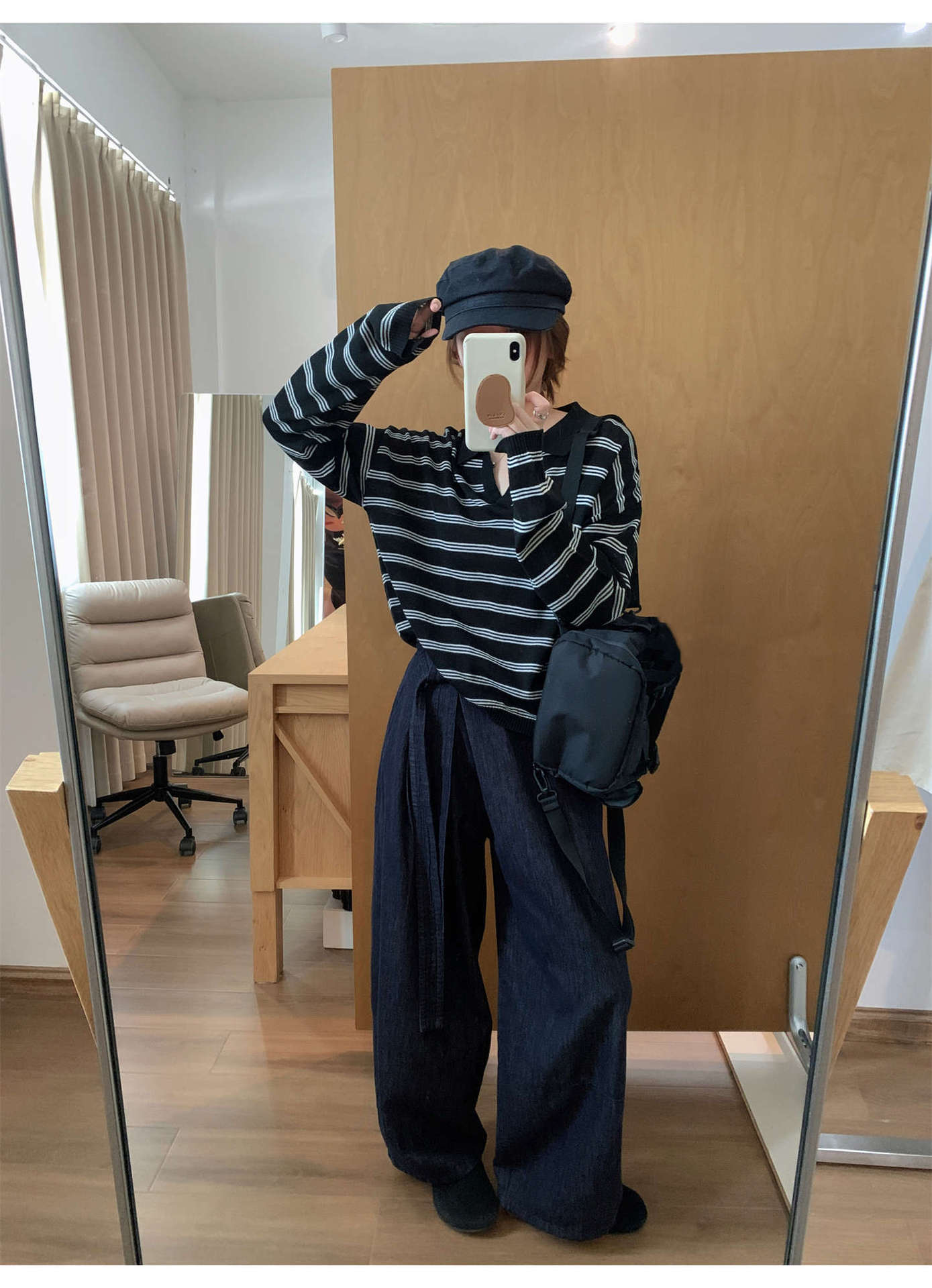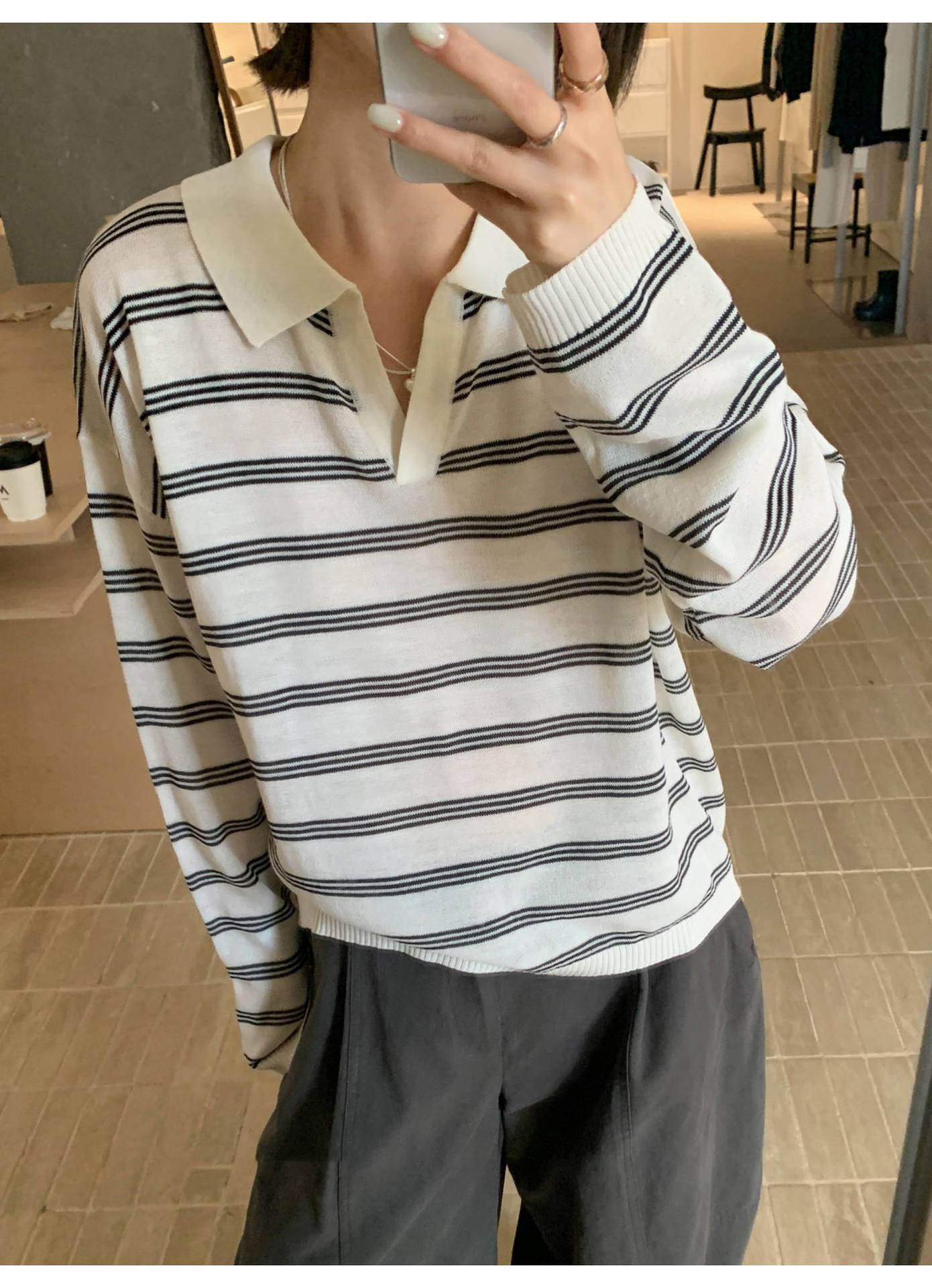 Suéter de Punto Holgado a Rayas con Cuello Polo de Estilo Retro Lazy para Mujer Primavera y Otoño 2025 Nuevo Top Casual de Manga Larga