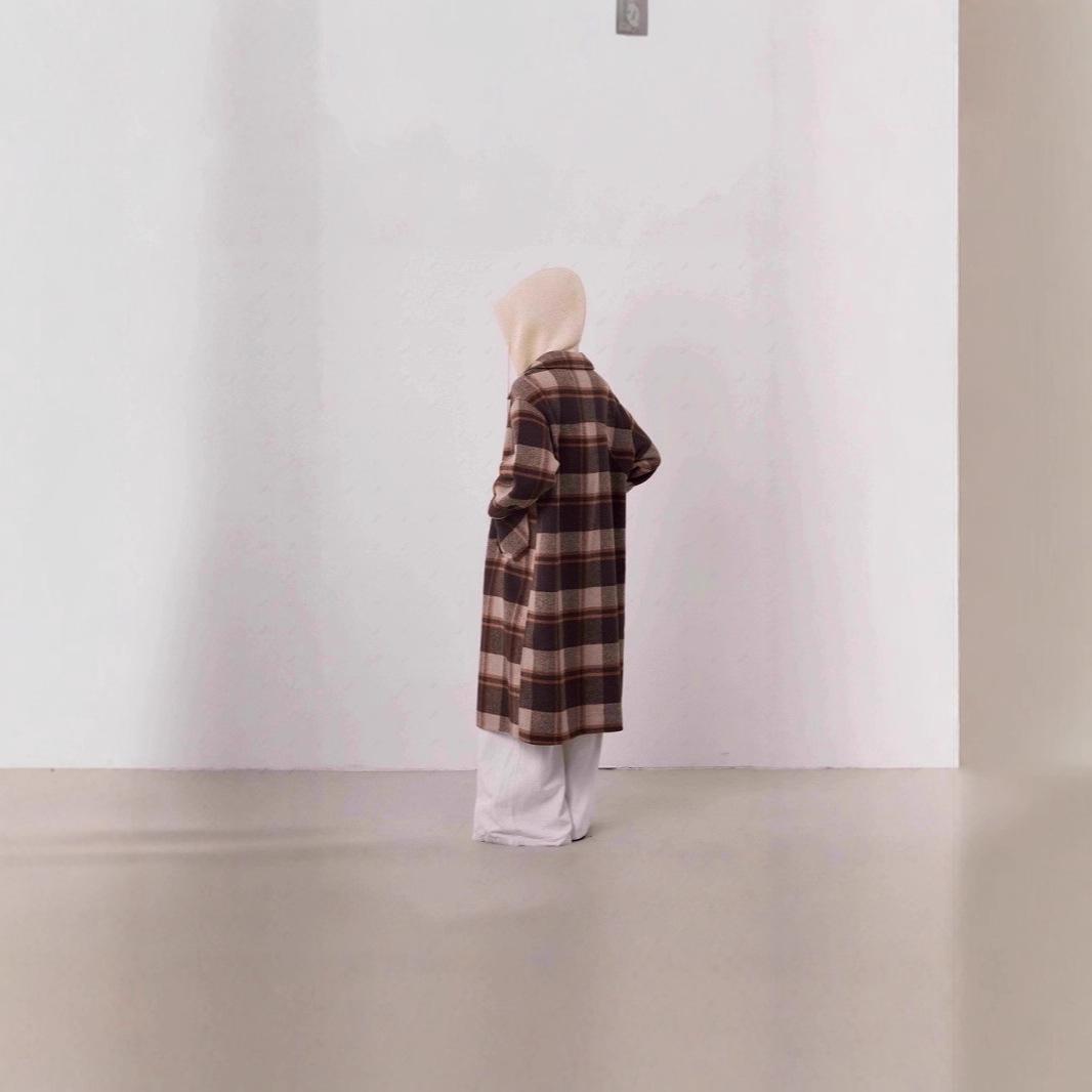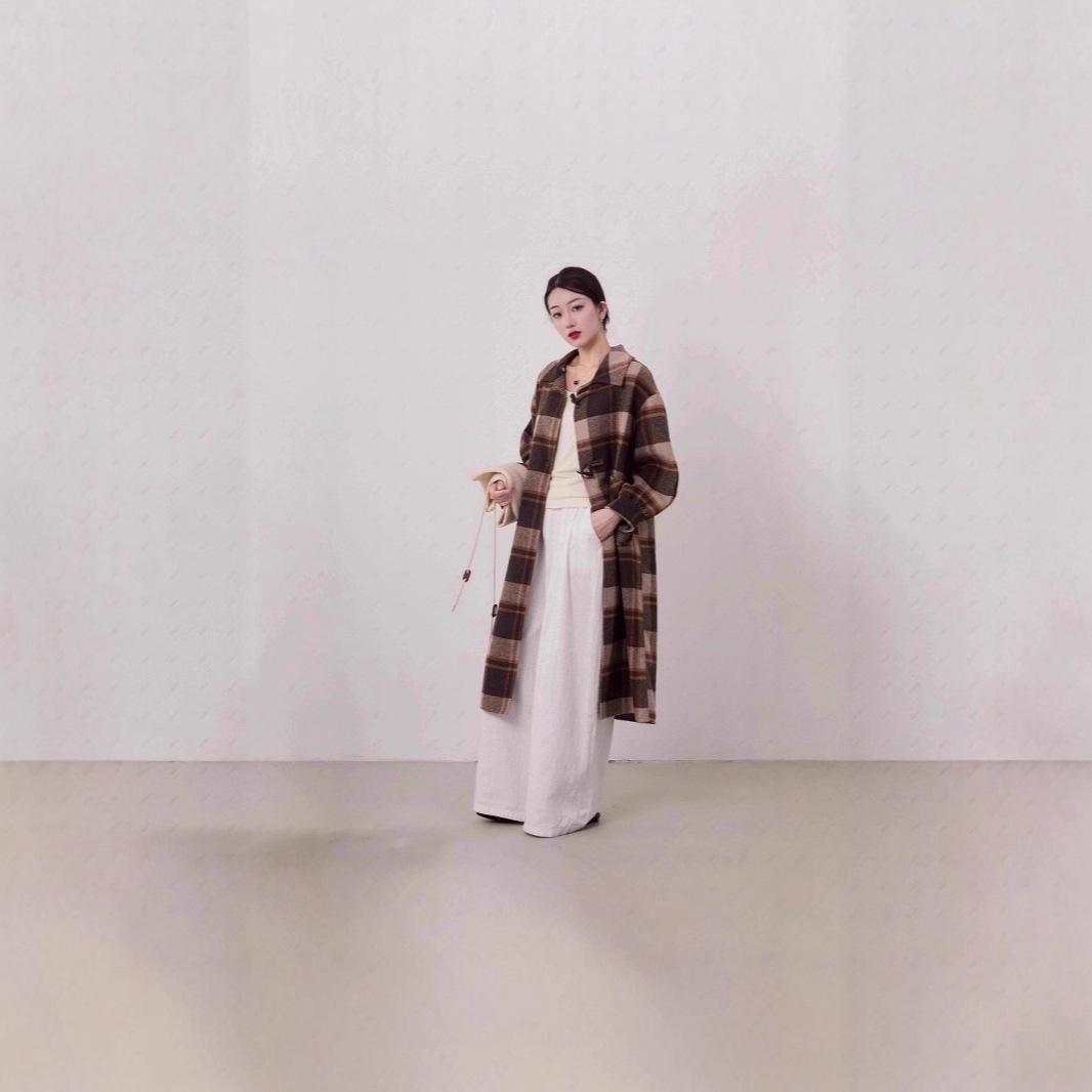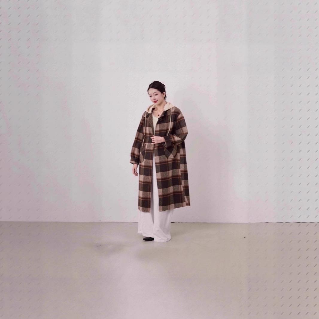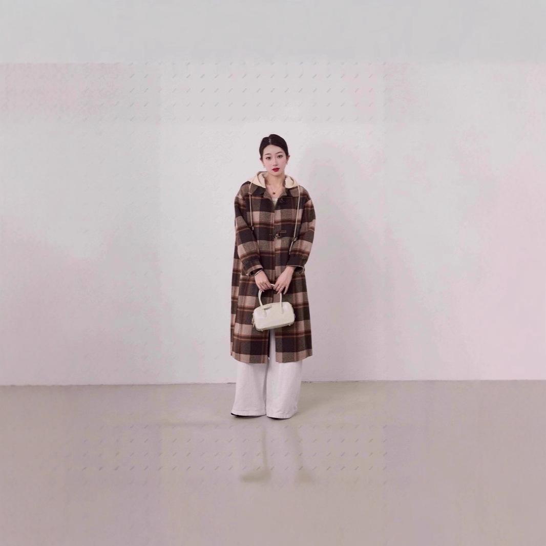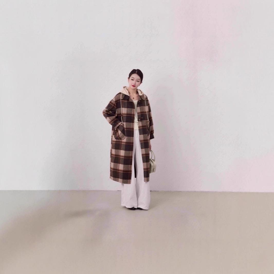 Abrigo de Moda Nuevo a Cuadros Popular 2025 para Mujer Abrigo de Cachemira de Doble Cara Corte Entallado y Alto con Capucha Estilo Esencial de Diosa