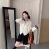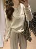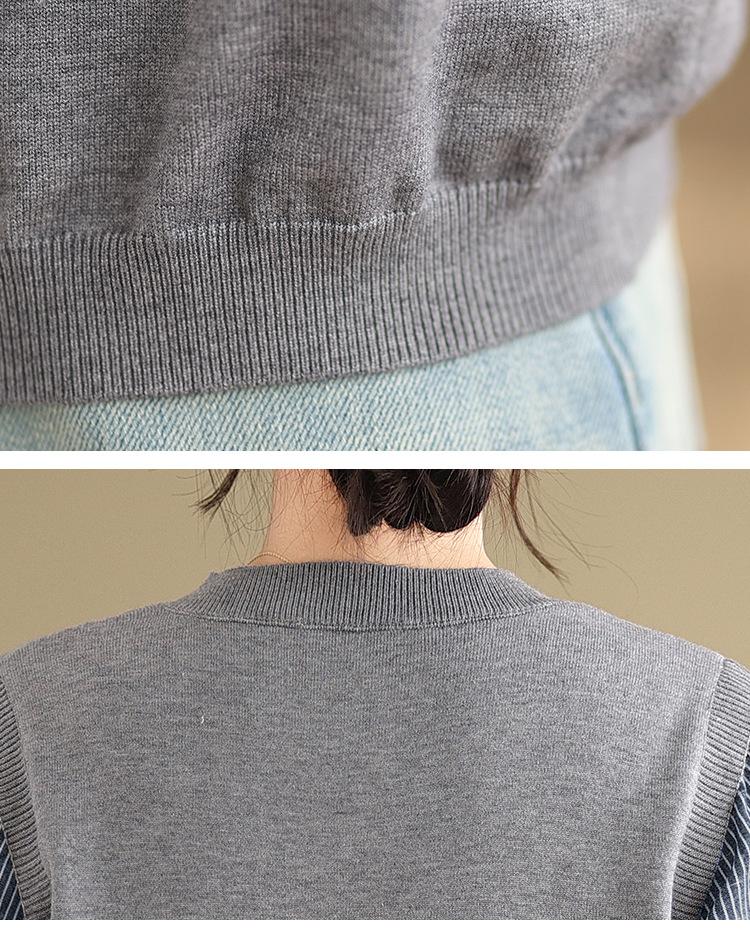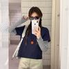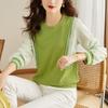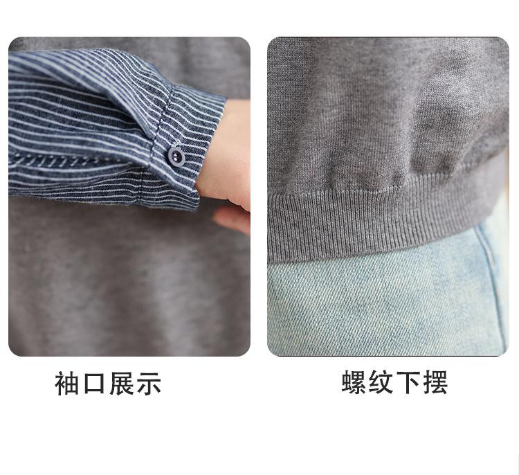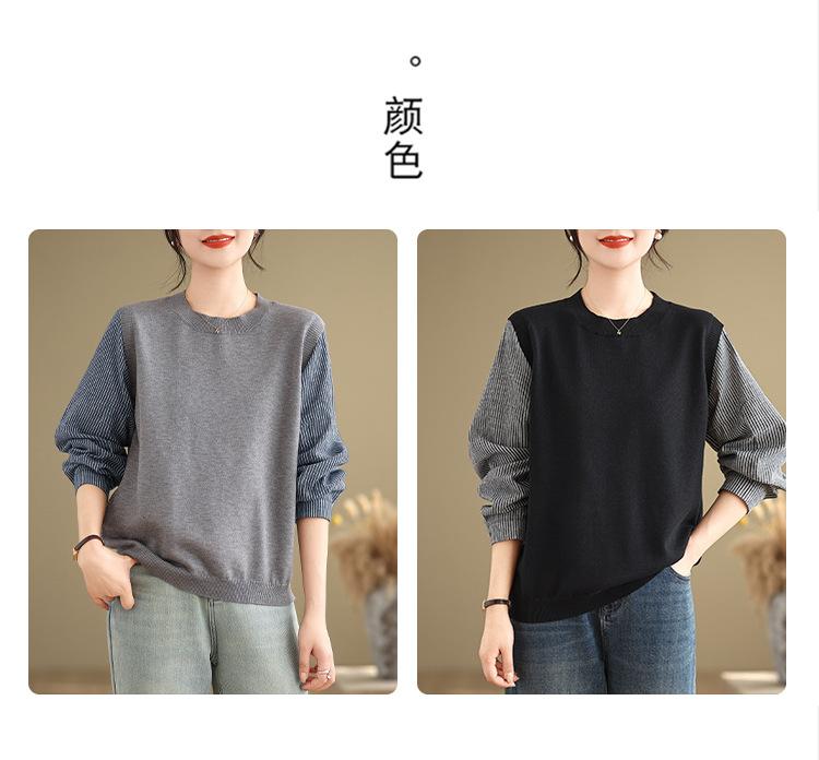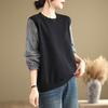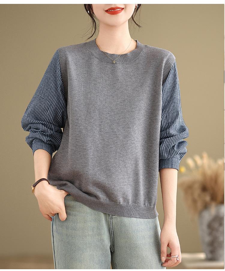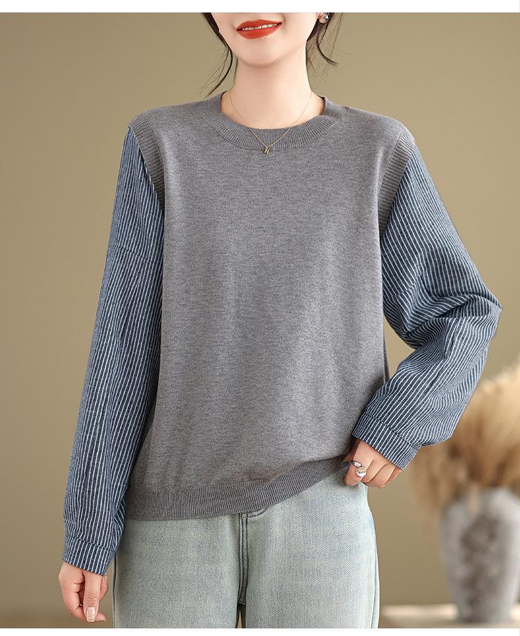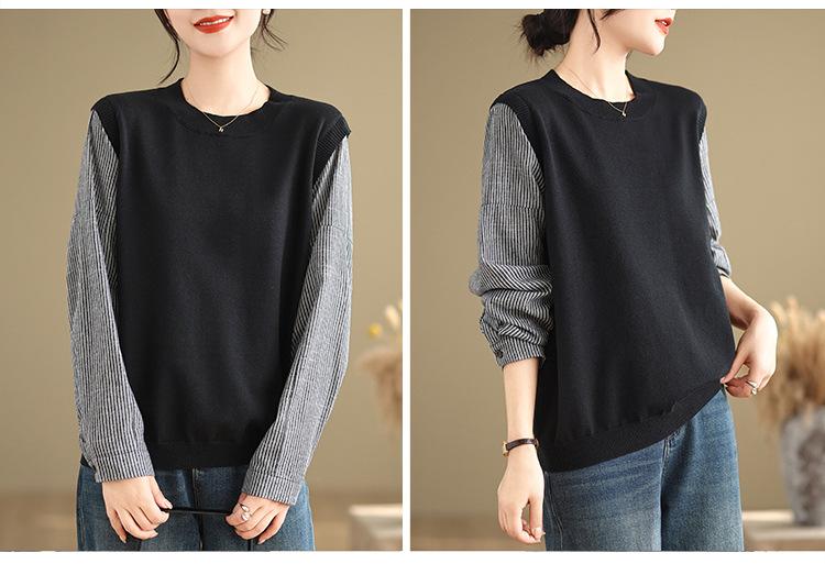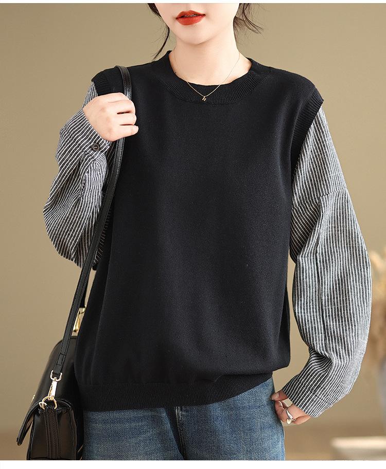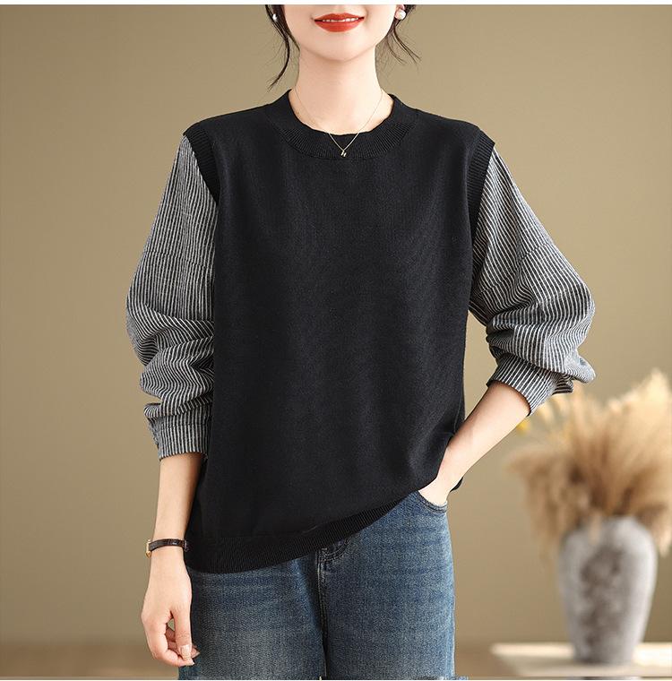 Toma real en stock otoño nuevo suéter de patchwork a rayas estilo holgazán camiseta top mujeres sentido del diseño top de dos piezas falsas