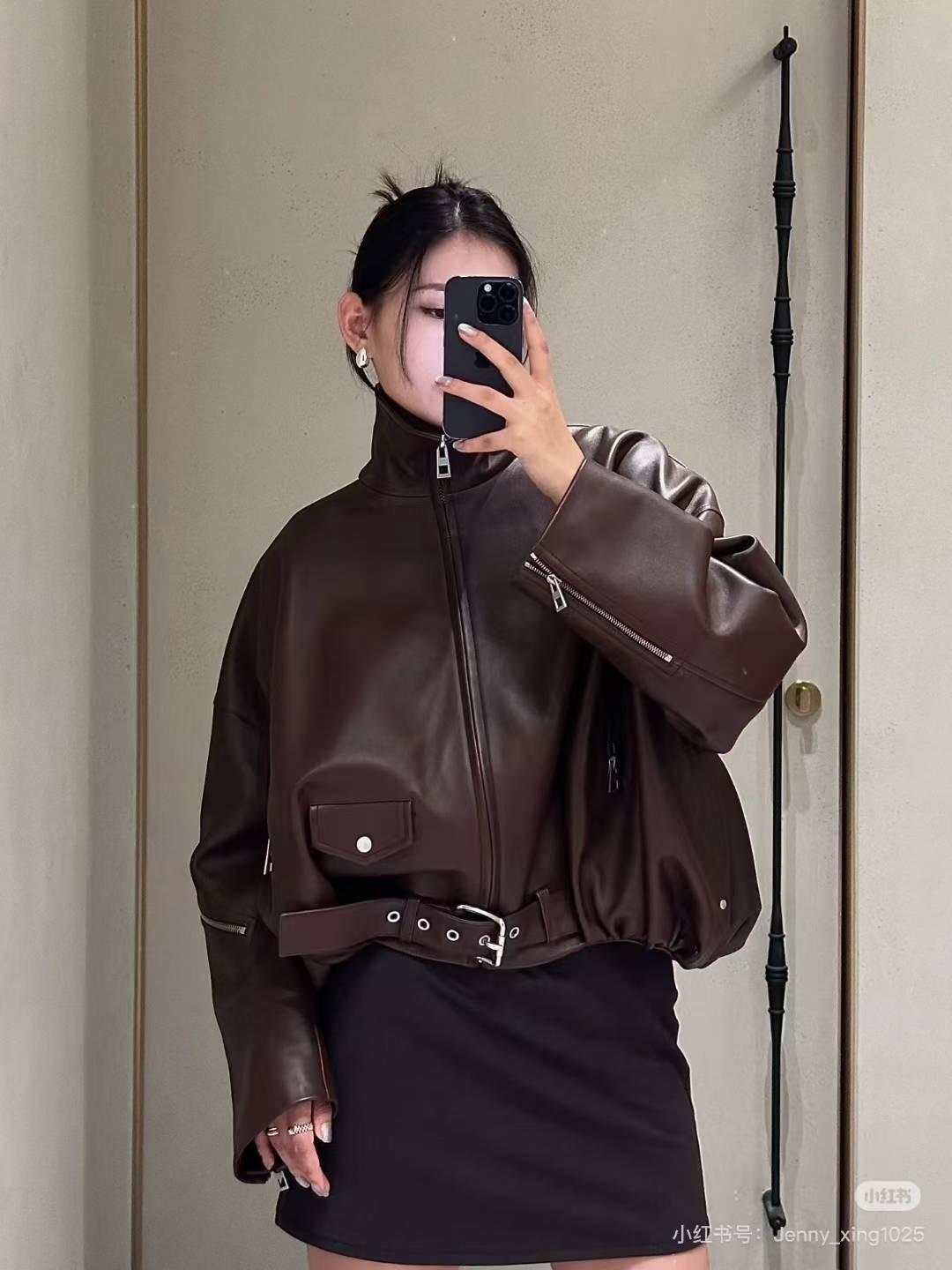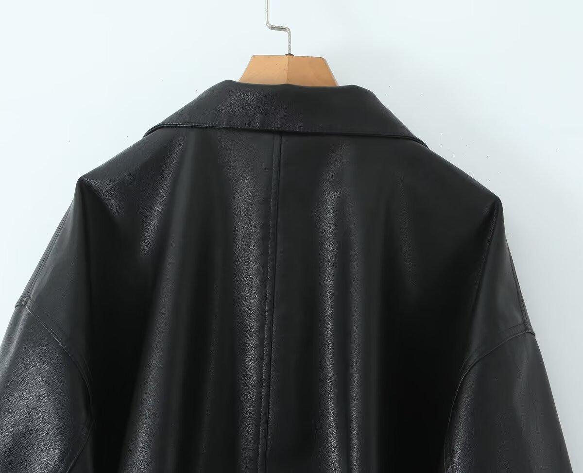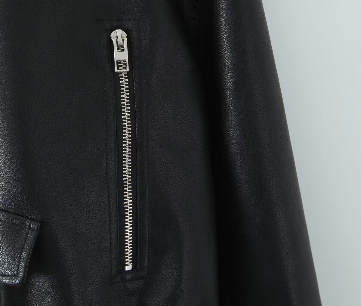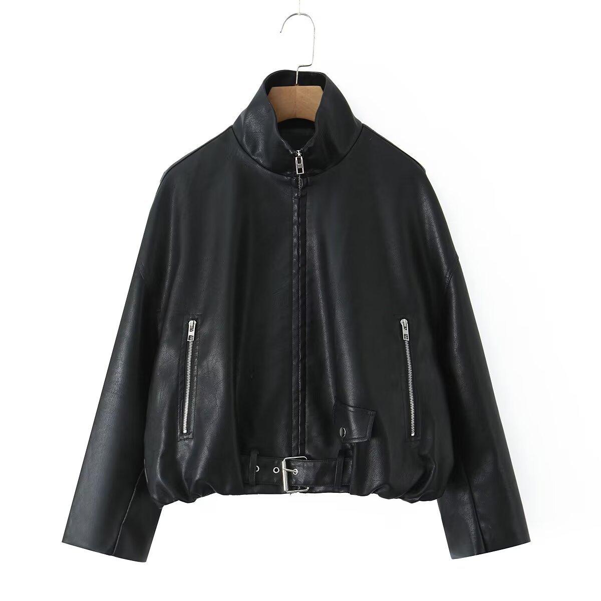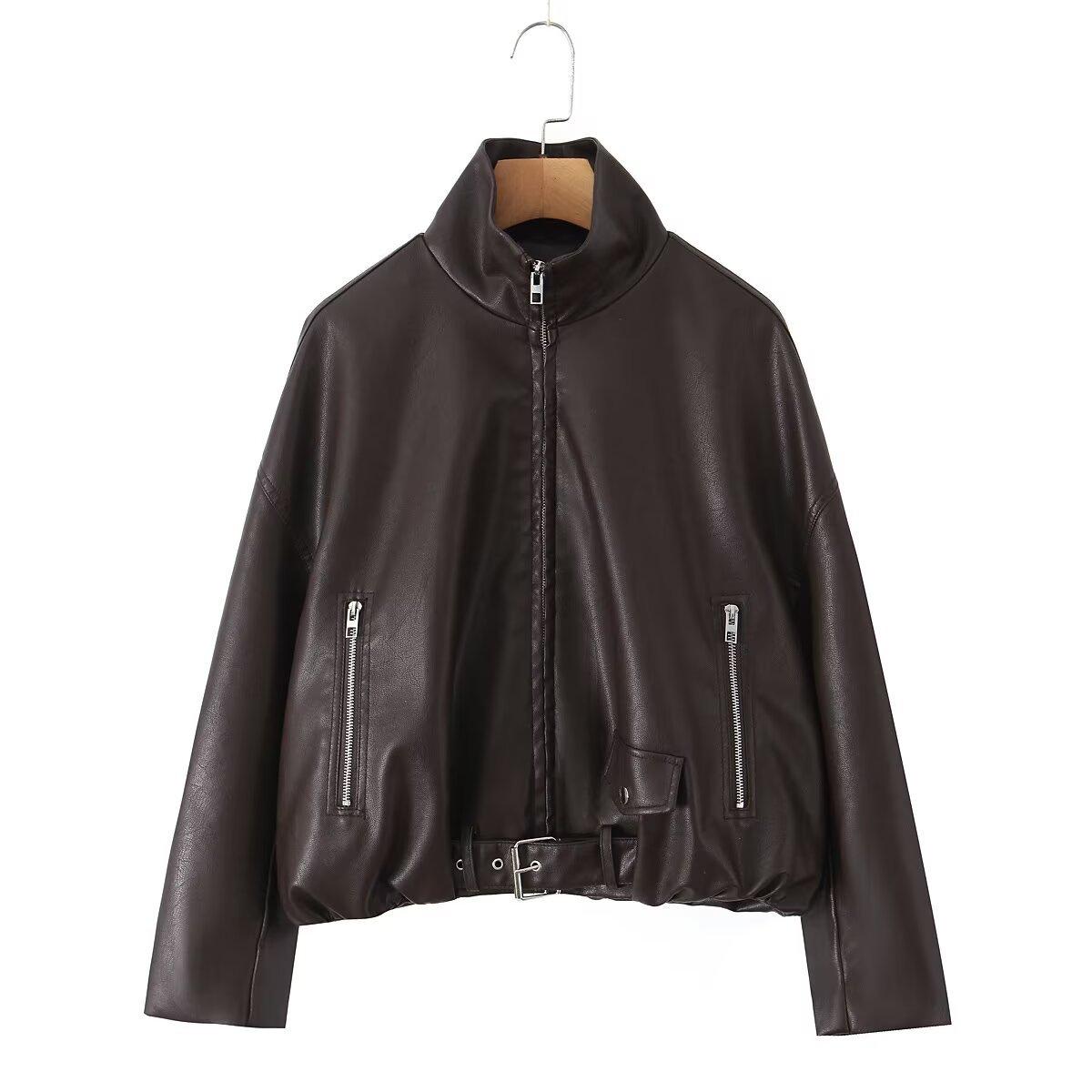 Ropa de Mujer Transfronteriza AliExpress 2025 Principios de Otoño Nuevo Chaqueta Clásica de Cuero PU con Decoración de Cinturón de Moda Urbana