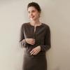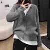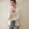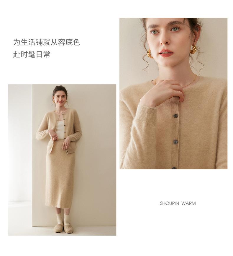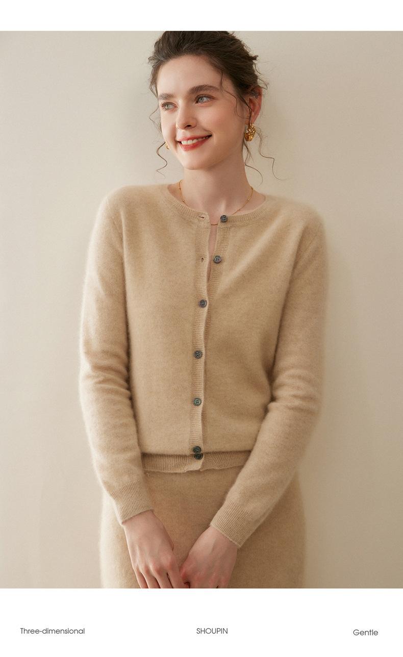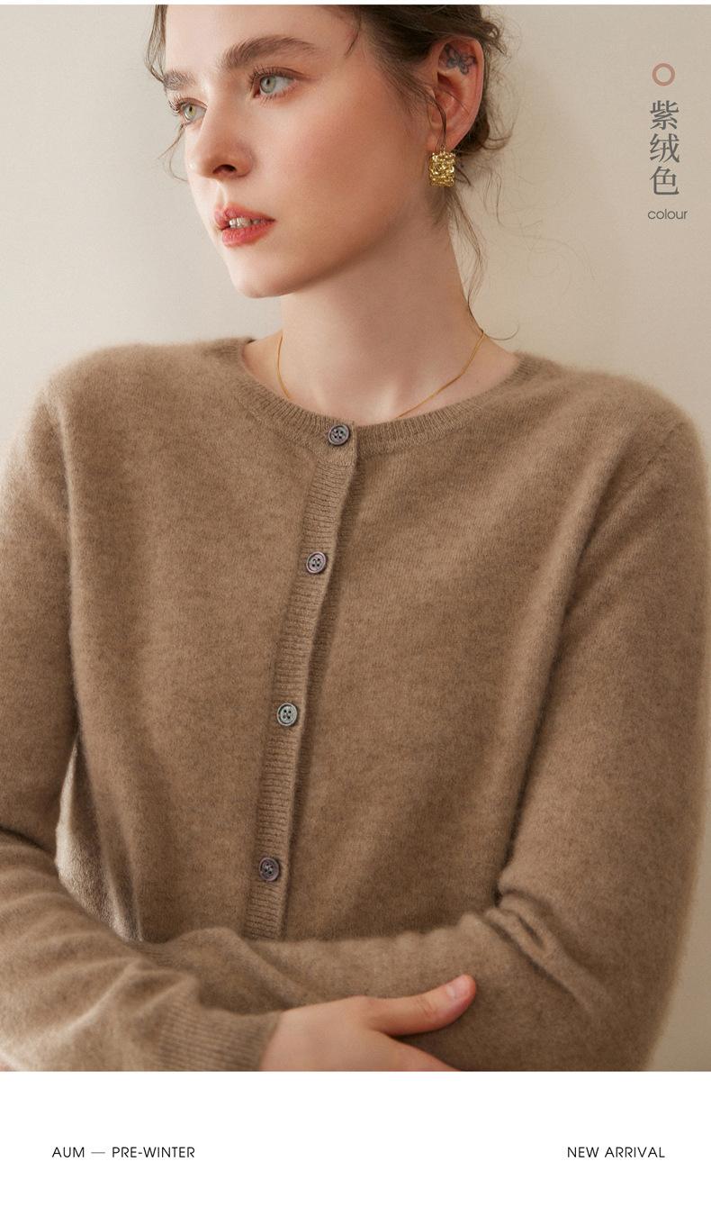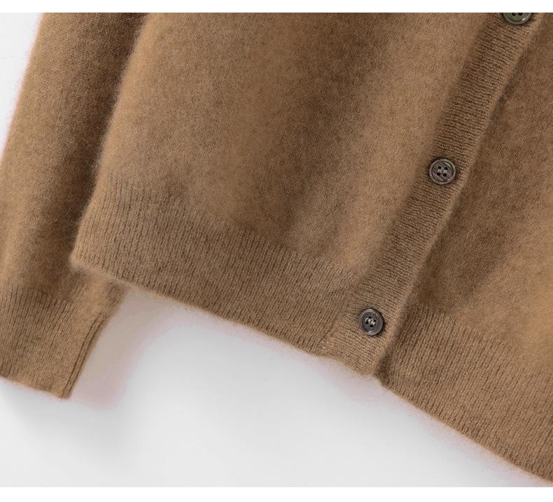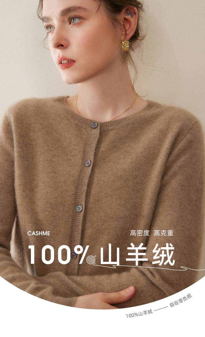 Cárdigan de Cachemira 100% para Mujer con Cuello Redondo, Prendas de Punto de un Solo Botón, Ropa Exterior Holgada, Suéter de Estilo Otoño/Invierno de Cachemira