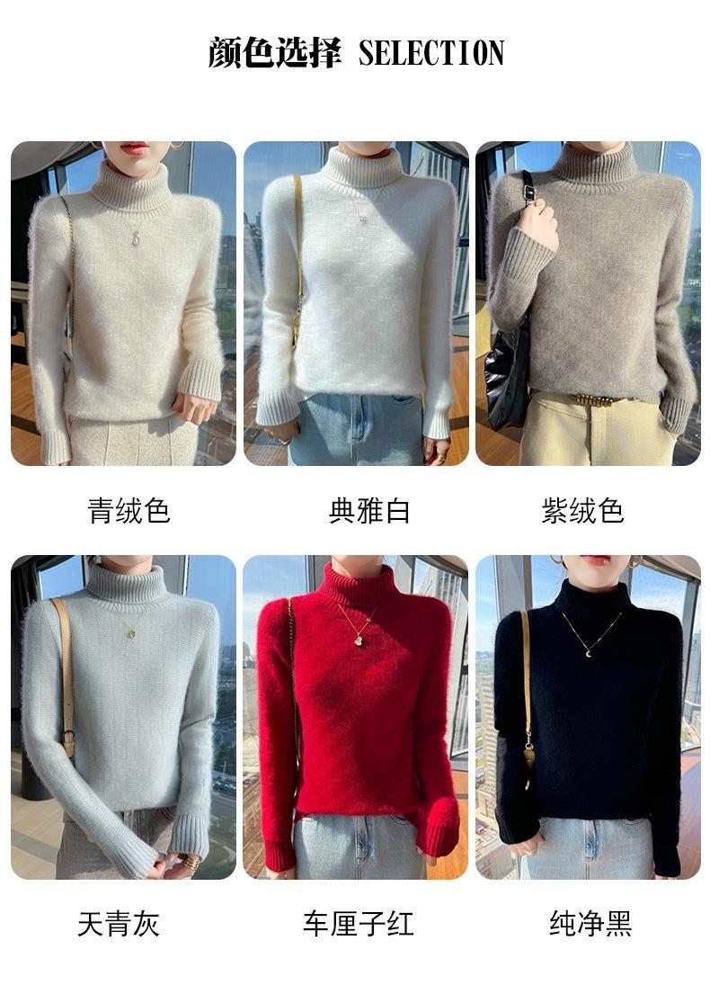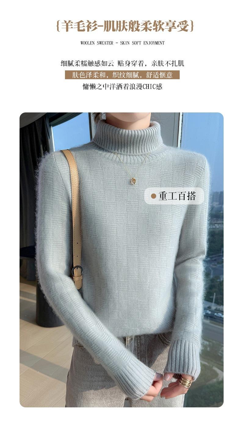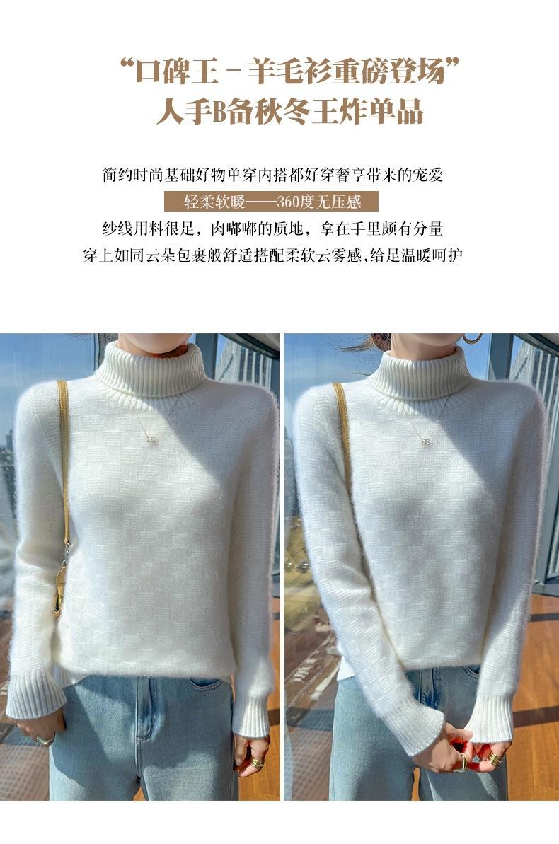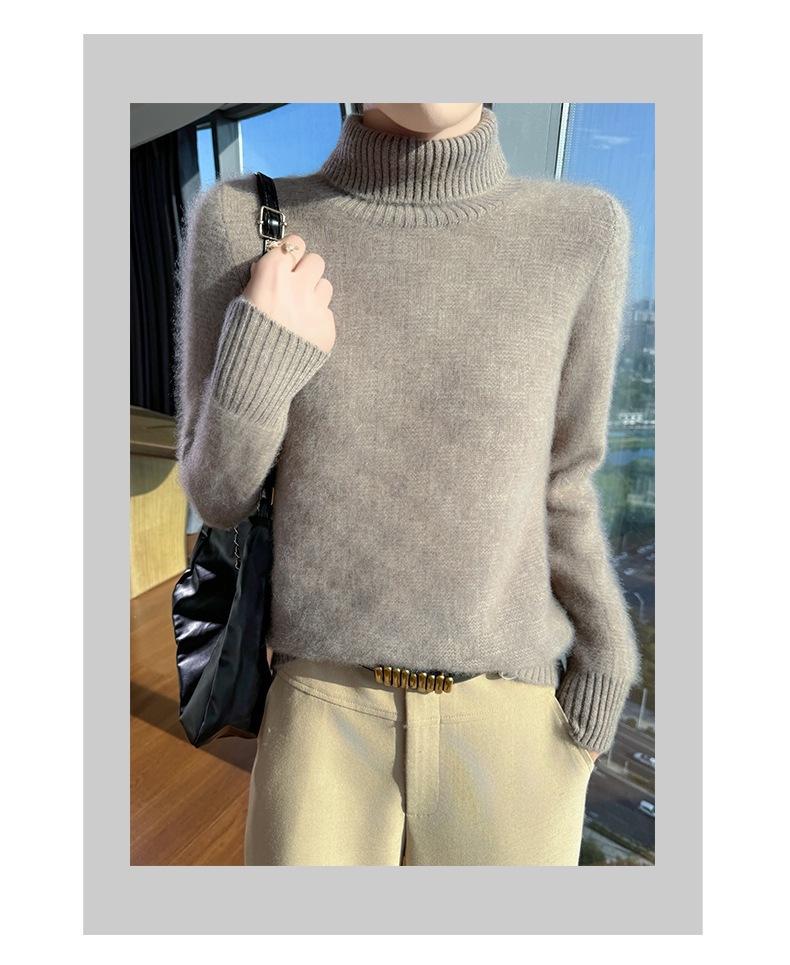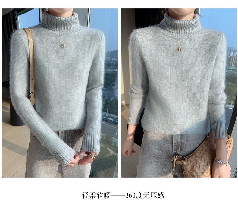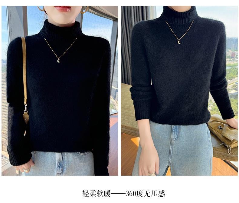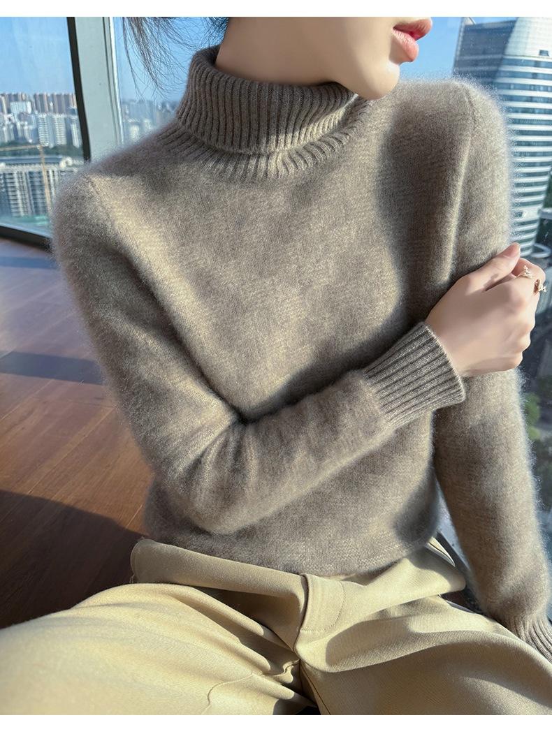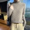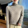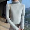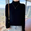 Suéter de punto de cuello alto 100% lana pura para mujer, nuevo otoño e invierno, jersey holgado casual de manga larga de cachemira base
