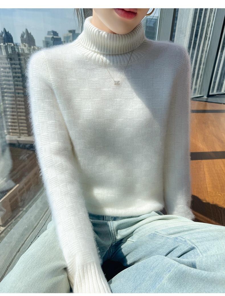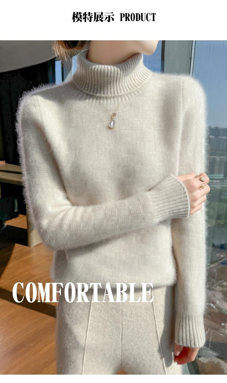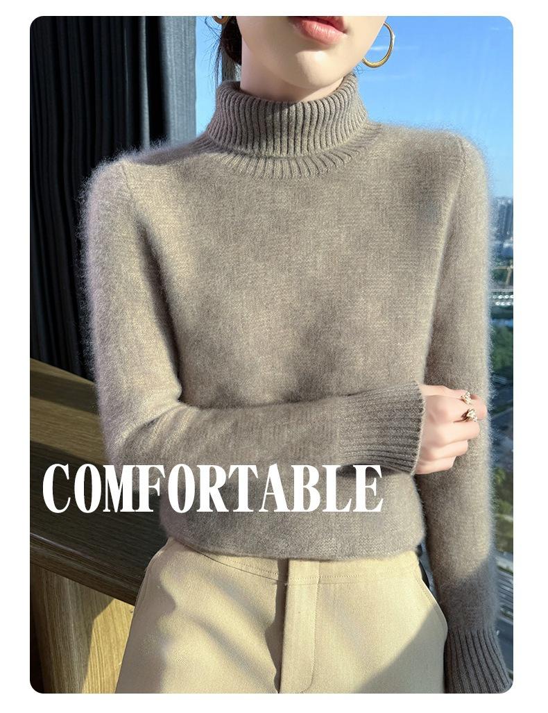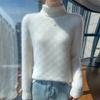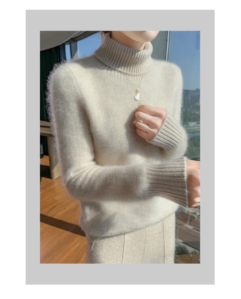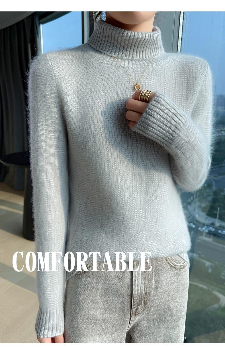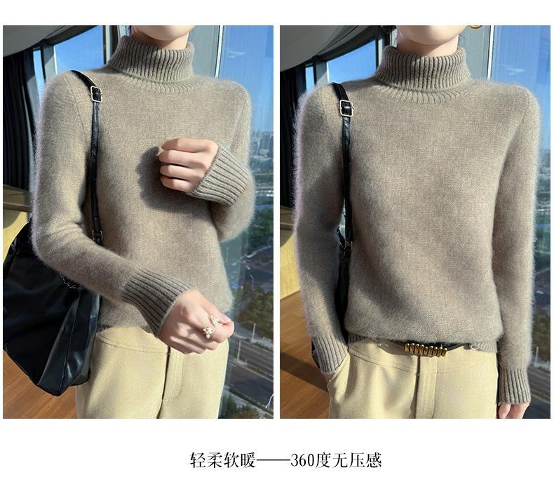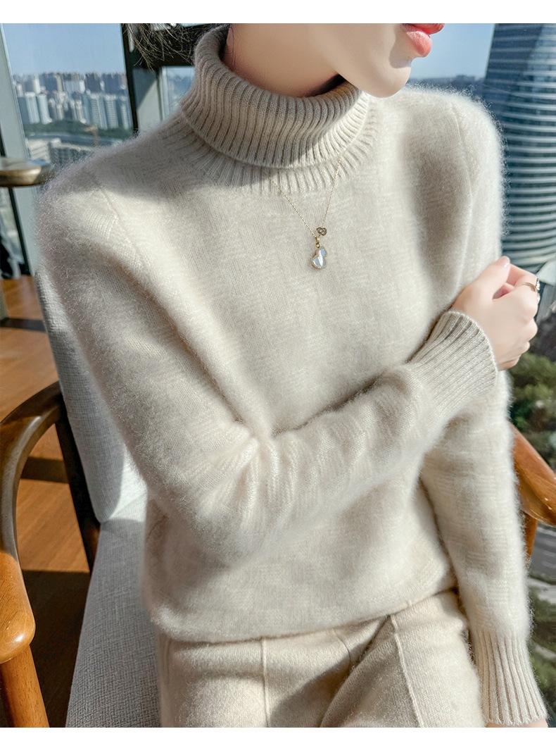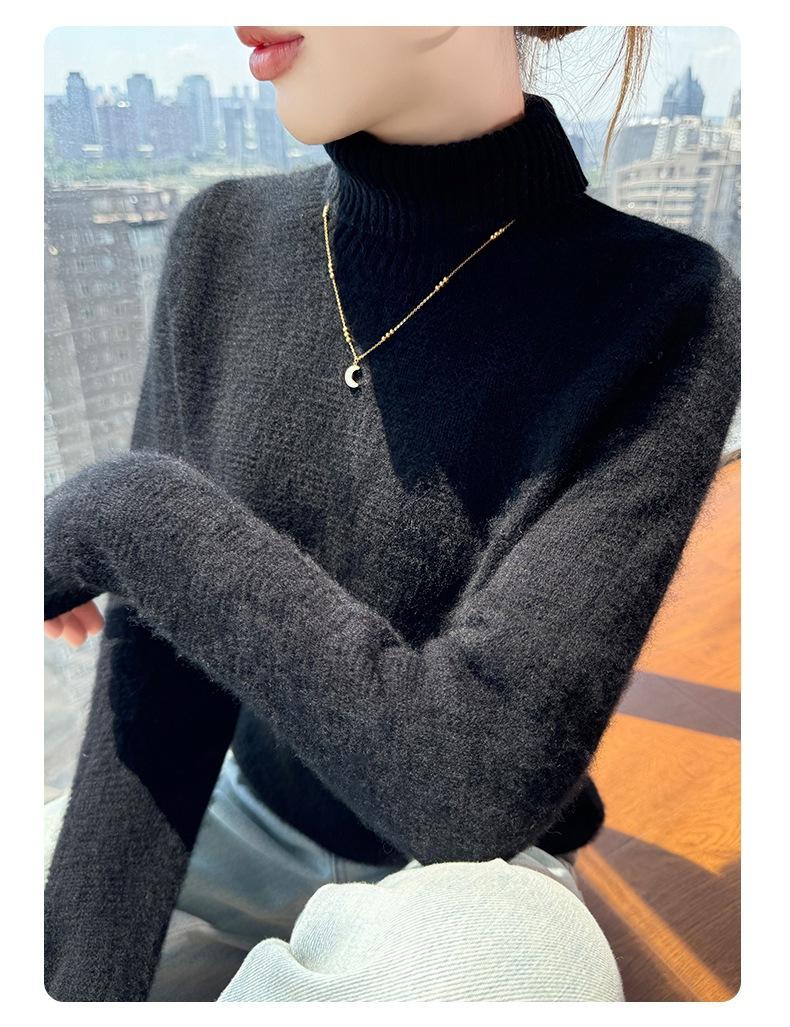 Suéter de punto de cuello alto 100% lana pura para mujer, nuevo otoño e invierno, jersey holgado casual de manga larga de cachemira base