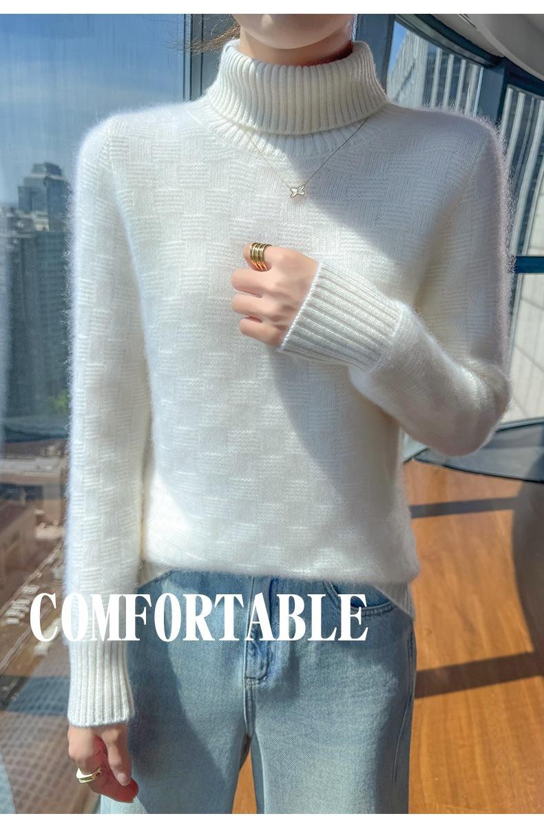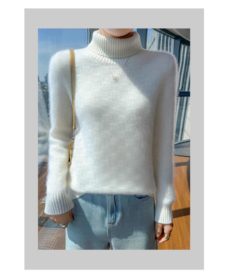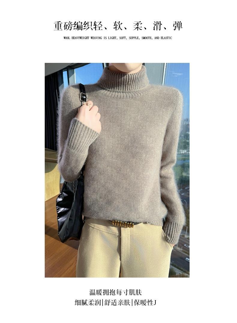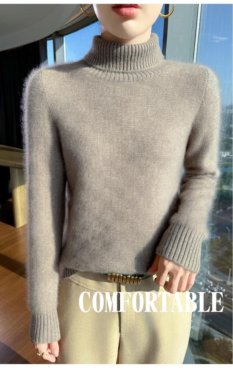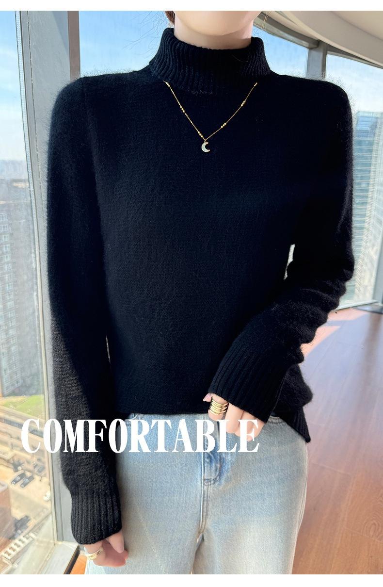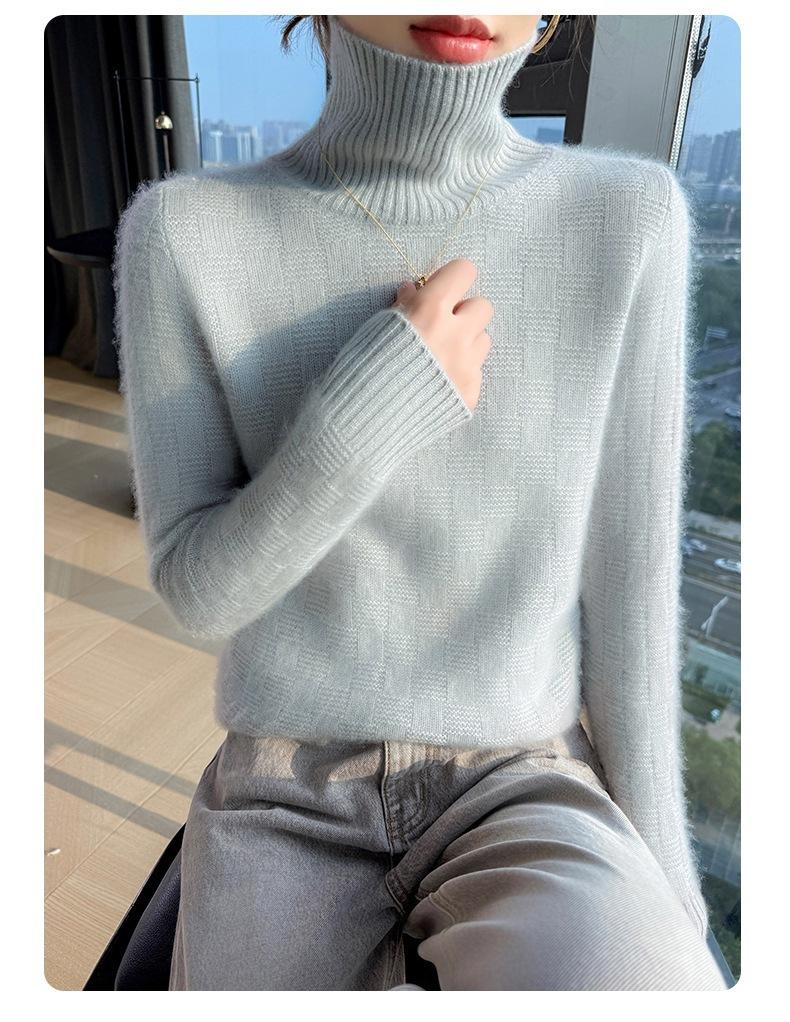 Suéter de punto de cuello alto 100% lana pura para mujer, nuevo otoño e invierno, jersey holgado casual de manga larga de cachemira base
