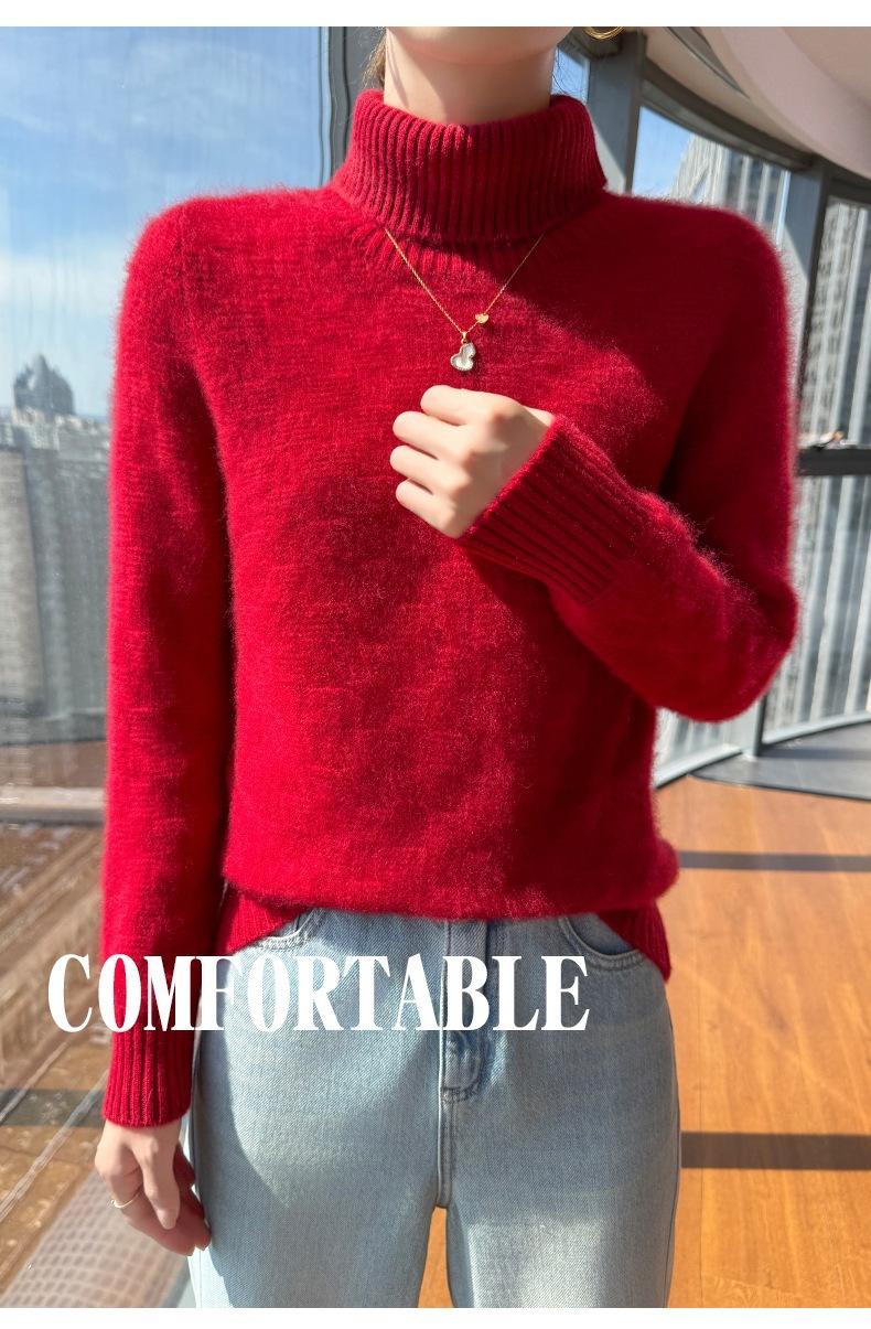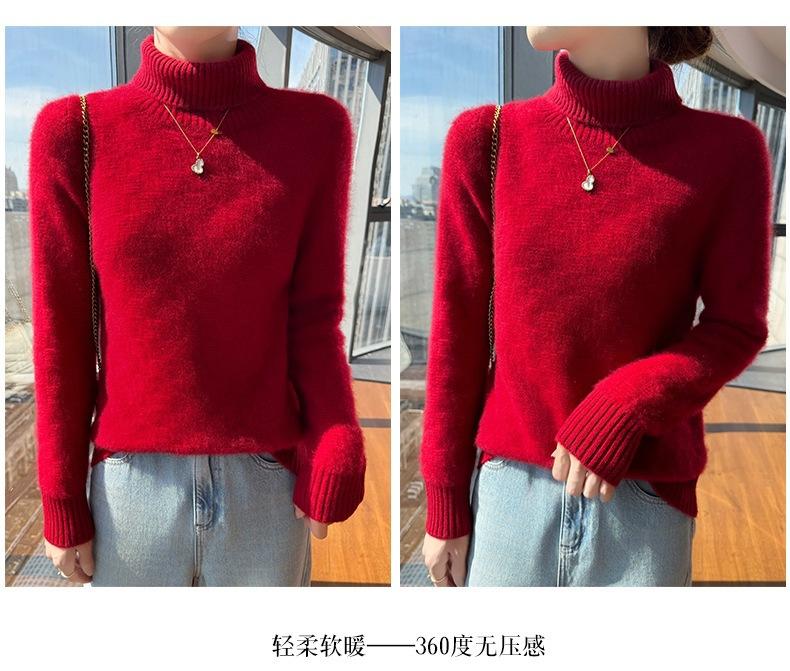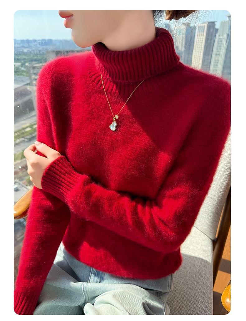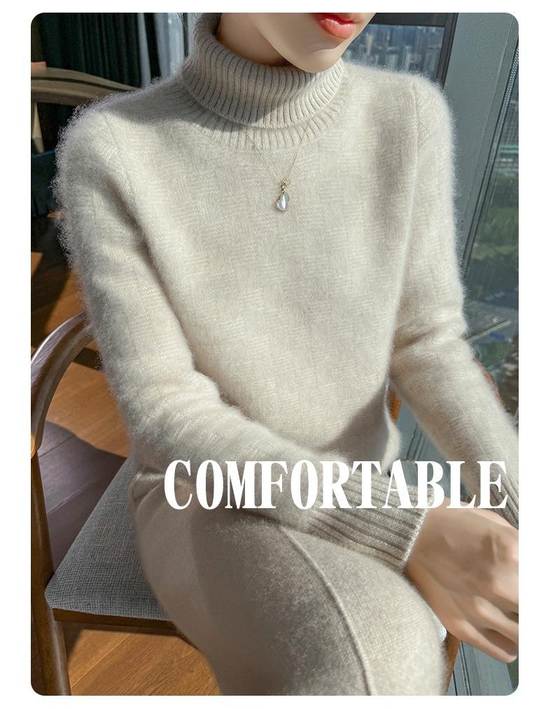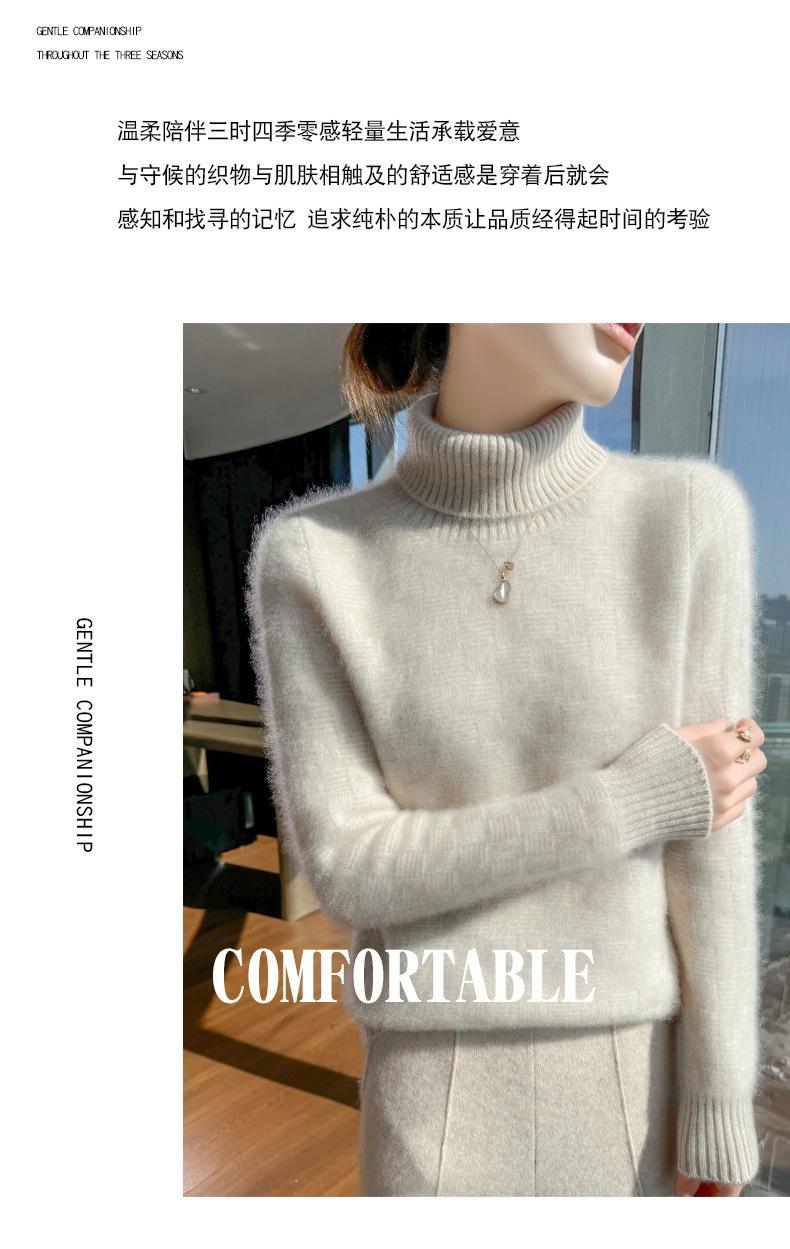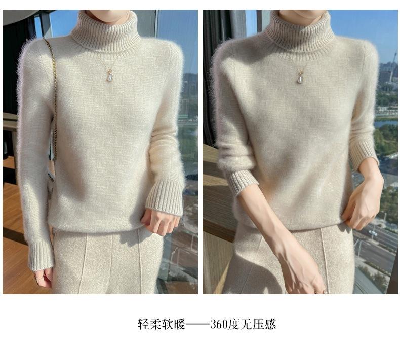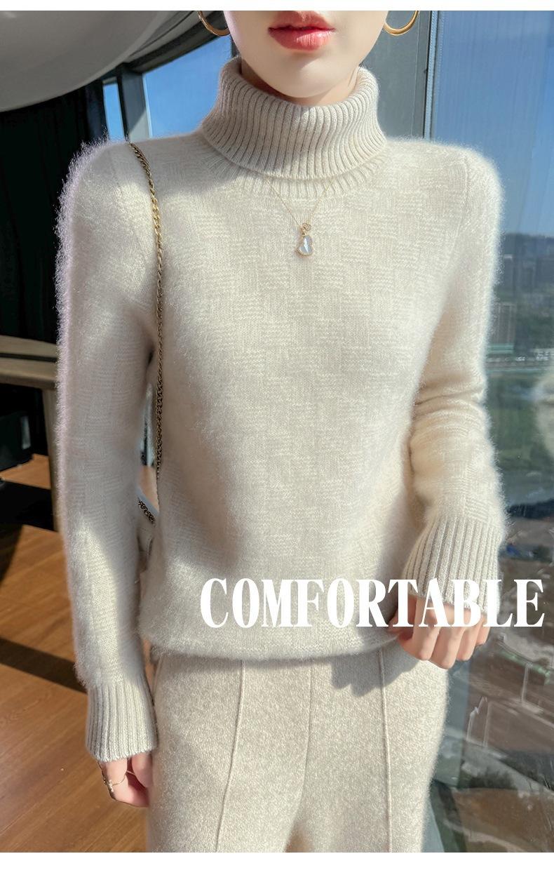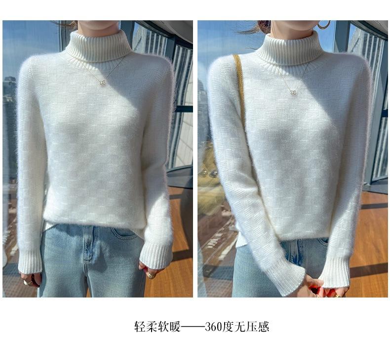 Suéter de punto de cuello alto 100% lana pura para mujer, nuevo otoño e invierno, jersey holgado casual de manga larga de cachemira base