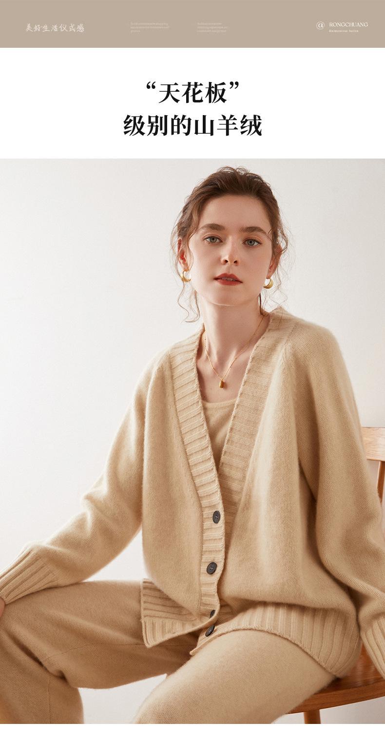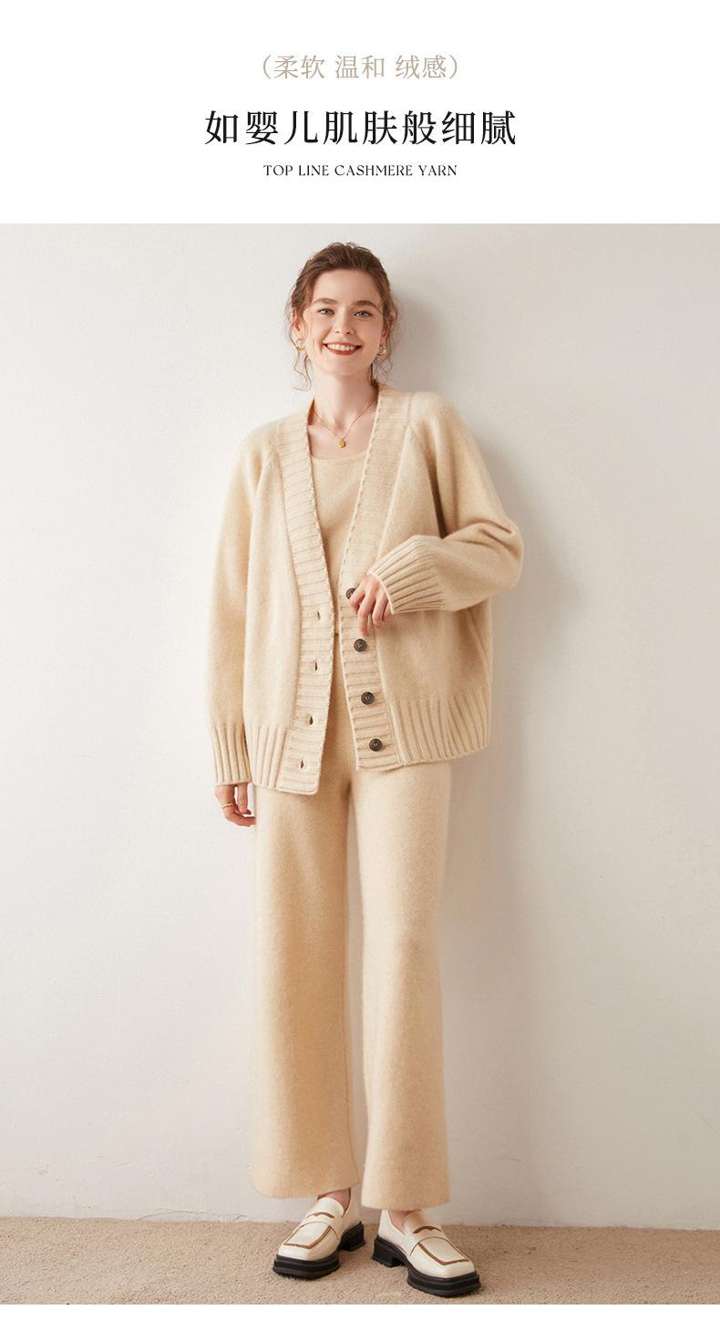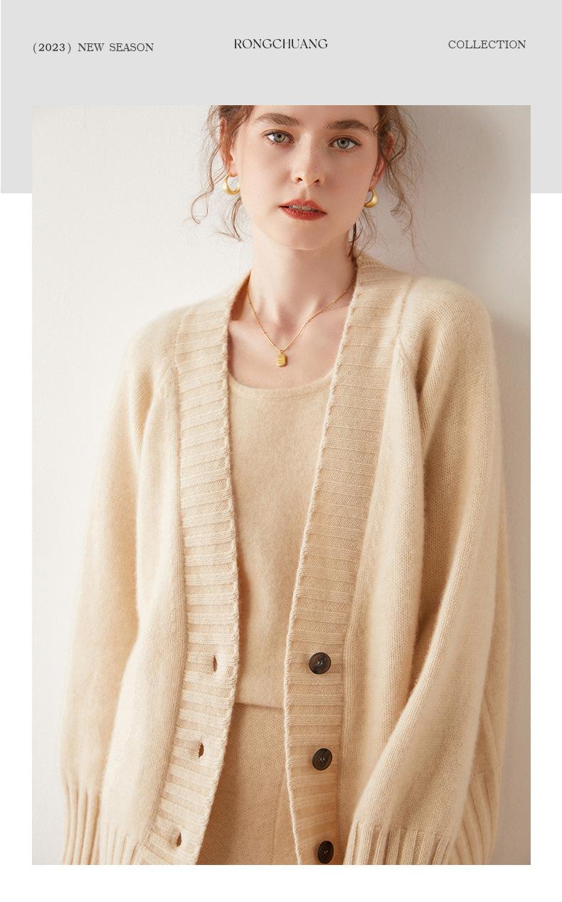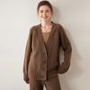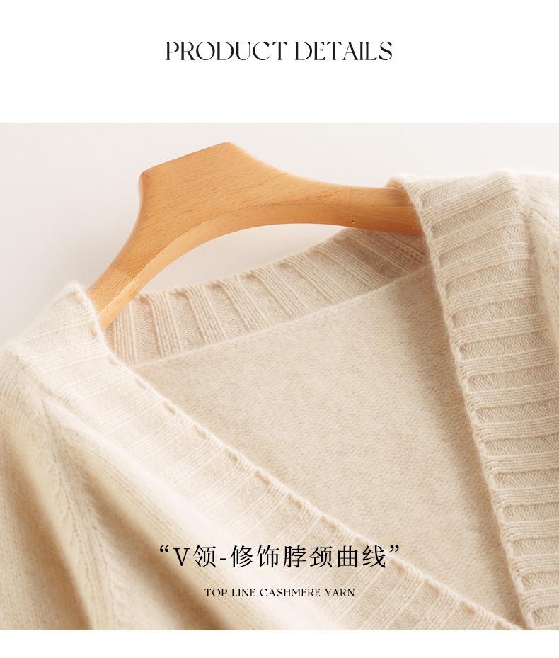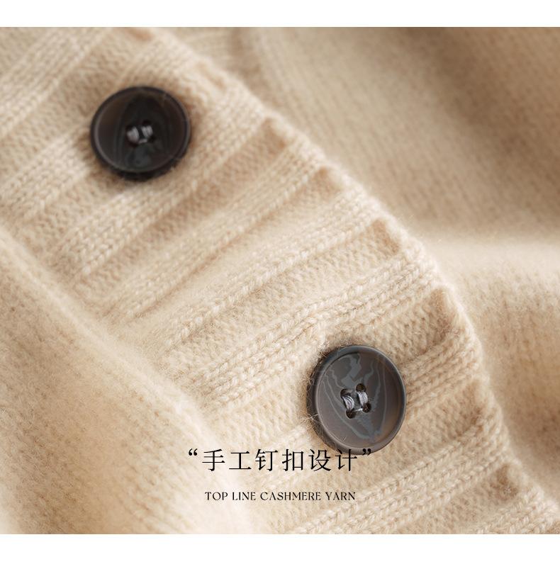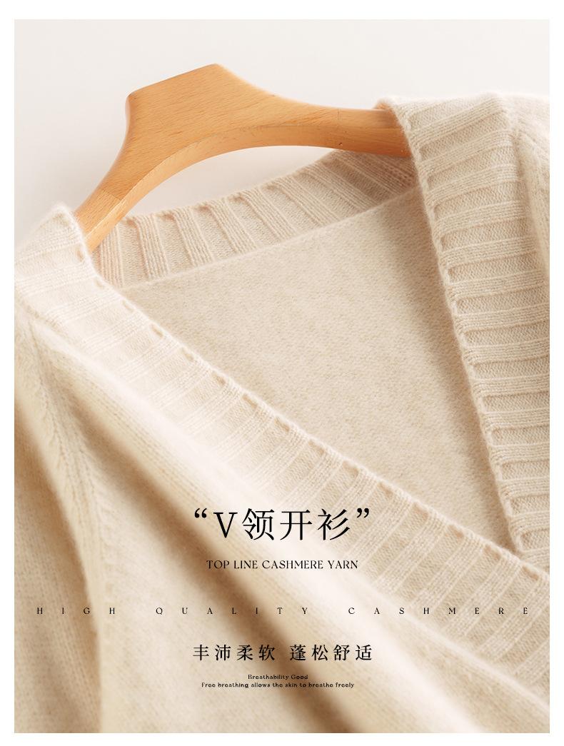 Cárdigan de Punto de Cachemira para Mujer Cuello en V Color Sólido Abrigo Otoño e Invierno Nuevo Cómodo Suave y Ceroso Jacquard Acanalado Ropa Exterior