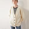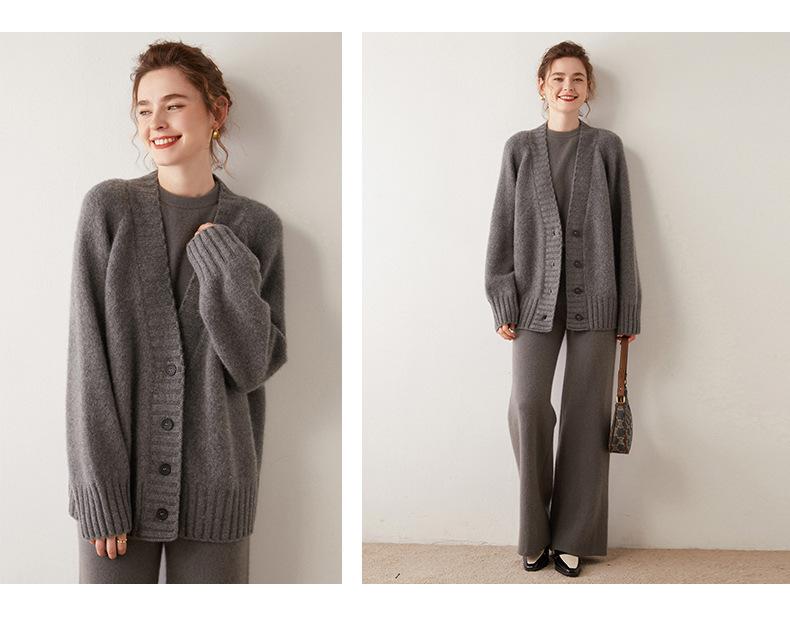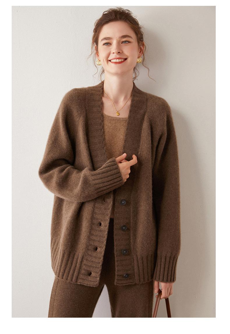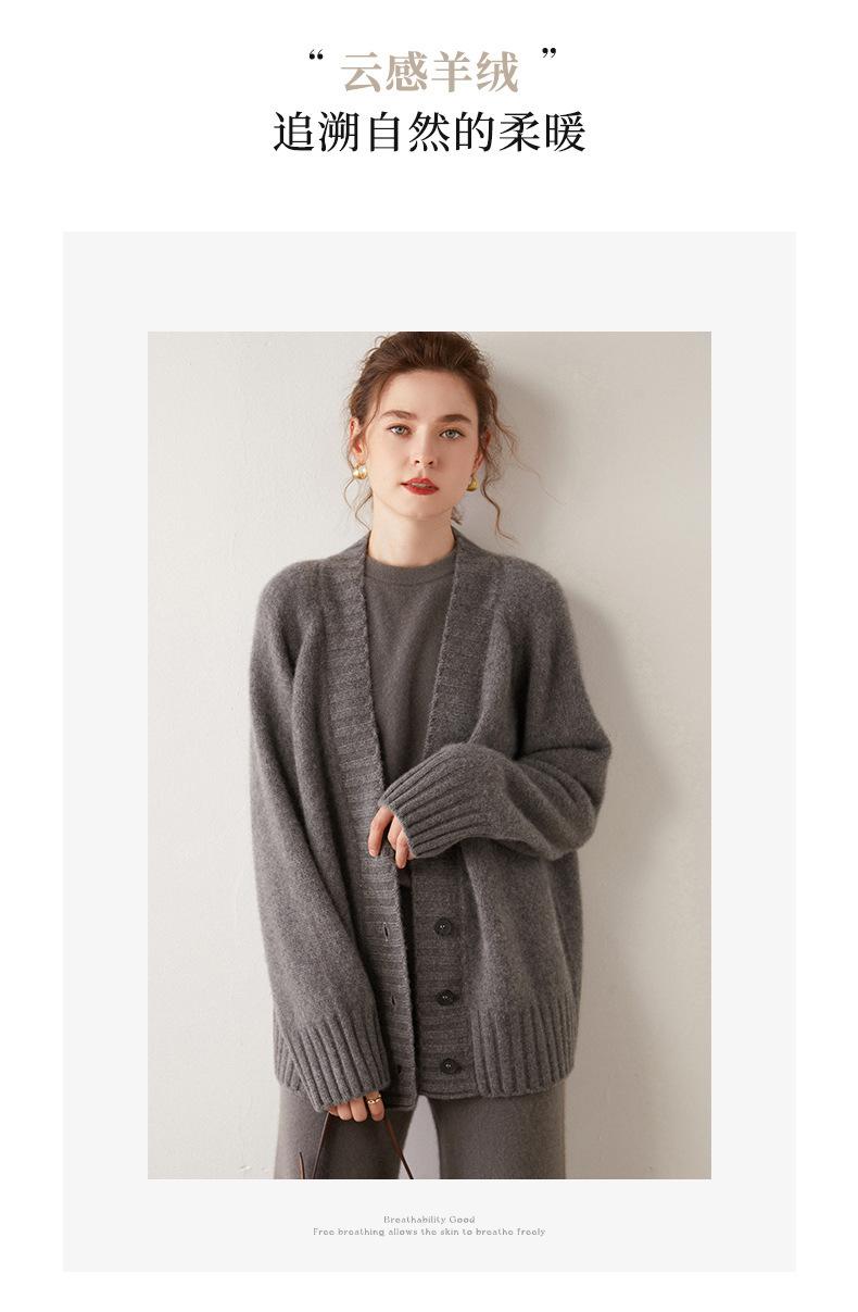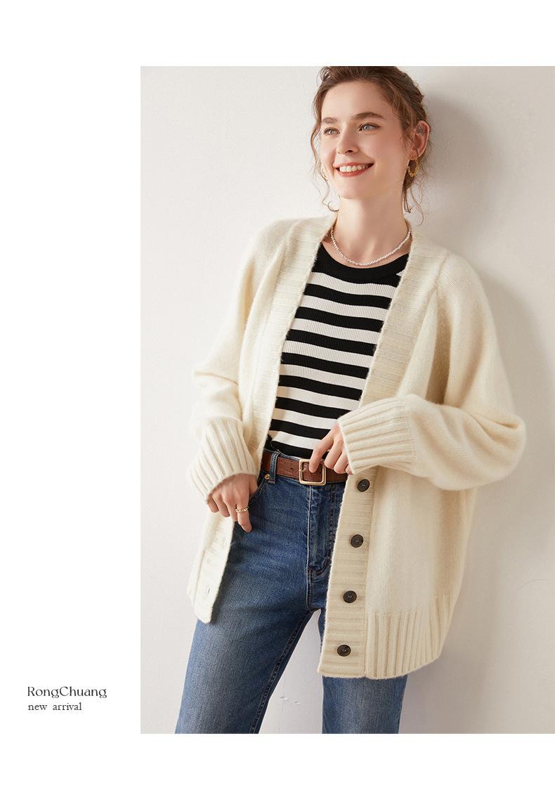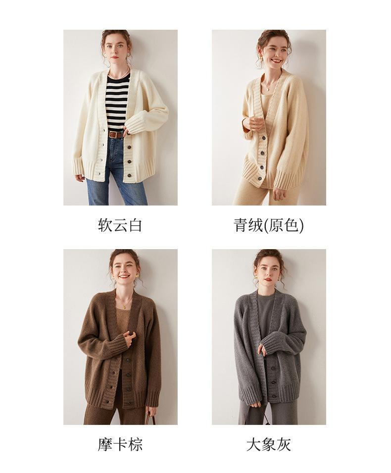 Cárdigan de Punto de Cachemira para Mujer Cuello en V Color Sólido Grueso Holgado Manga Larga Casual Cálido Ropa Exterior Versátil Top Base