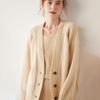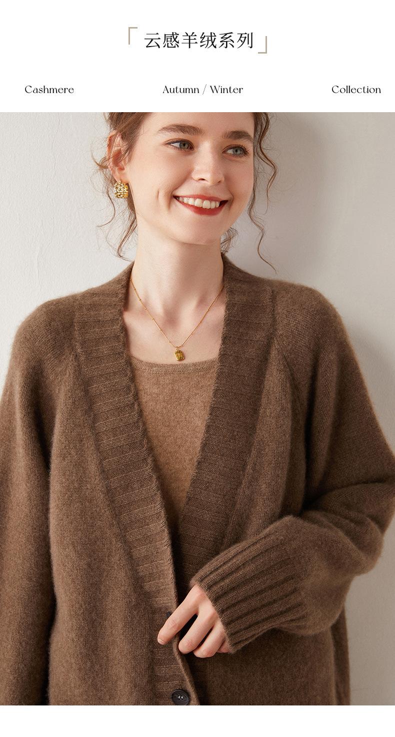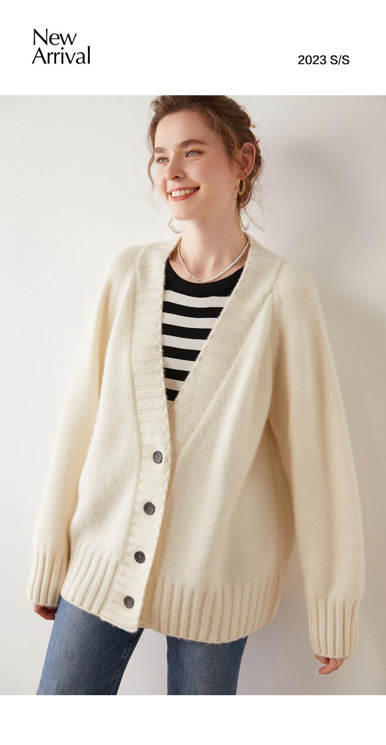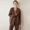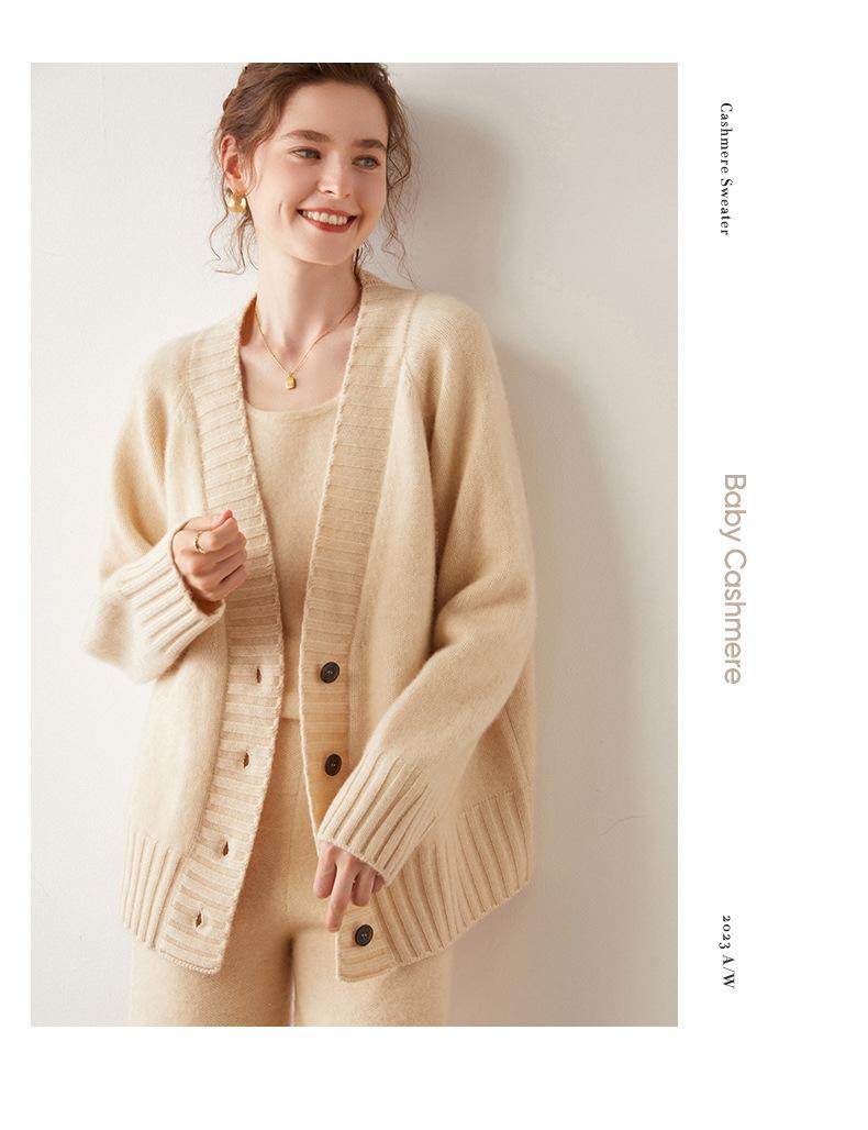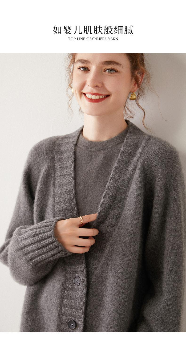 Cárdigan de Punto de Cachemira para Mujer Cuello en V Color Sólido Grueso Holgado Manga Larga Casual Cálido Ropa Exterior Versátil Top Base