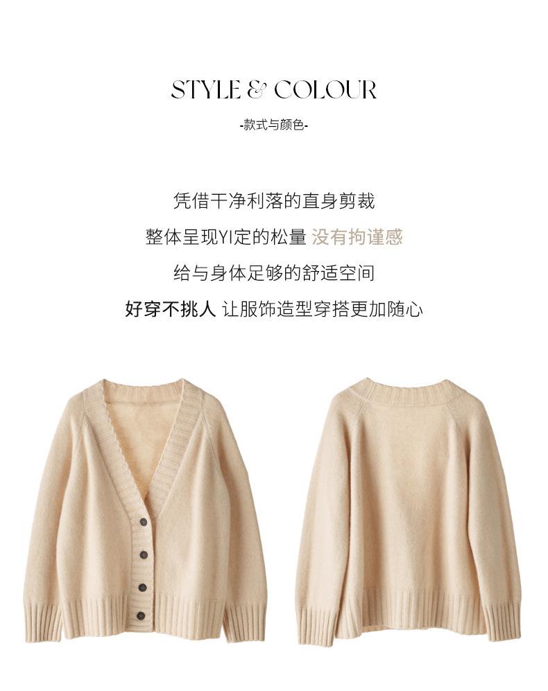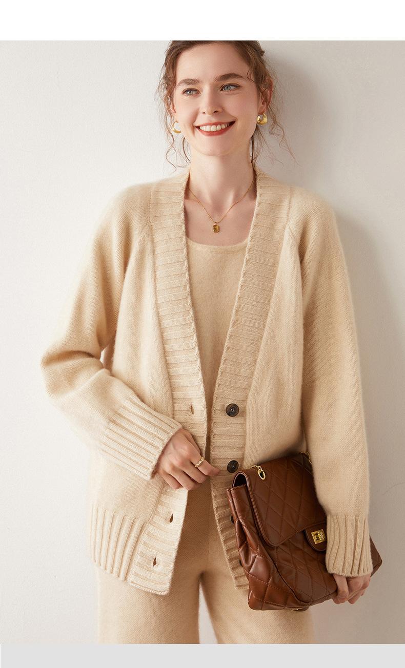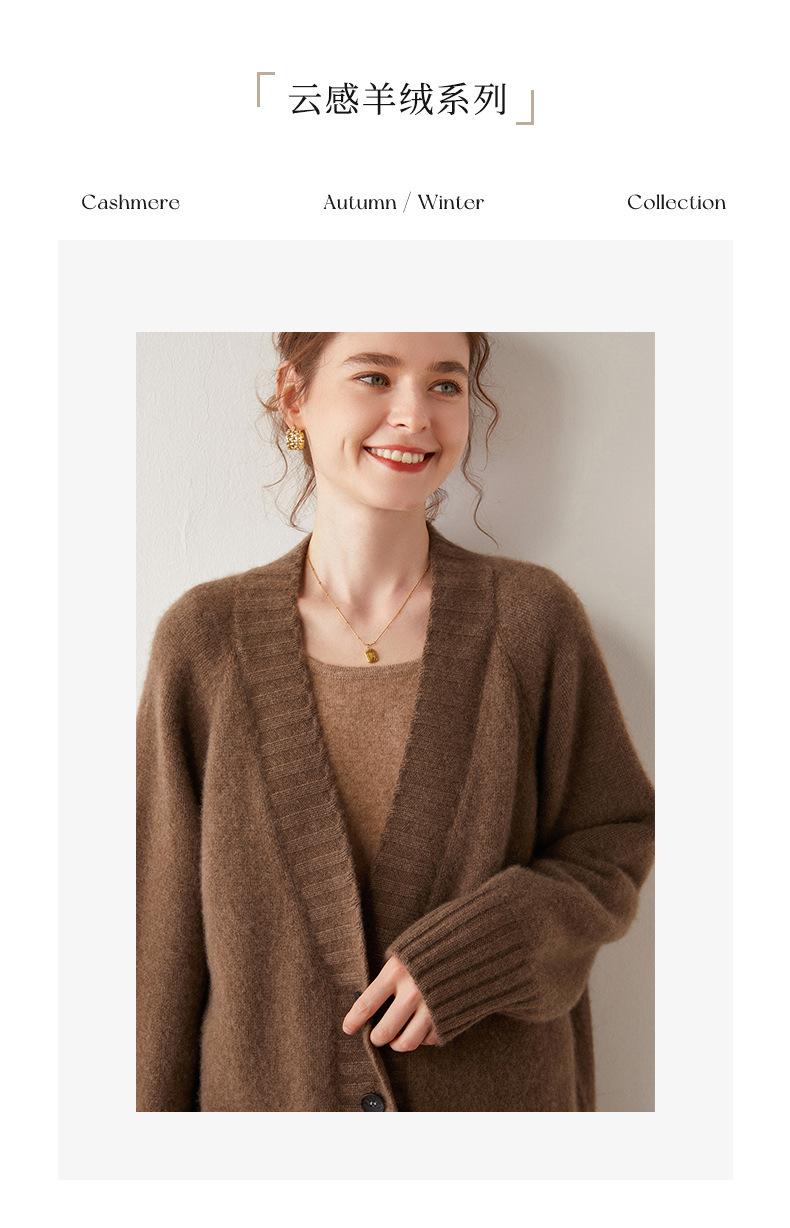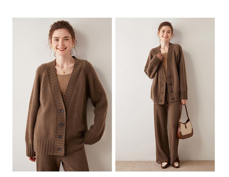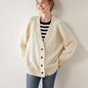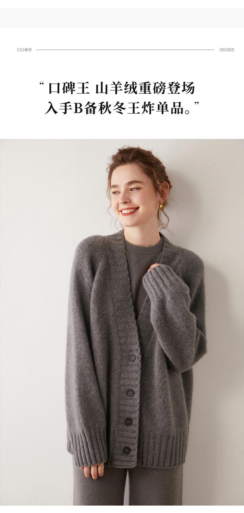 Cárdigan de Punto de Cachemira para Mujer Cuello en V Color Sólido Grueso Holgado Manga Larga Casual Cálido Ropa Exterior Versátil Top Base