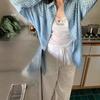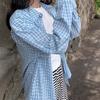 Camisa de Manga Larga a Cuadros Azules Nicho 2025 para Mujer, Temperamento Casual, Top con Protección Solar, Estilo Coreano, Diseño Holgado