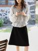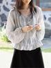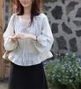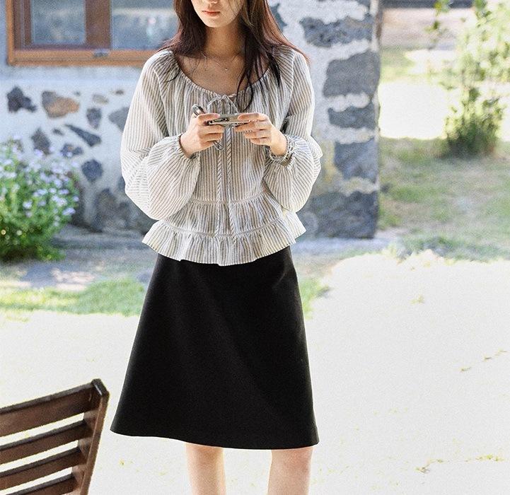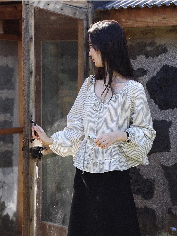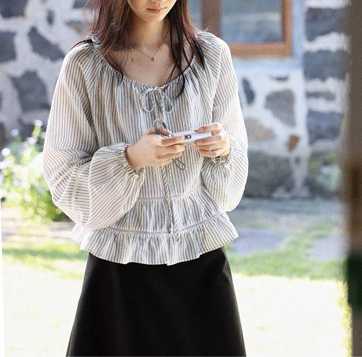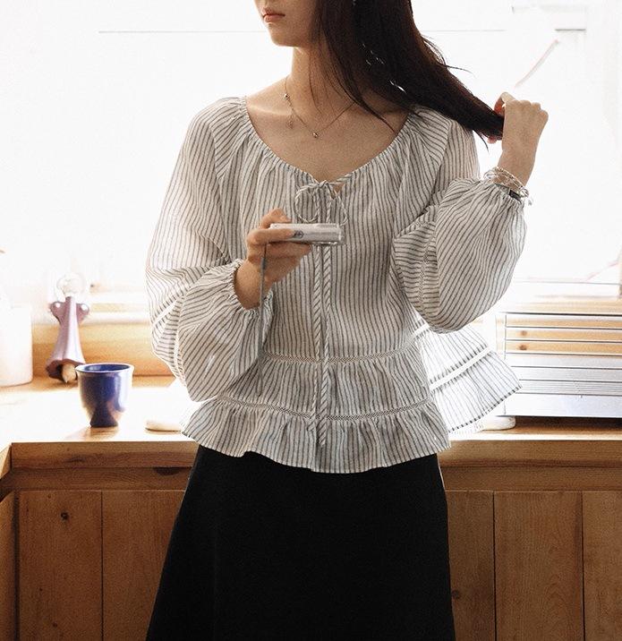Persiguiendo el Viento Camisa de Encaje con Temperamento Francés a Rayas Mujer Otoño Suelta Adelgazante Camisa Babydoll