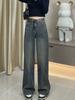 Jeans holgados de pierna ancha transfronterizos europeos y americanos otoño 2025 nuevos pantalones rectos hasta el suelo jeans de algodón puro mujer