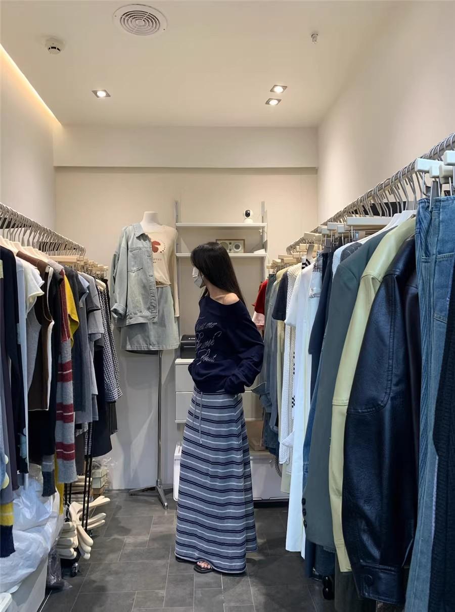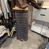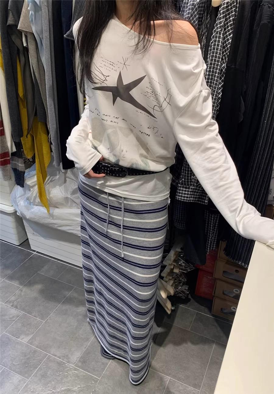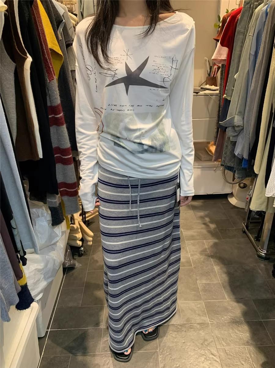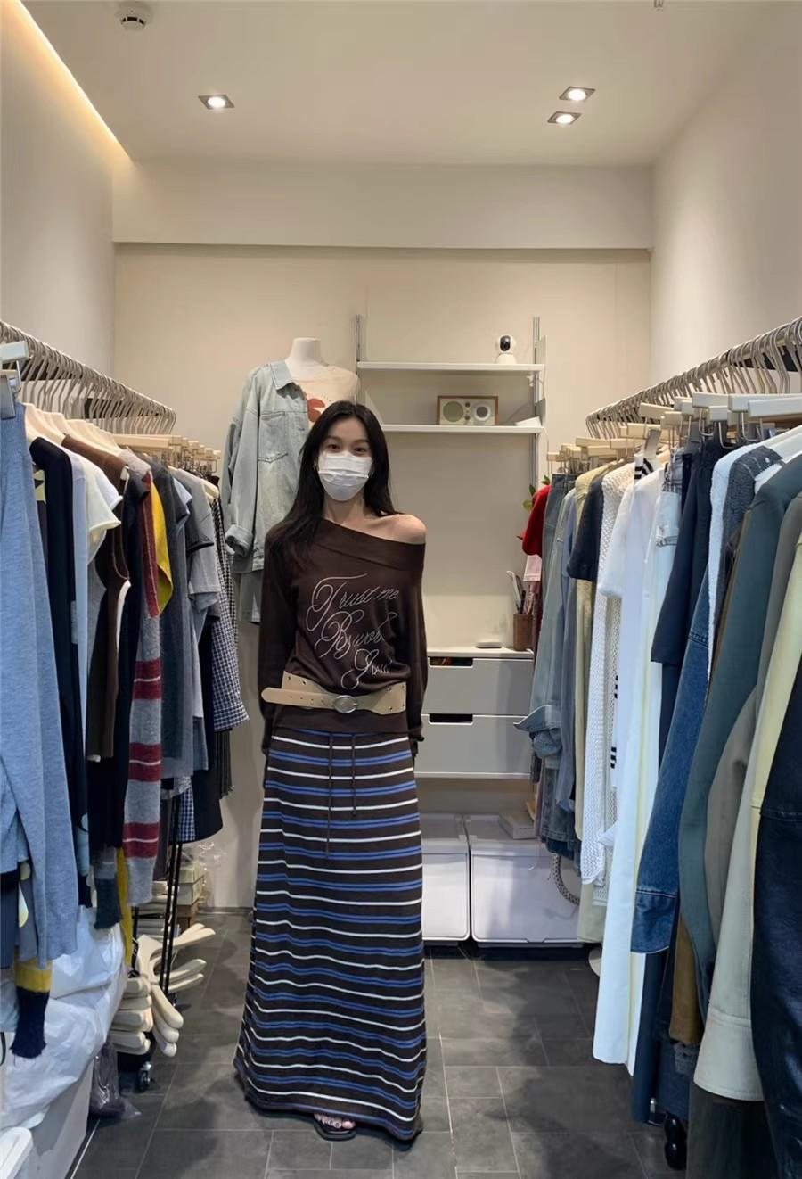 Chic coreano otoño nuevo retro nicho cintura alta anudada color block rayas falda midi ceñida a la cadera falda larga