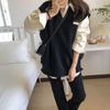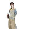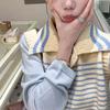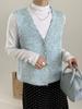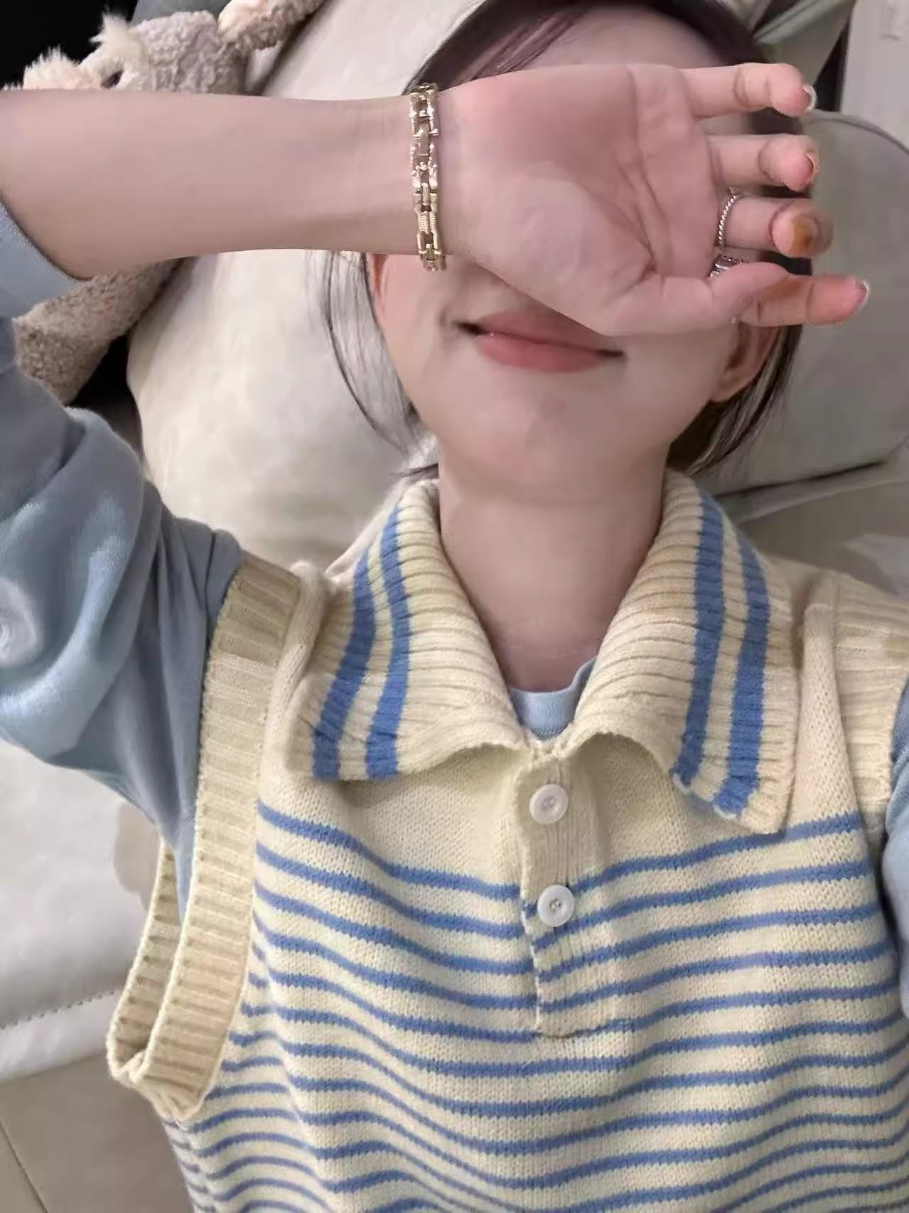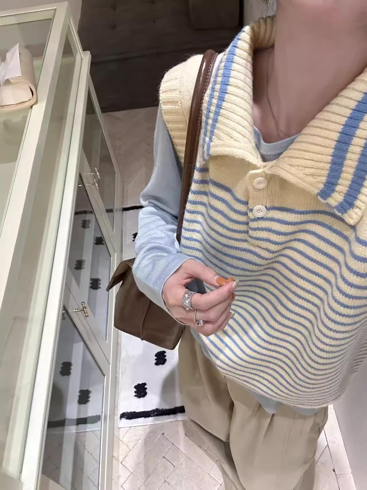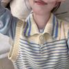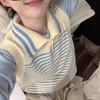 Moda estilo coreano cuello vuelto chaleco de punto a rayas mujer 2025 otoño e invierno nuevo holgado adelgazante para superponer azul