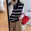 Nuevo Otoño e Invierno Moda Coreana Versátil Cuello Vuelto Chaleco Rayado Mujer Holgado Adelgazante Capa Superior Tejido de Punto Azul