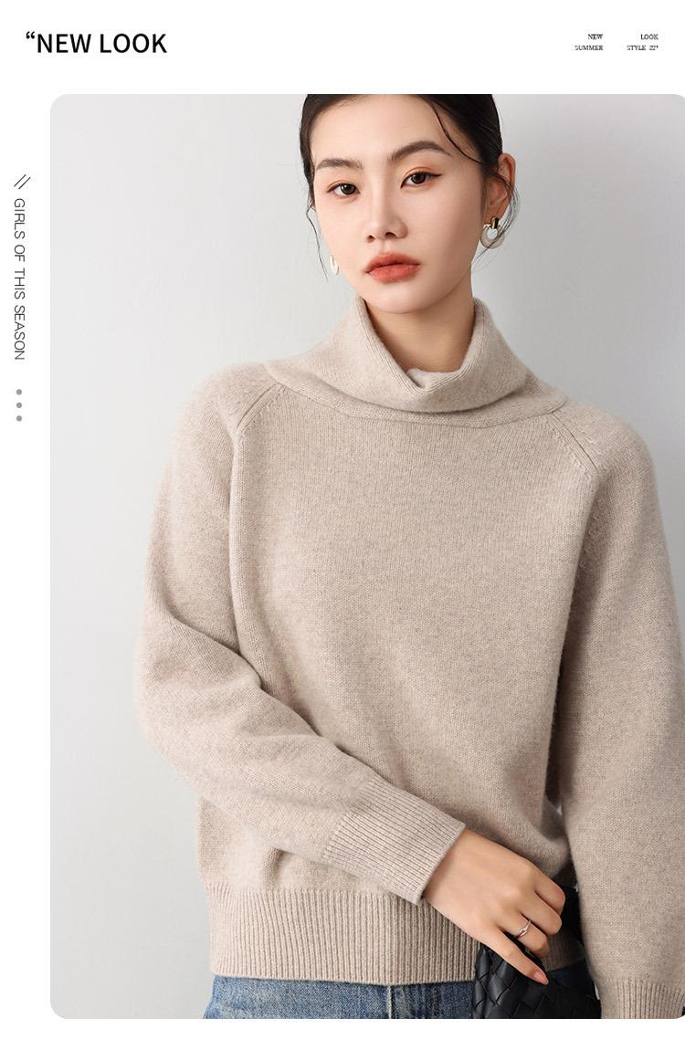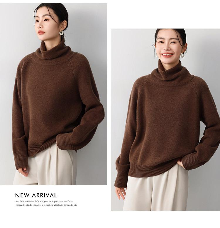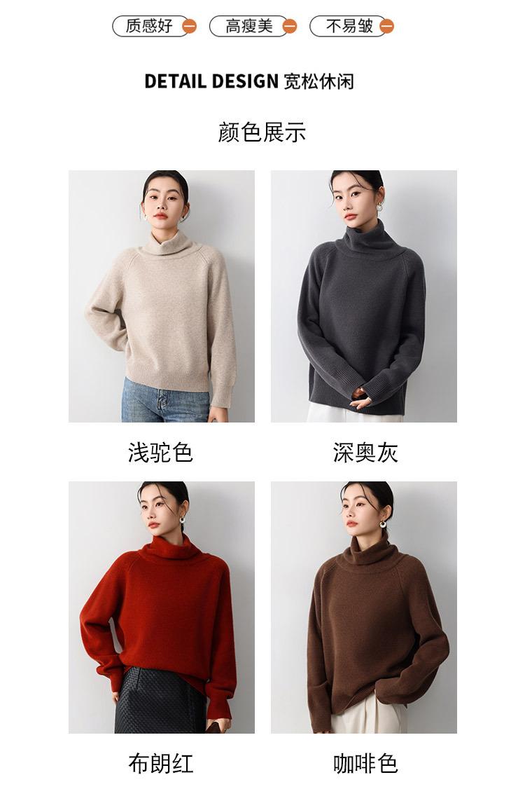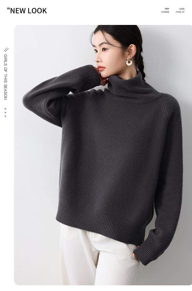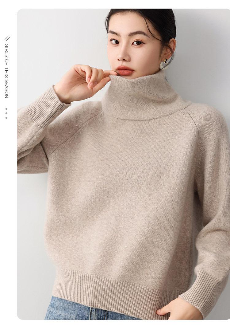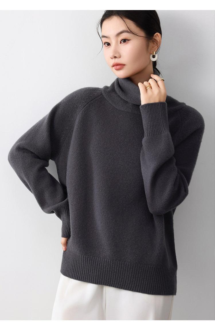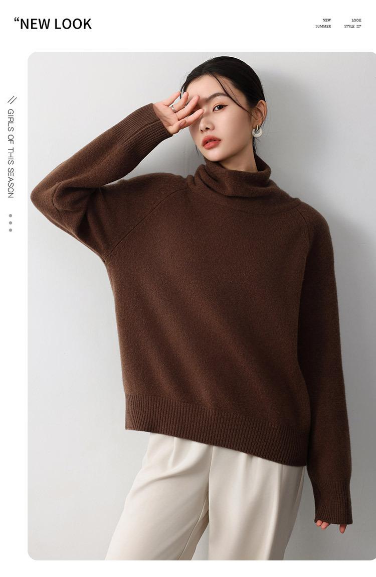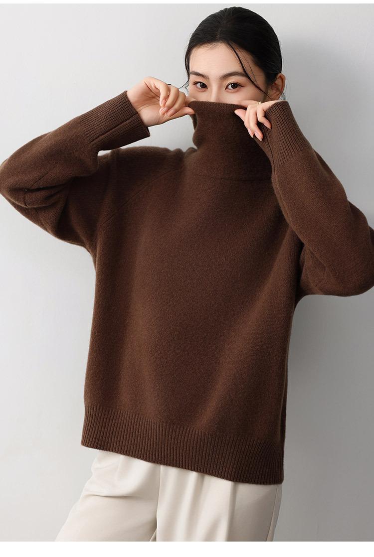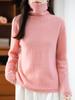 2025 Otoño/Invierno Nuevo Suéter de Punto de Cuello Alto Grueso de Cinco Agujas de Lana Pura Manga Larga para Mujer Color Sólido Estilo Lazy Capa Base