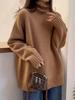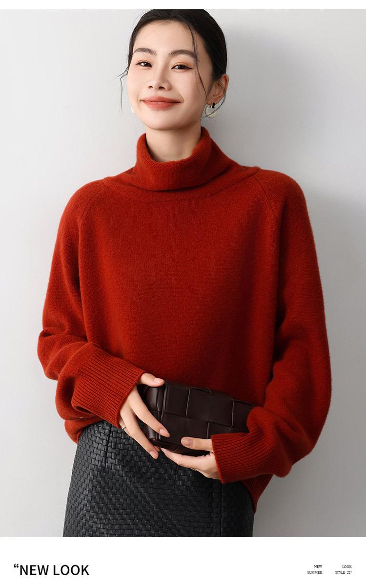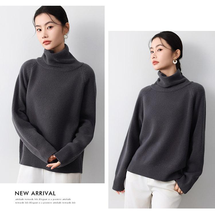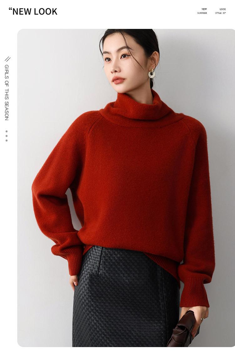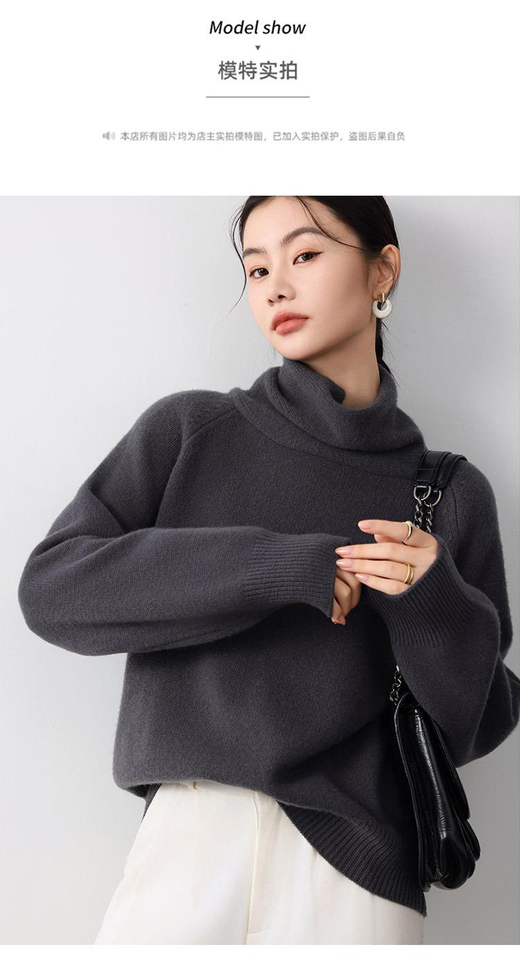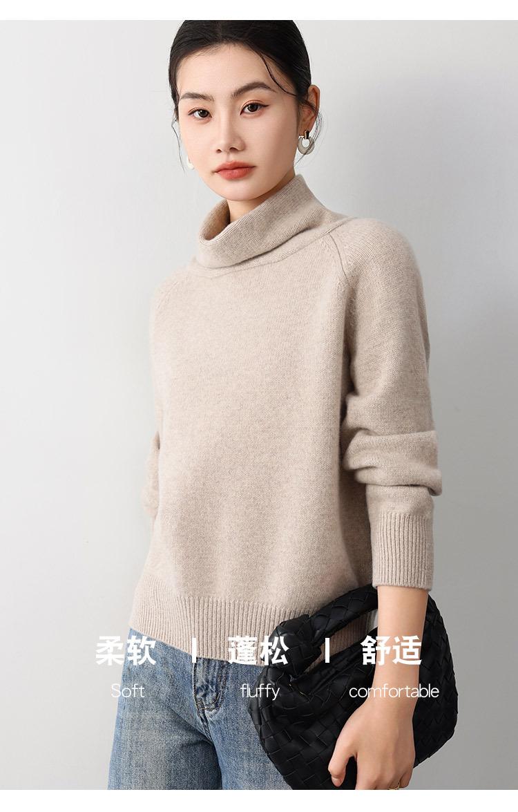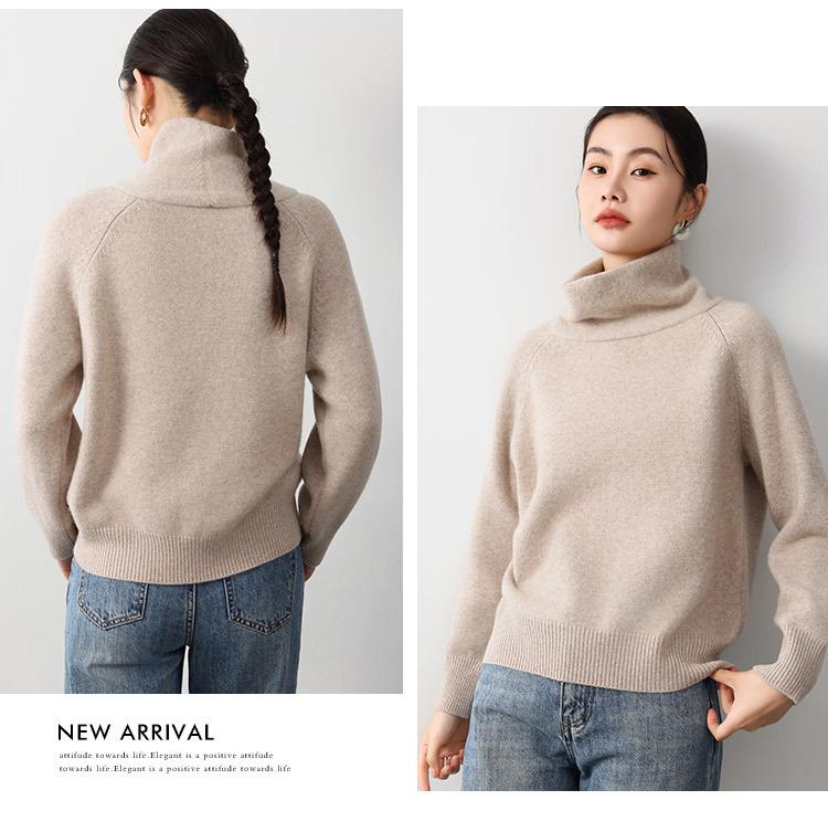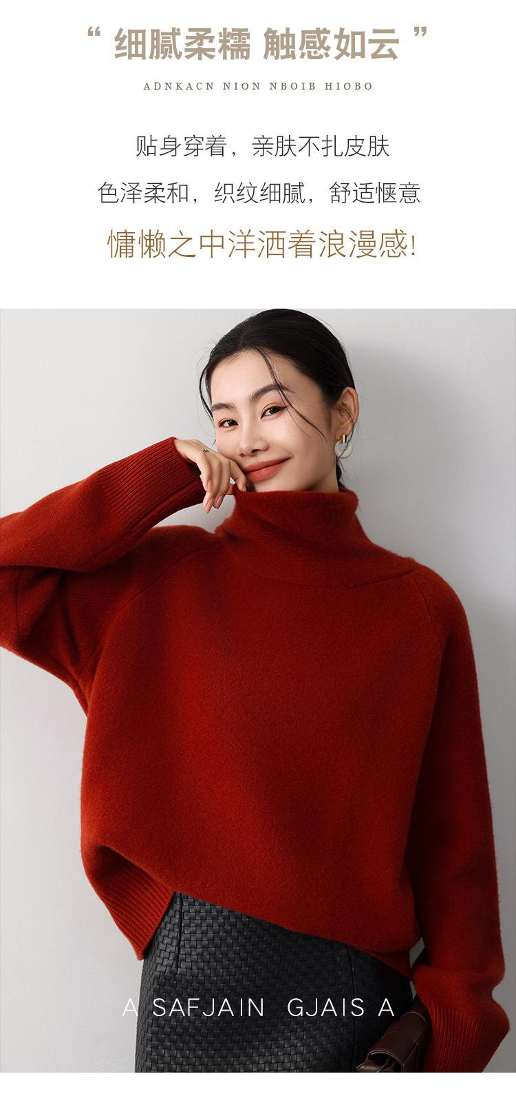 2025 Otoño/Invierno Nuevo Suéter de Punto de Cuello Alto Grueso de Cinco Agujas de Lana Pura Manga Larga para Mujer Color Sólido Estilo Lazy Capa Base