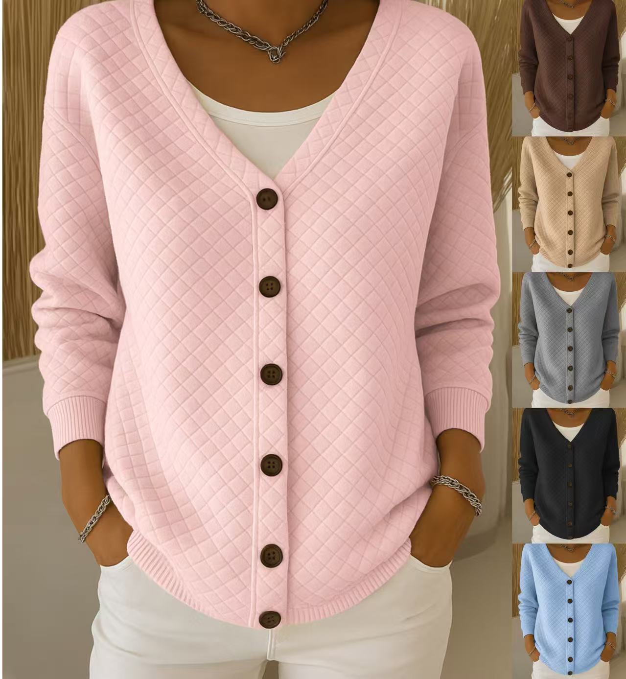 Cárdigan de punto de manga larga a cuadros de moda casual suelto para mujer, nuevo de otoño e invierno transfronterizo europeo y americano