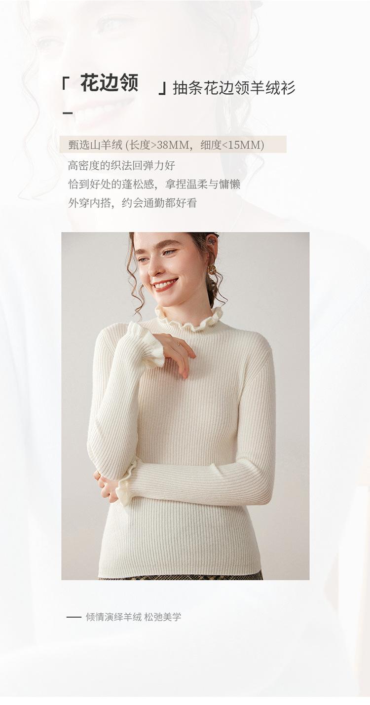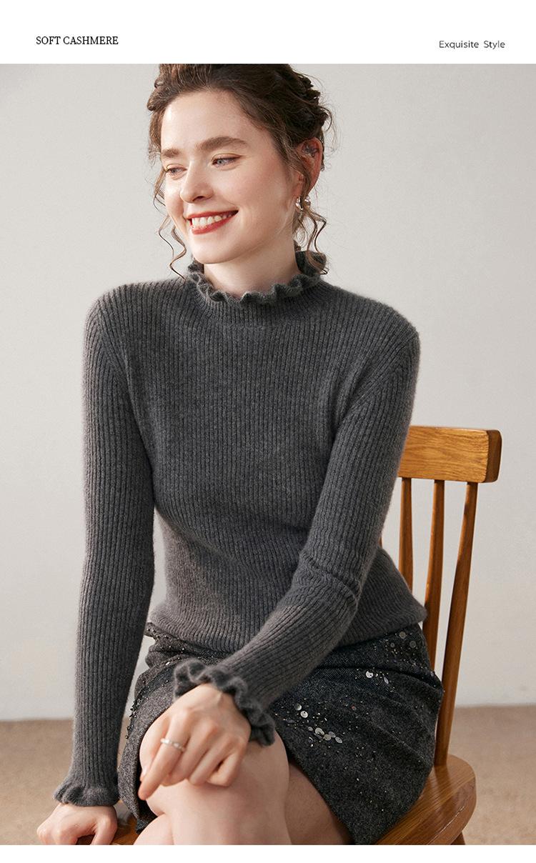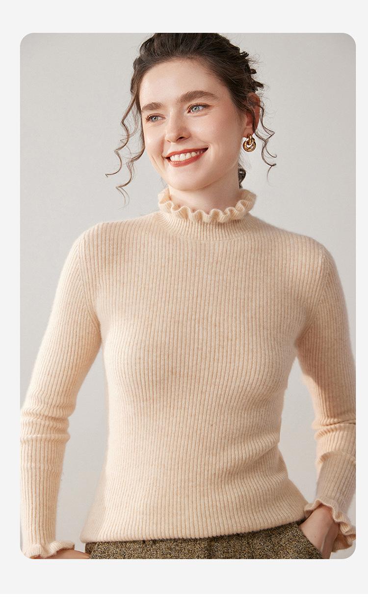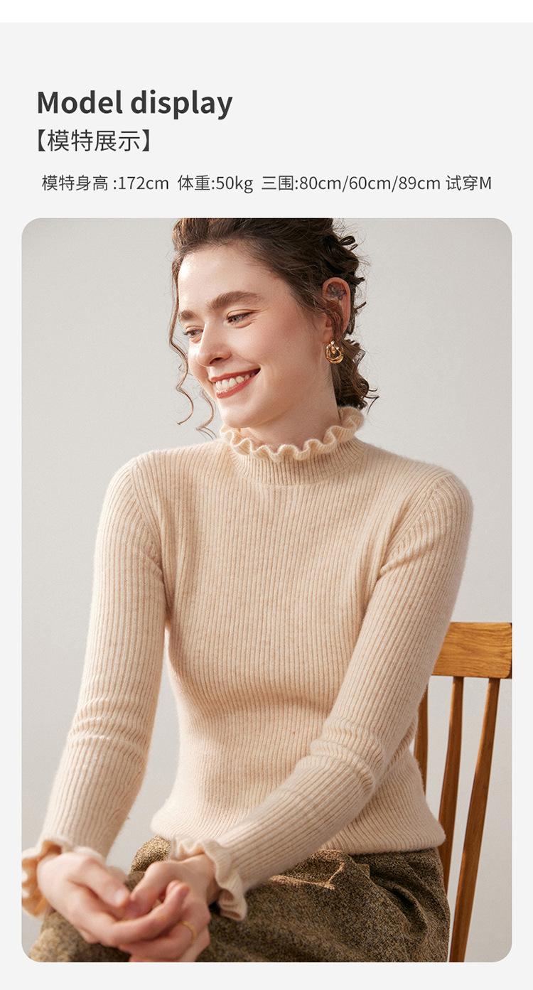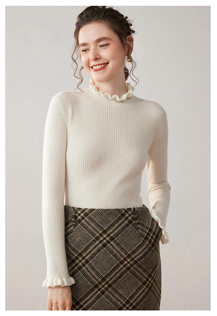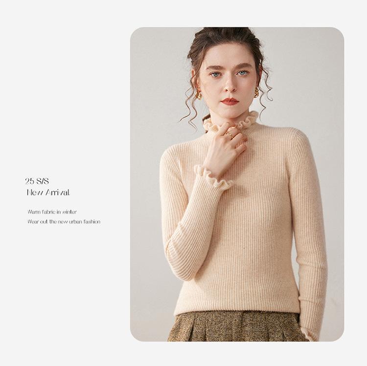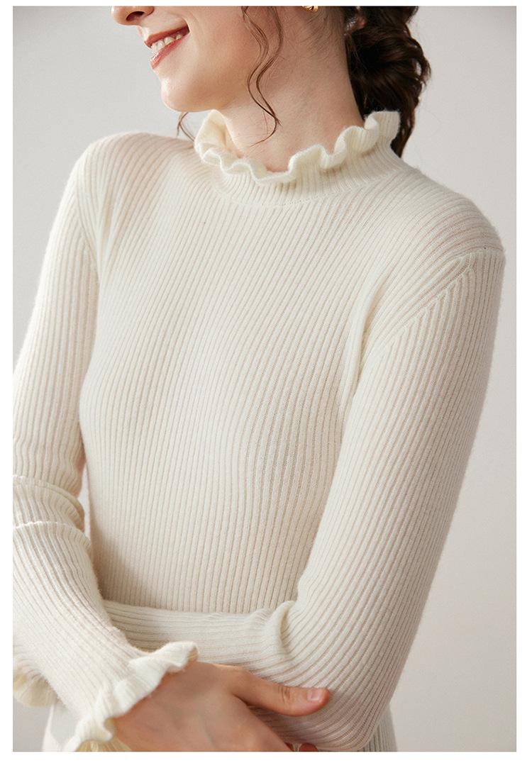 Top de Capa Base de Cachemira de Encaje de Cuello Alto para Mujer Adelgazante Temperamento Versátil Jersey Ropa Interior Manga Larga Suéter de Punto