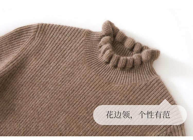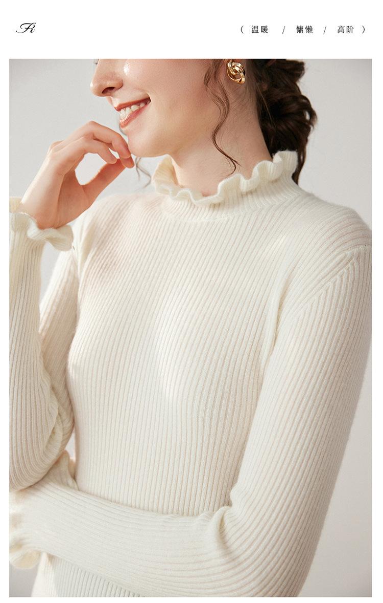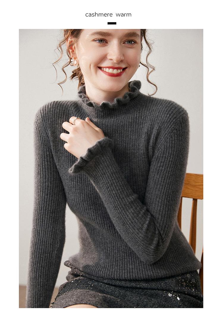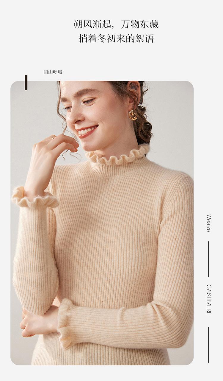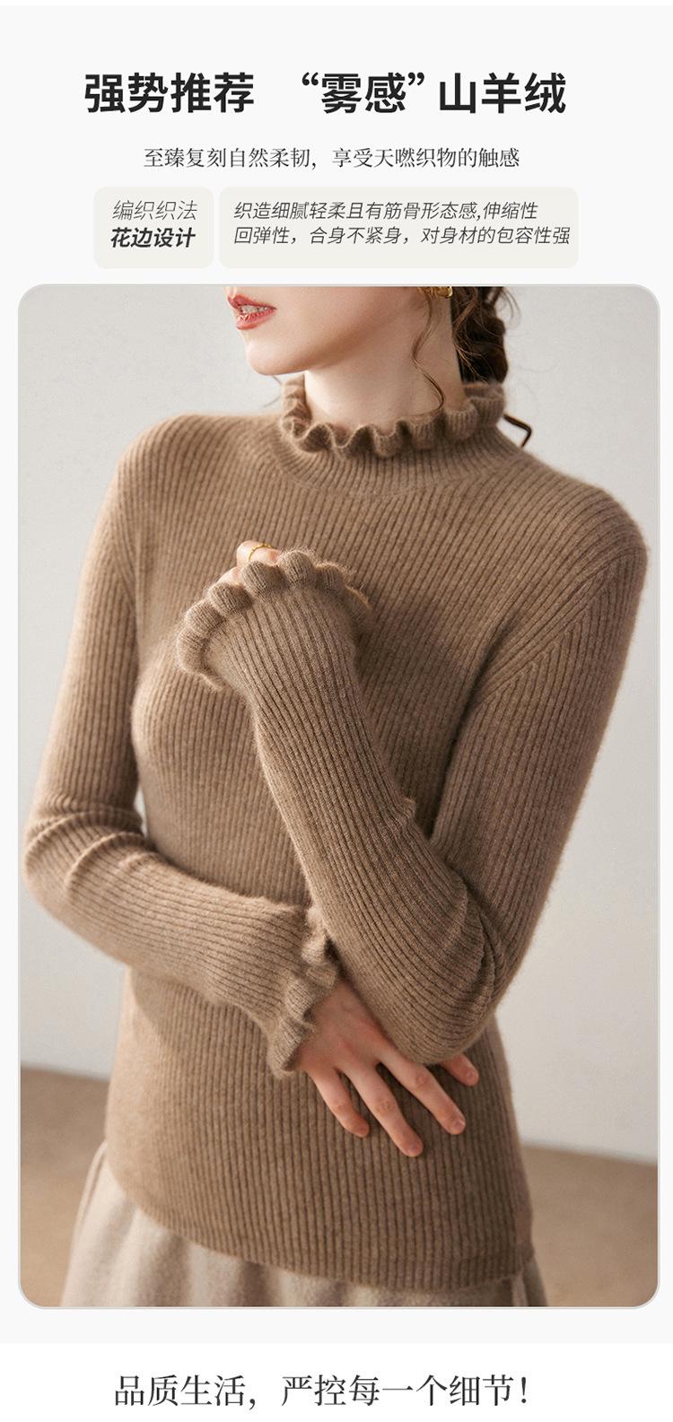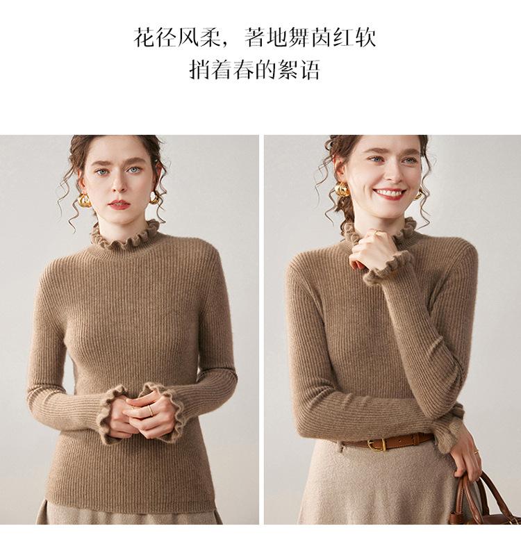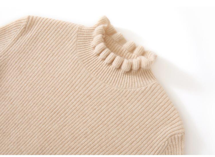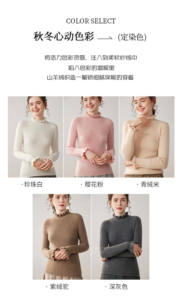 Top de Capa Base de Cachemira de Encaje de Cuello Alto para Mujer Adelgazante Temperamento Versátil Jersey Ropa Interior Manga Larga Suéter de Punto