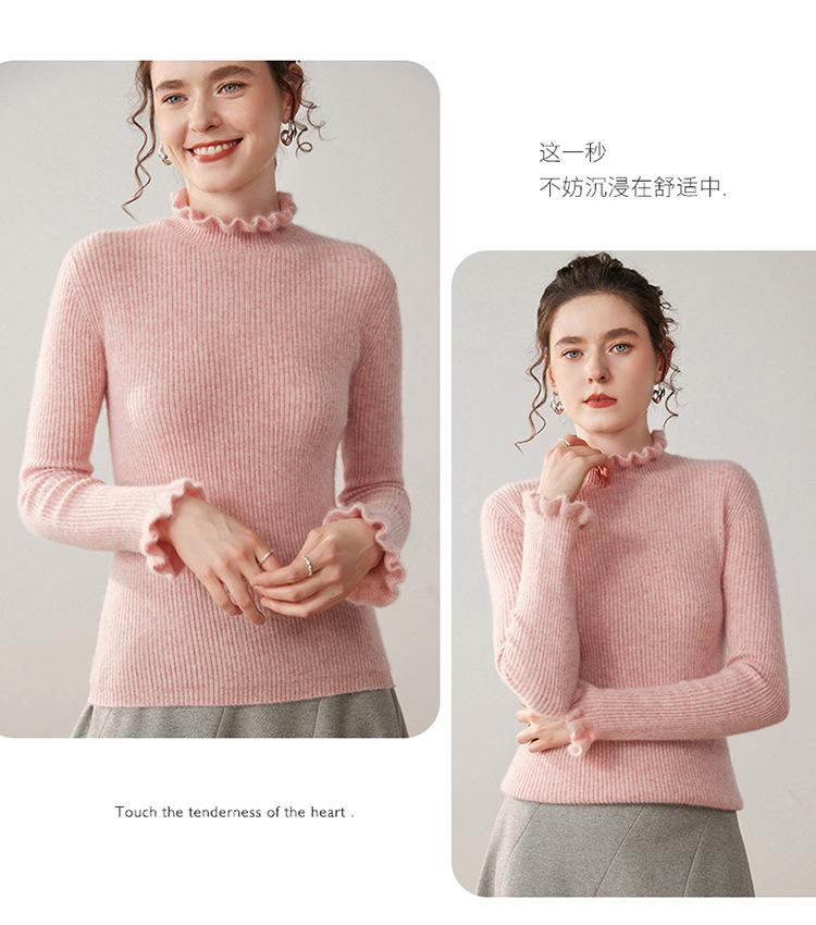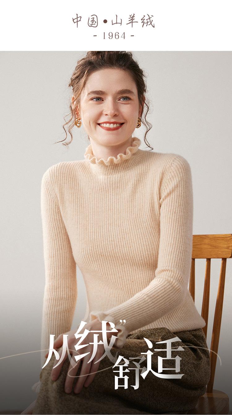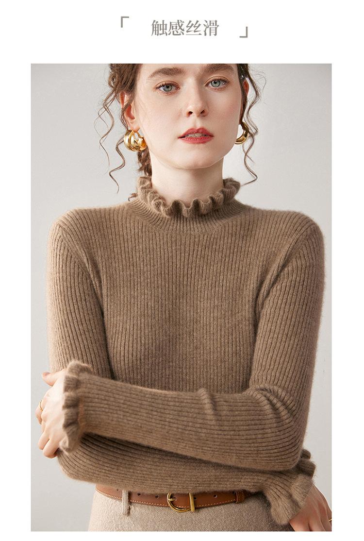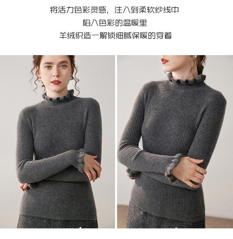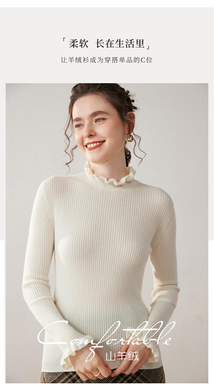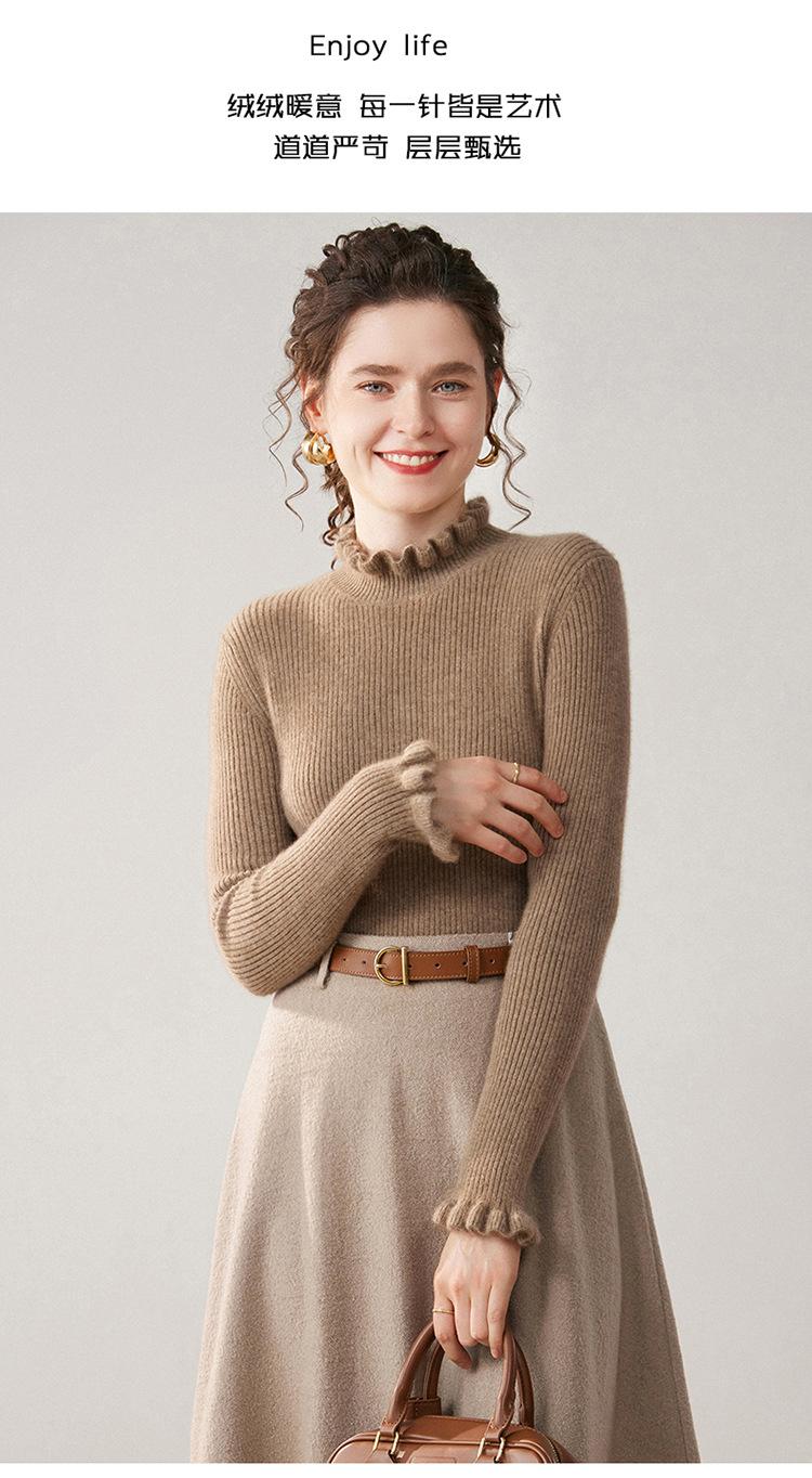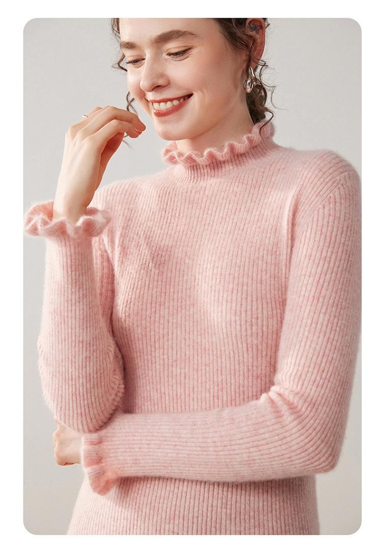 Top de Capa Base de Cachemira de Encaje de Cuello Alto para Mujer Adelgazante Temperamento Versátil Jersey Ropa Interior Manga Larga Suéter de Punto