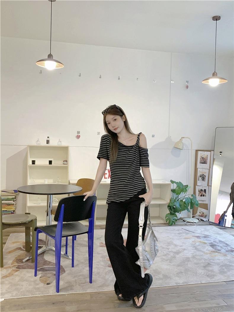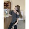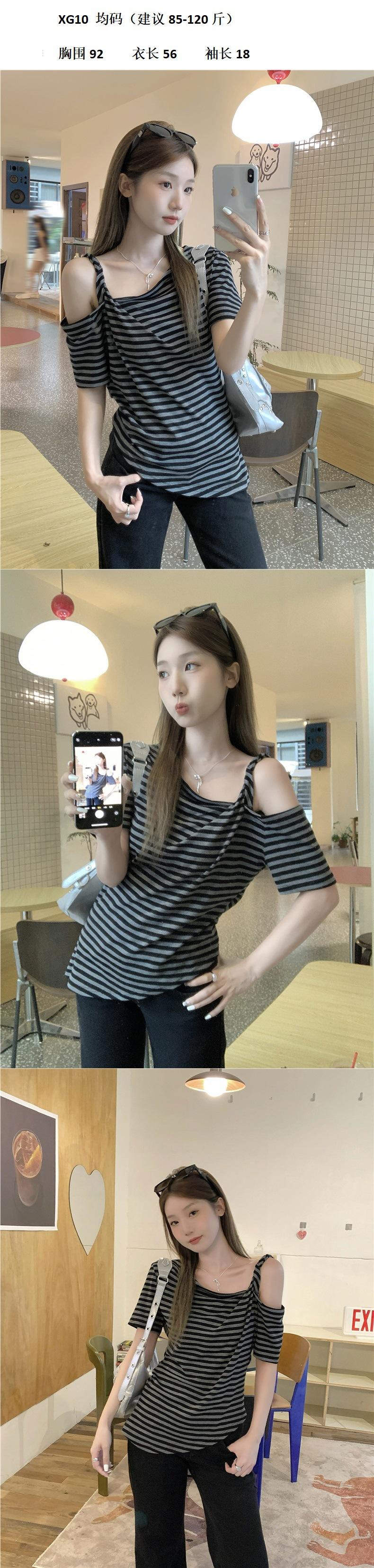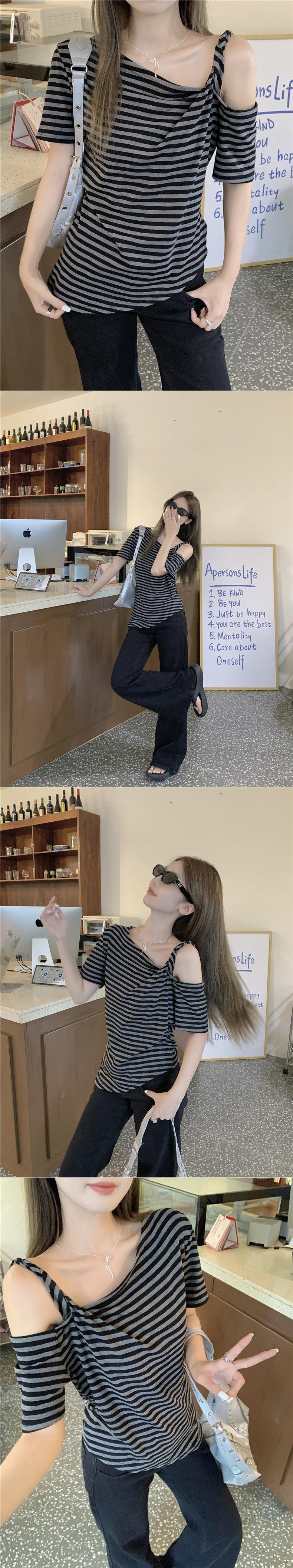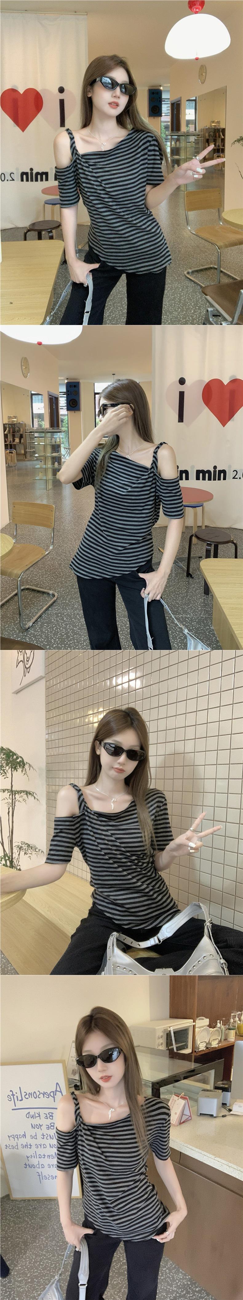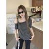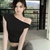 Nicho de sentido del diseño camiseta de hombro descubierto para mujer verano nuevo manga corta asimétrica adelgazante top casual chica hot deseo puro sexy