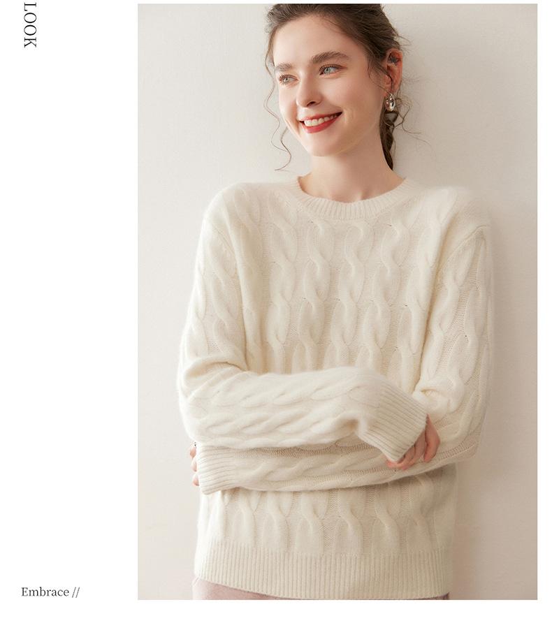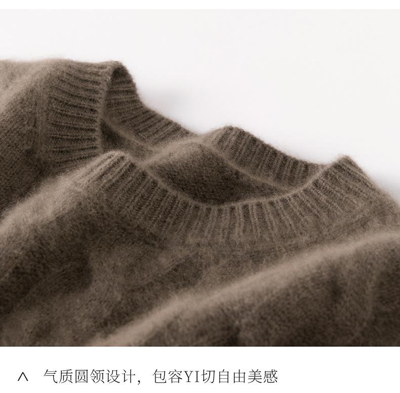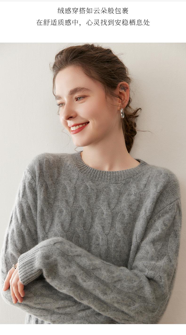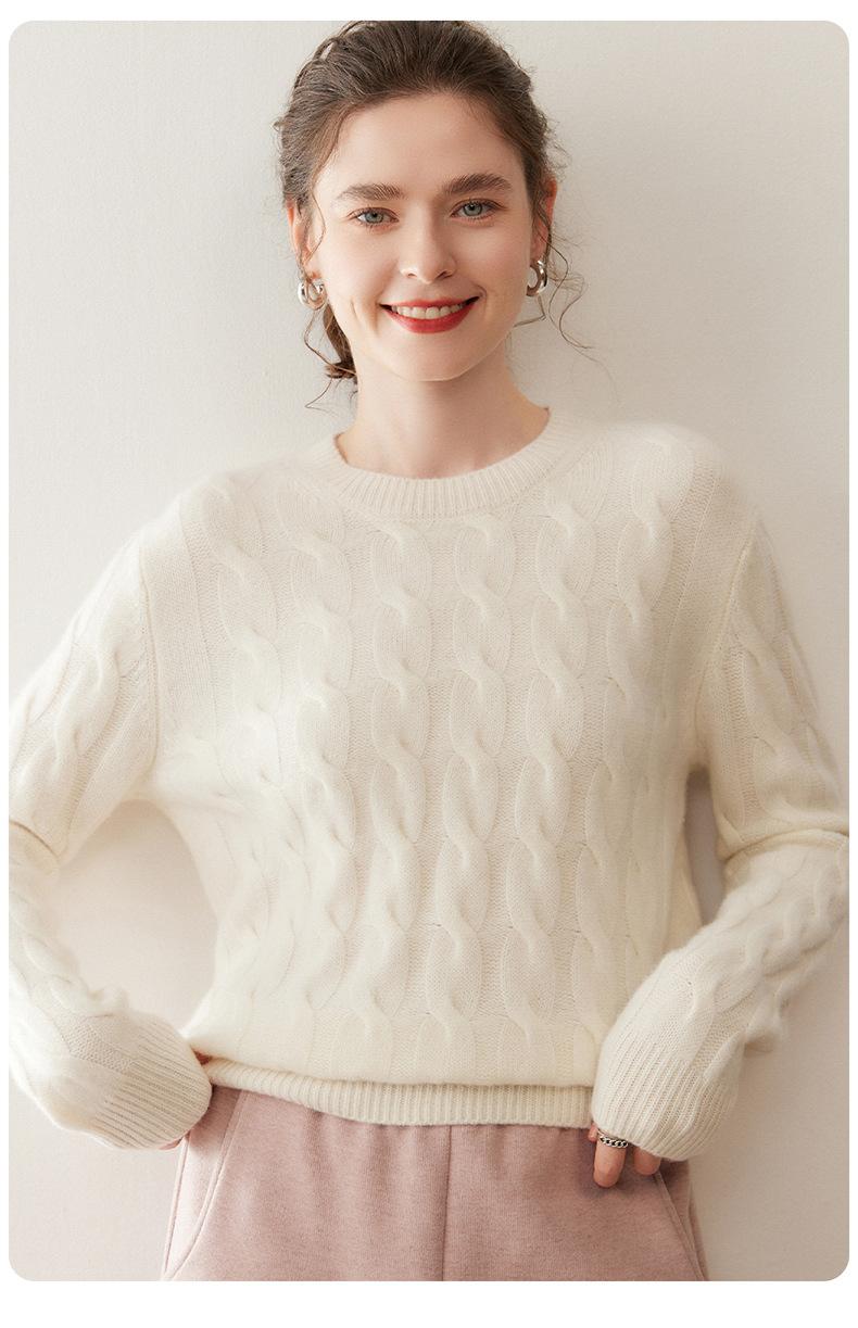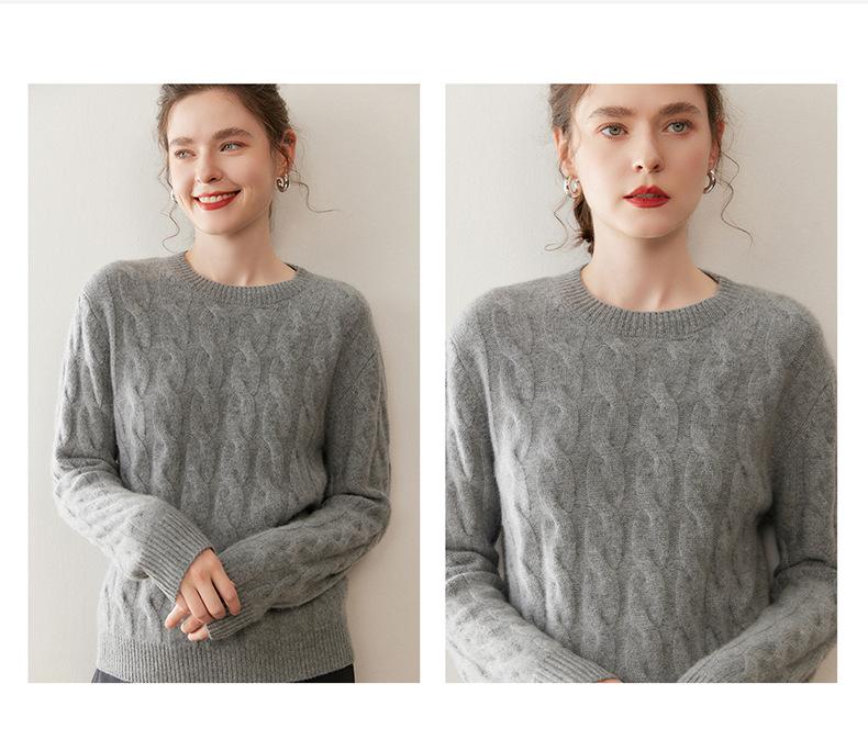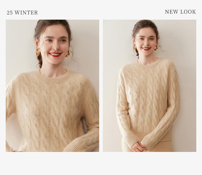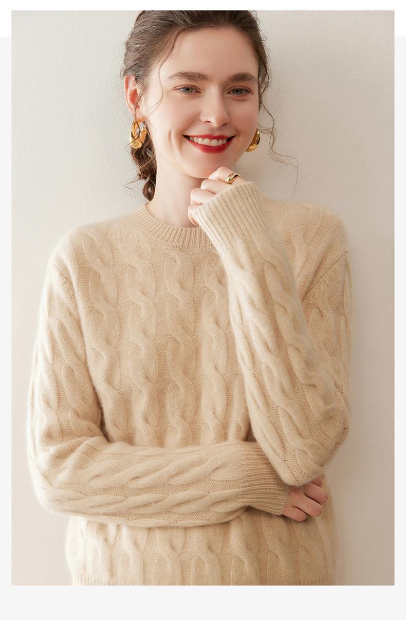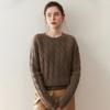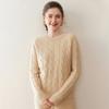 Top de capa base de punto de cachemira de color sólido con punto de cable integral estilo coreano, holgado, adelgazante, grueso, suéter para mujer, ropa interior