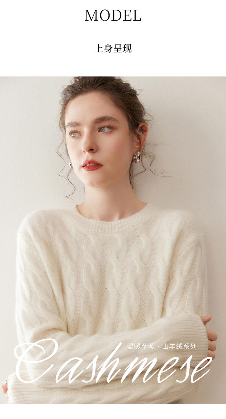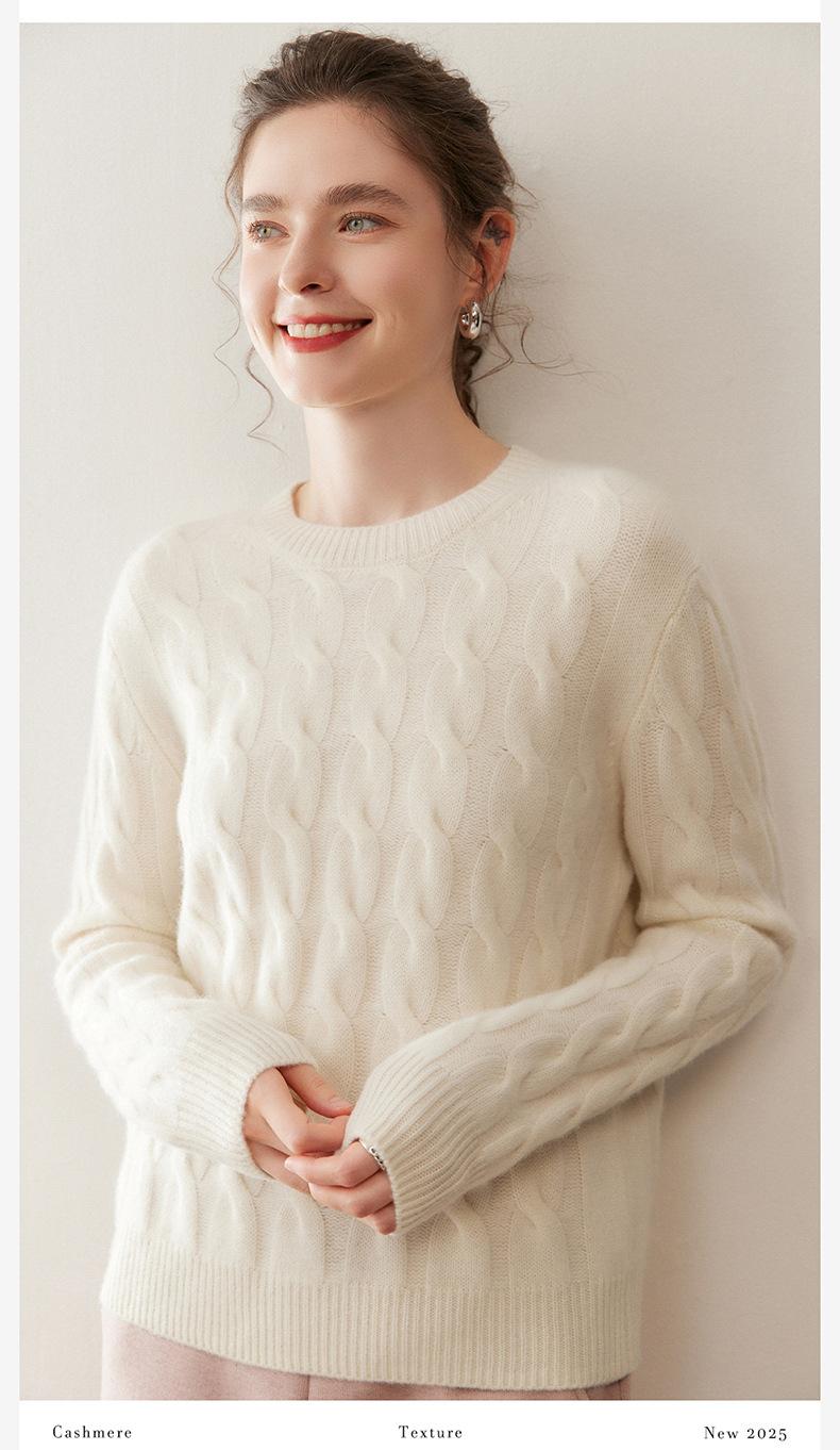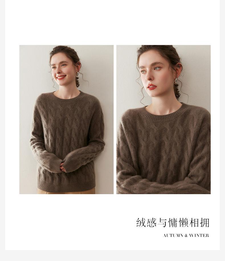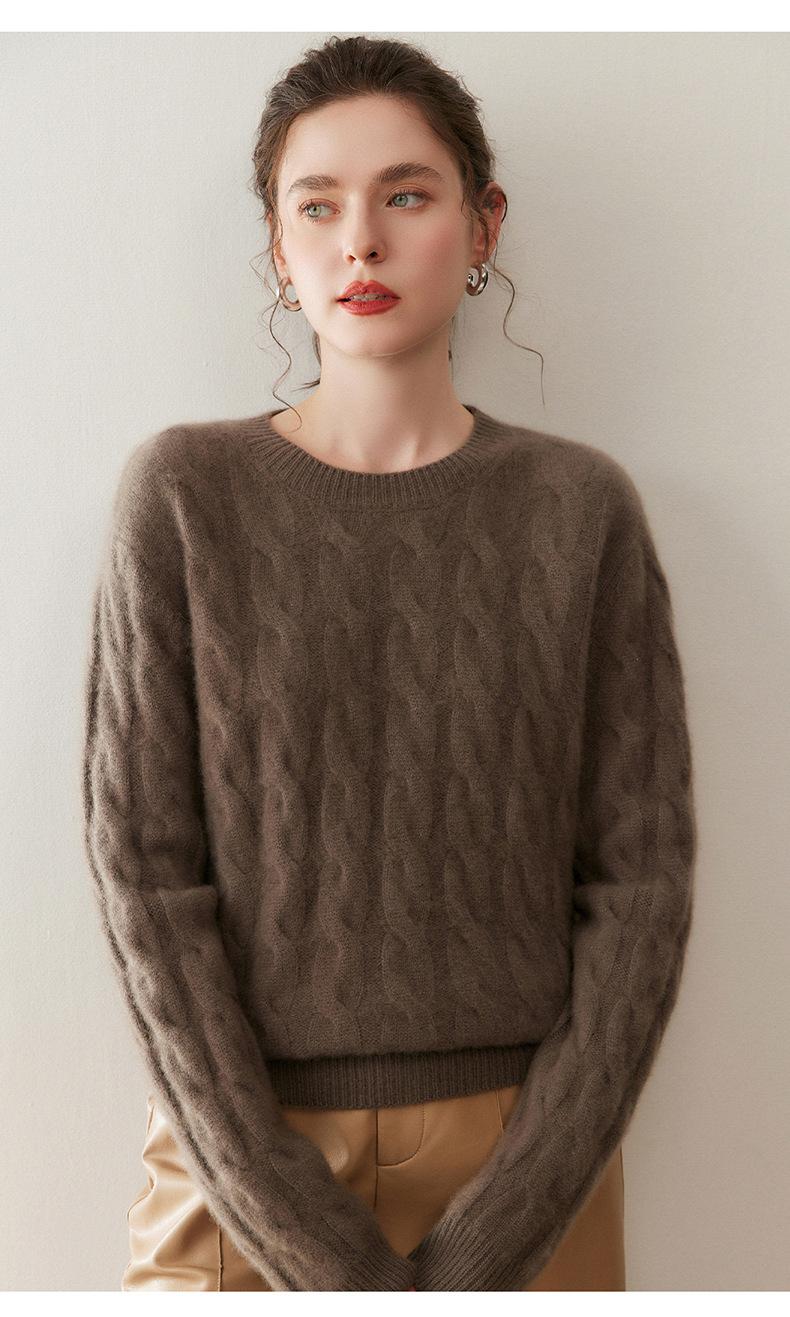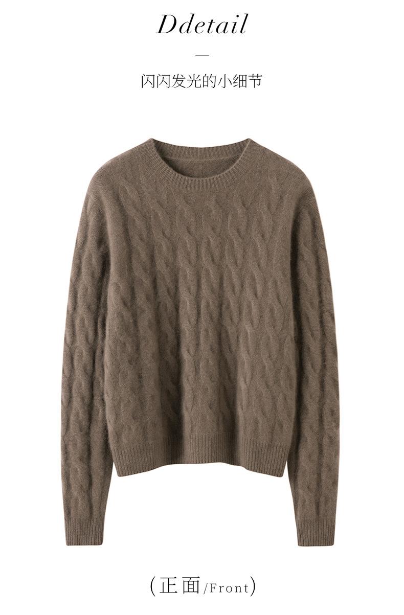 Top de capa base de punto de cachemira de color sólido con punto de cable integral estilo coreano, holgado, adelgazante, grueso, suéter para mujer, ropa interior