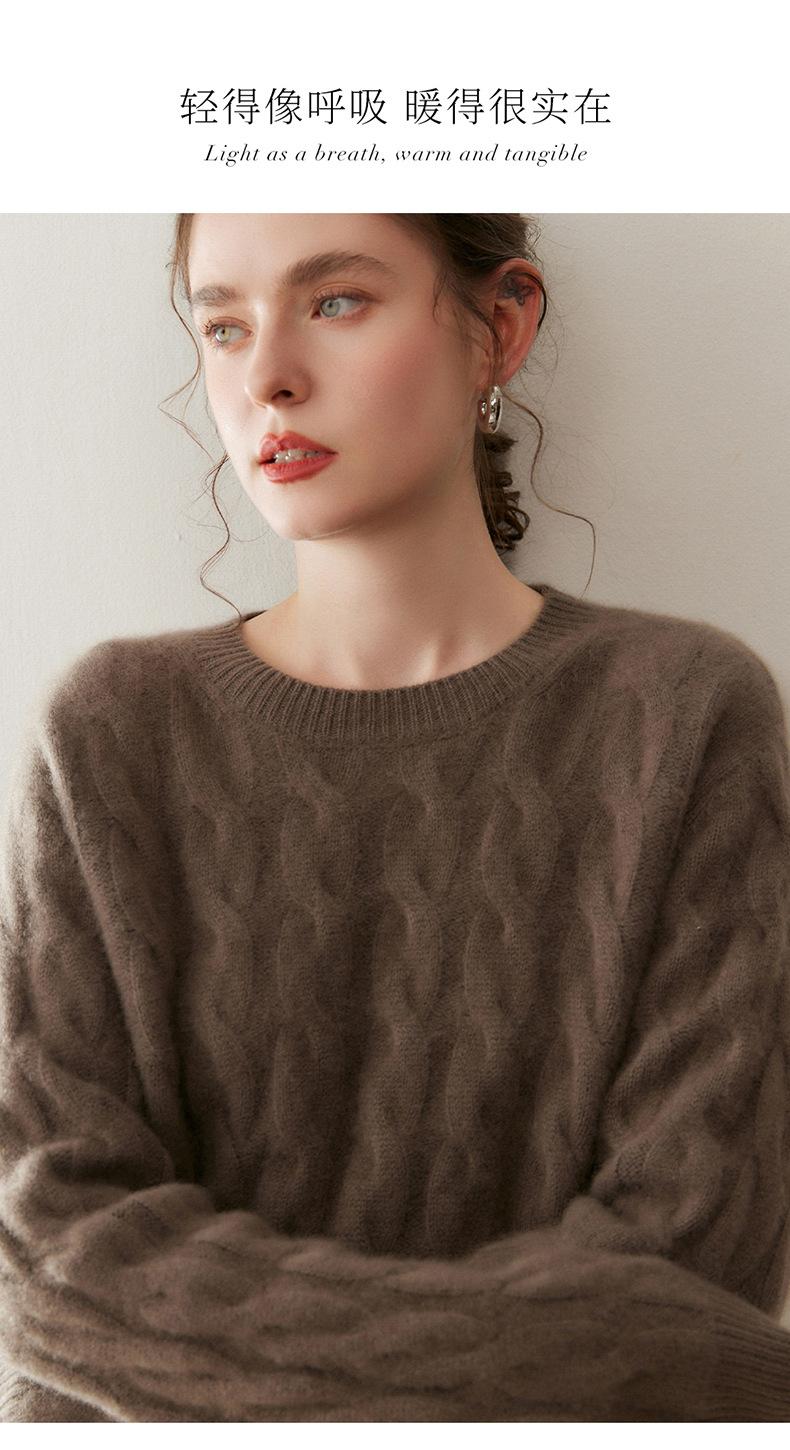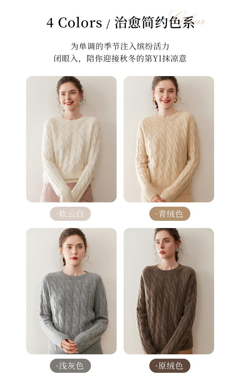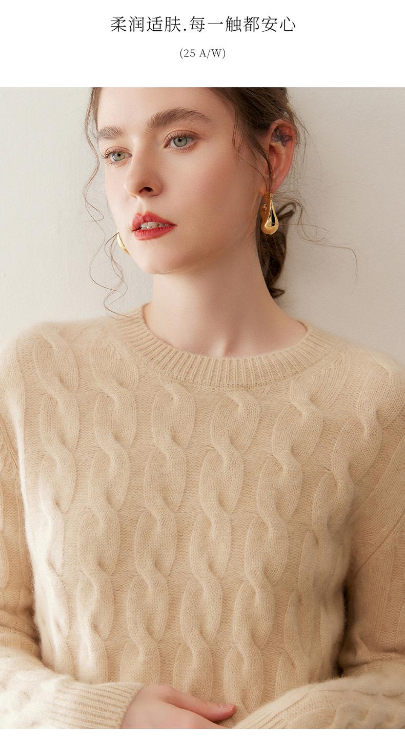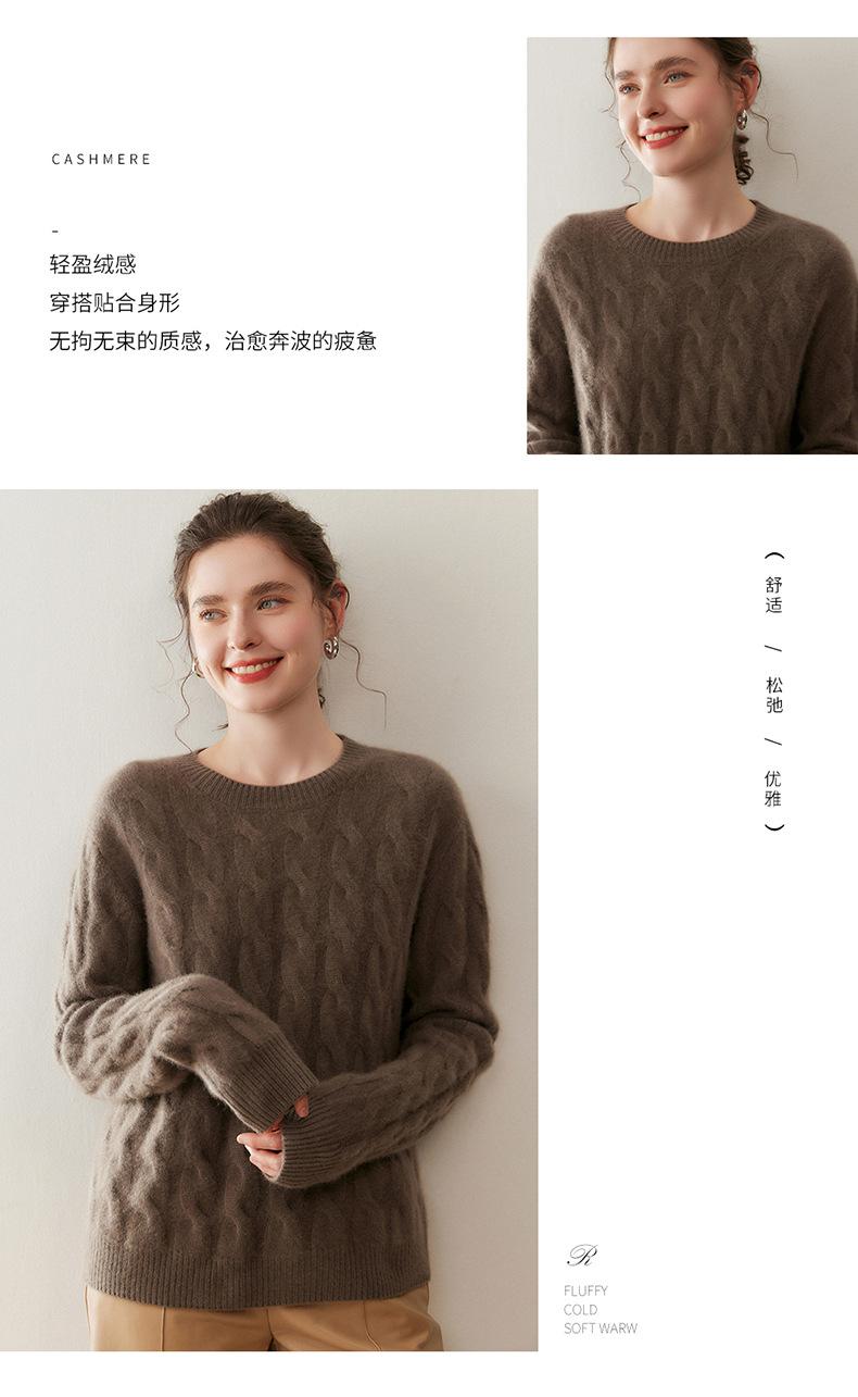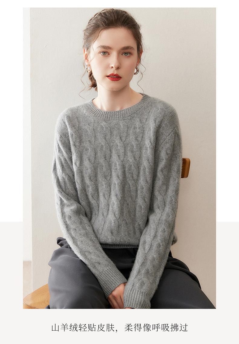 Top de capa base de punto de cachemira de color sólido con punto de cable integral estilo coreano, holgado, adelgazante, grueso, suéter para mujer, ropa interior