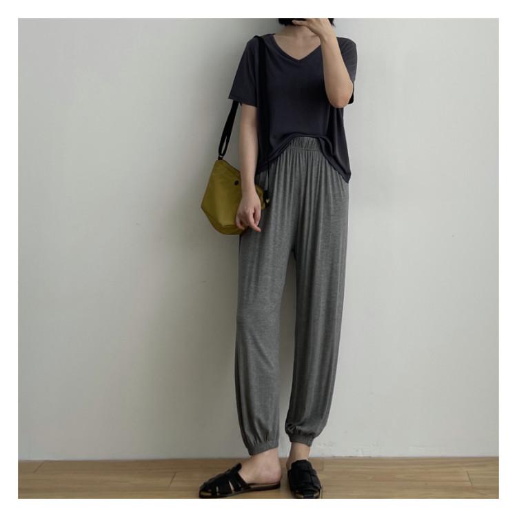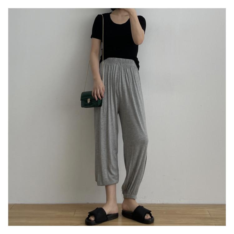 Pantalones Deportivos Grises Suaves Cerosos Cómodos para Mujer Verano Delgados Cintura Alta Rectos Elásticos Pierna Suelta Yoga Casual Pantalones de Sudor