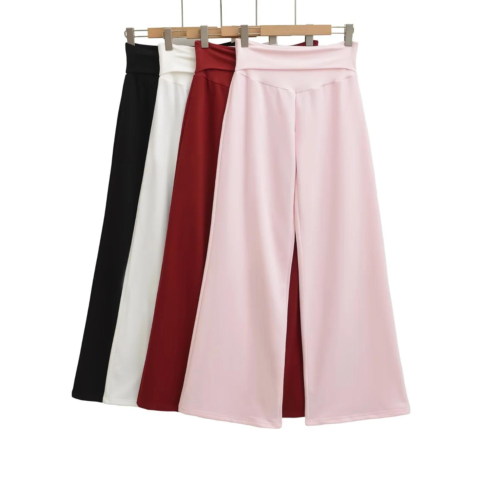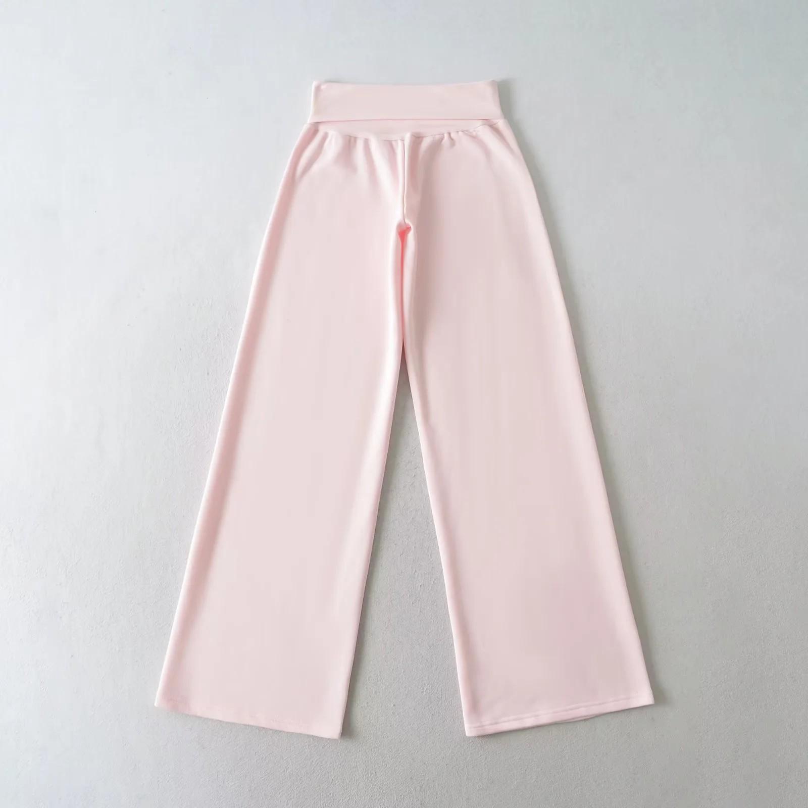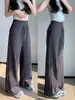 Pantalones anchos de tiro alto con vuelta de estilo americano perezoso para mujer, otoño e invierno, nuevos, versátiles, casuales, adelgazantes, de pierna recta, pantalones deportivos