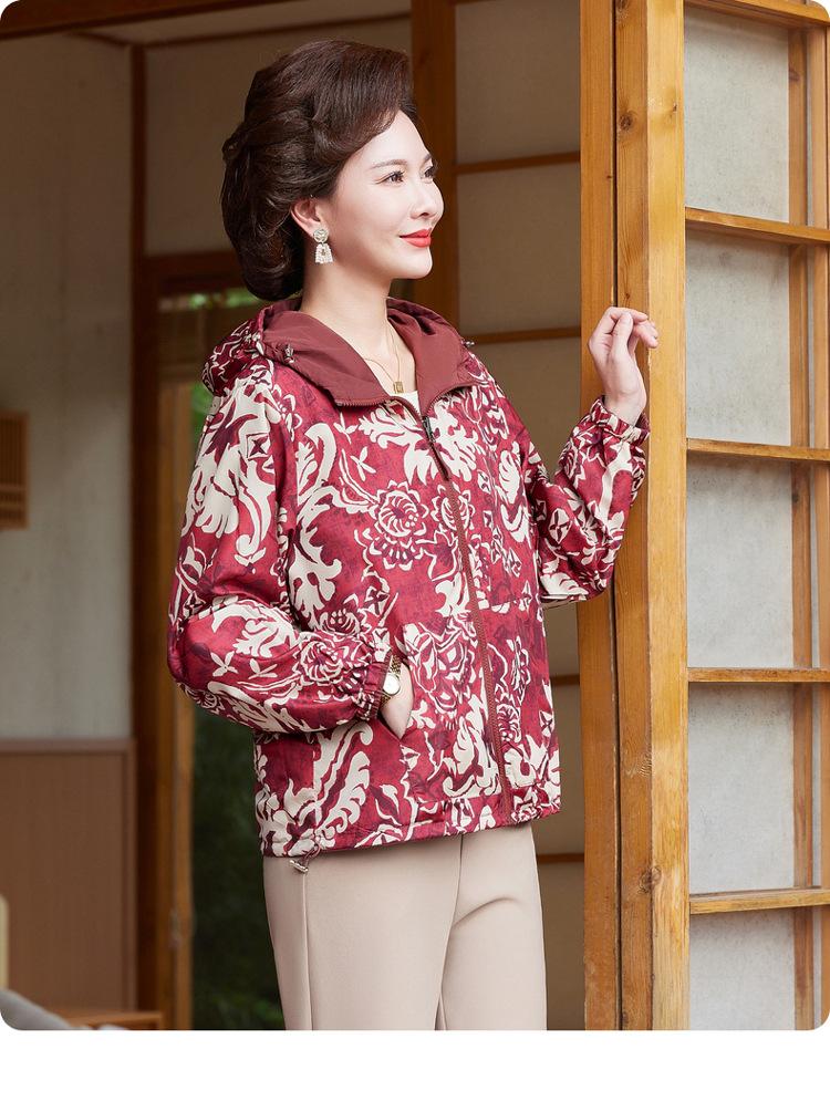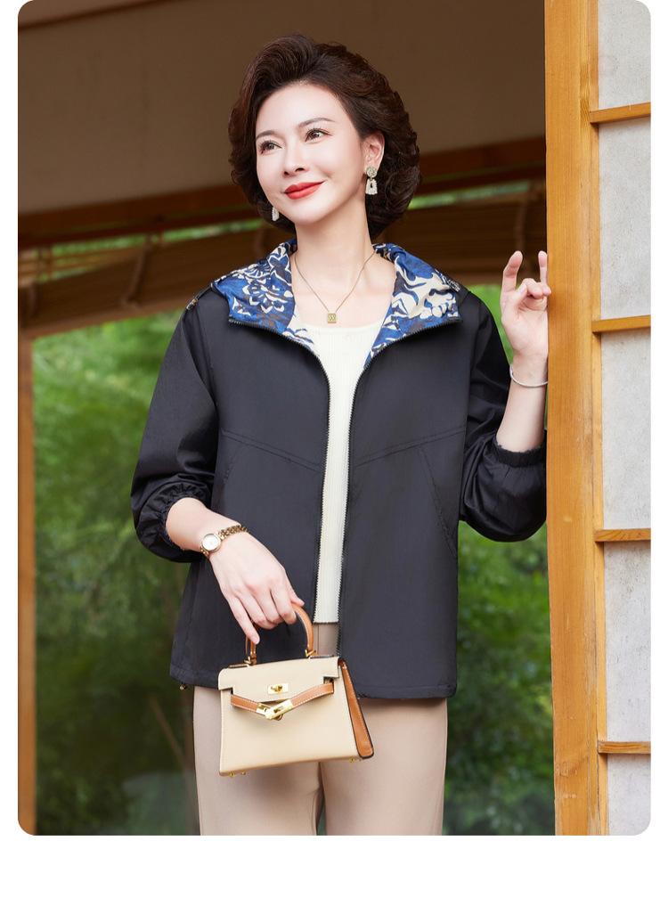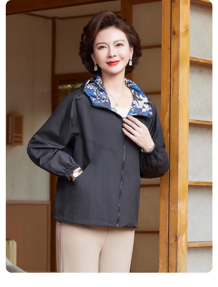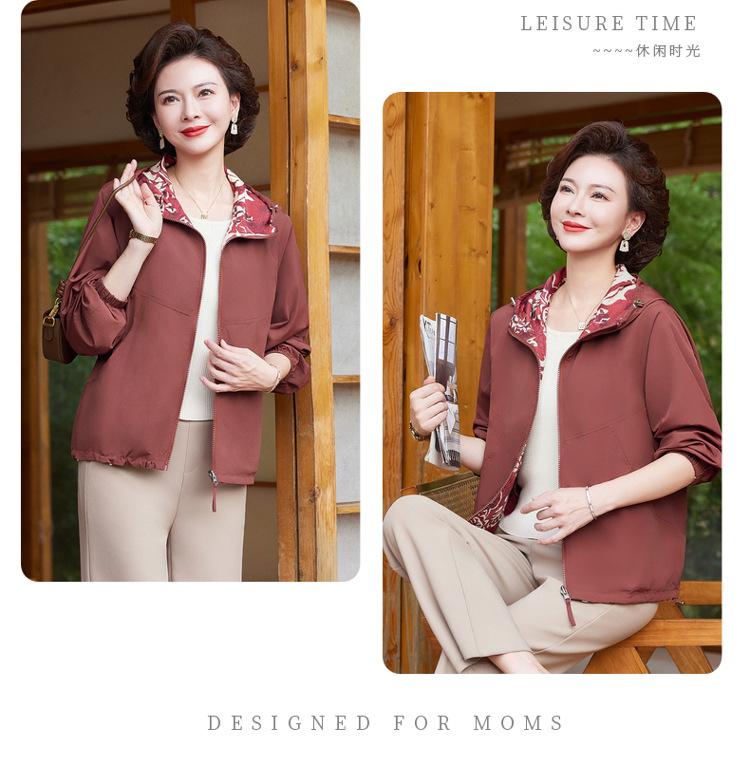 Encantador Elegante Ropa para Mujeres de Mediana Edad y Mayores Cárdigan con Cremallera Estilo de Temporada Primavera y Otoño con Capucha Reversible Ropa de Mamá Chaqueta Abrigo