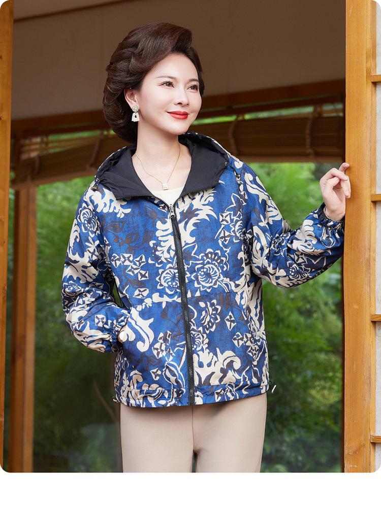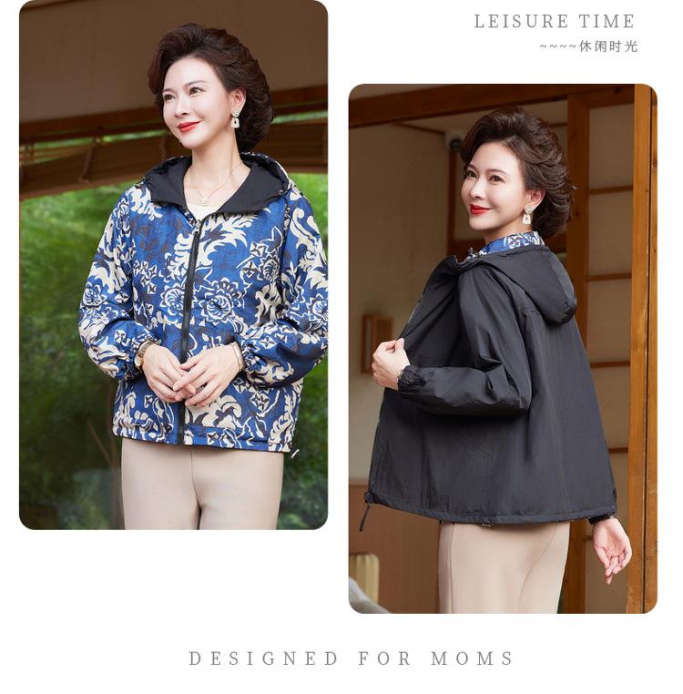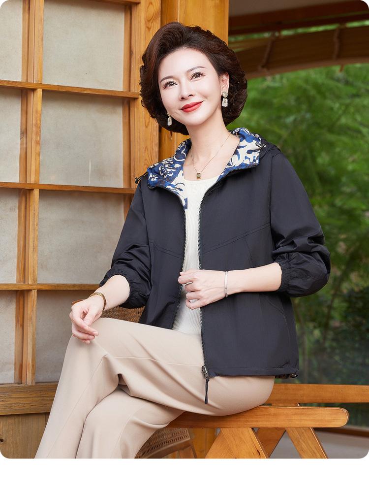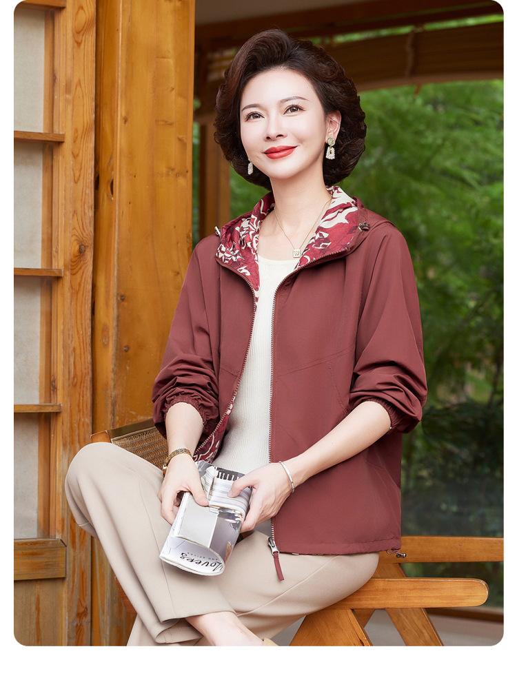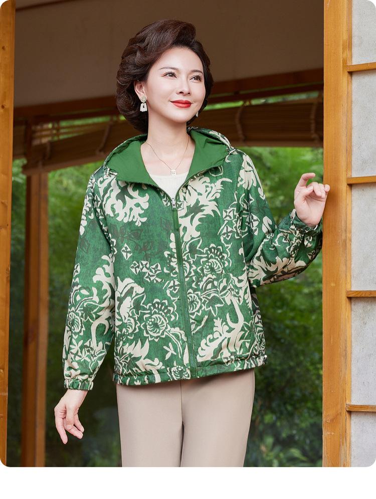 Encantador Elegante Ropa para Mujeres de Mediana Edad y Mayores Cárdigan con Cremallera Estilo de Temporada Primavera y Otoño con Capucha Reversible Ropa de Mamá Chaqueta Abrigo