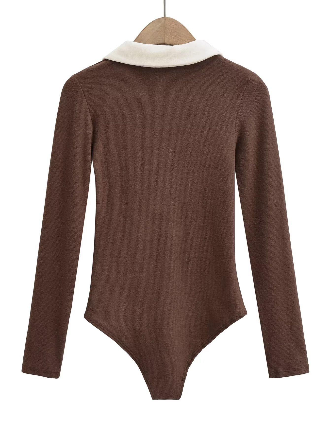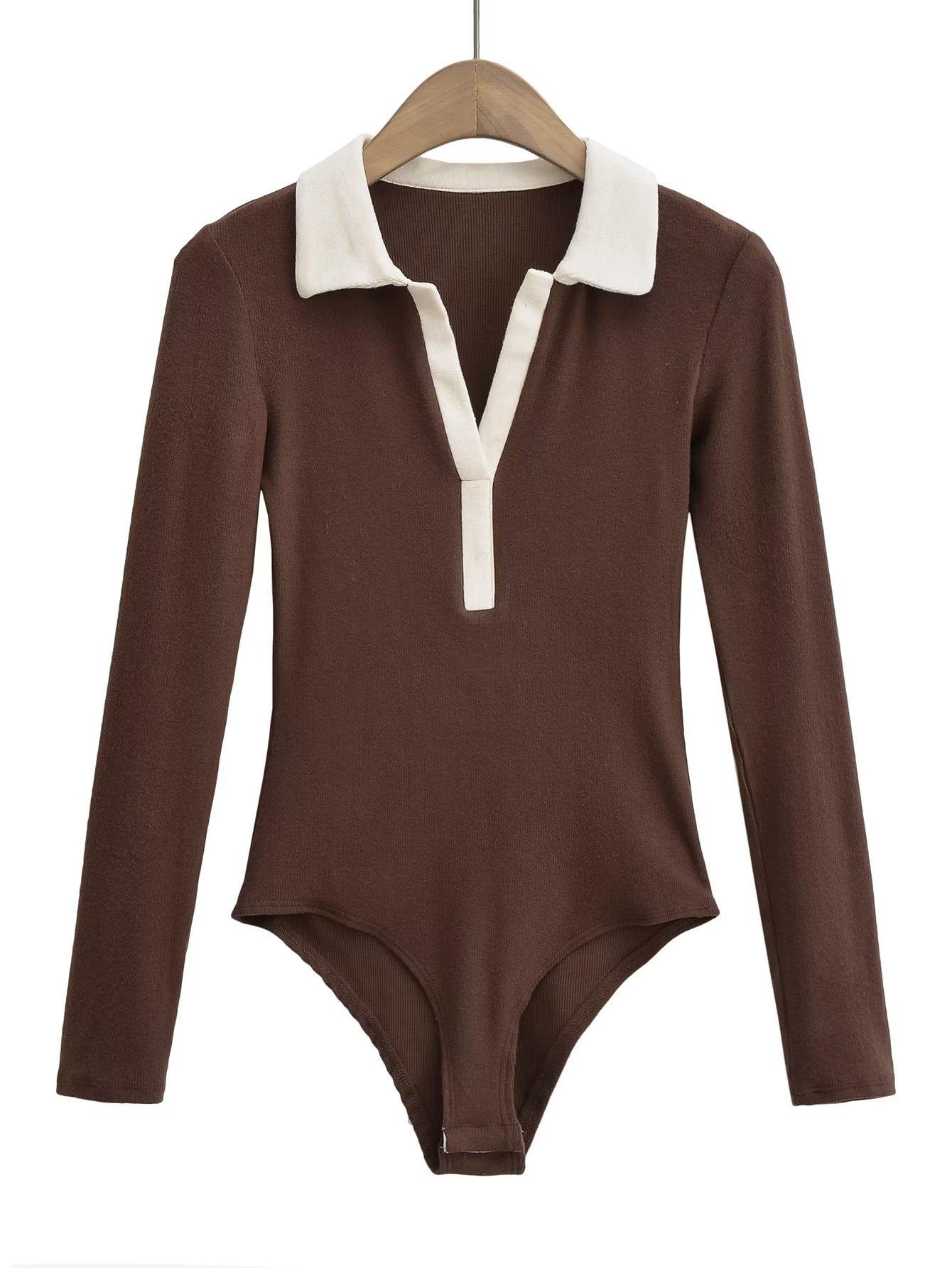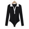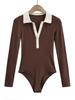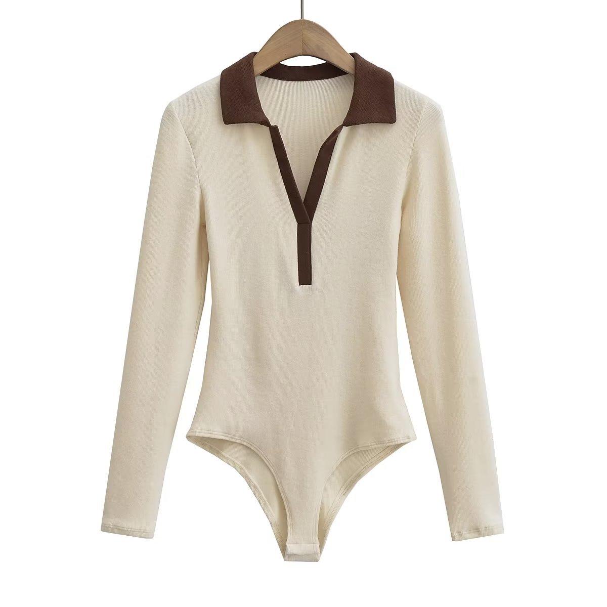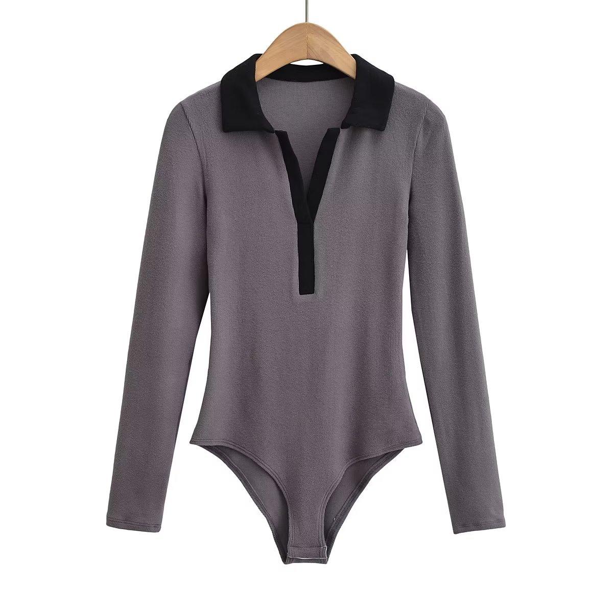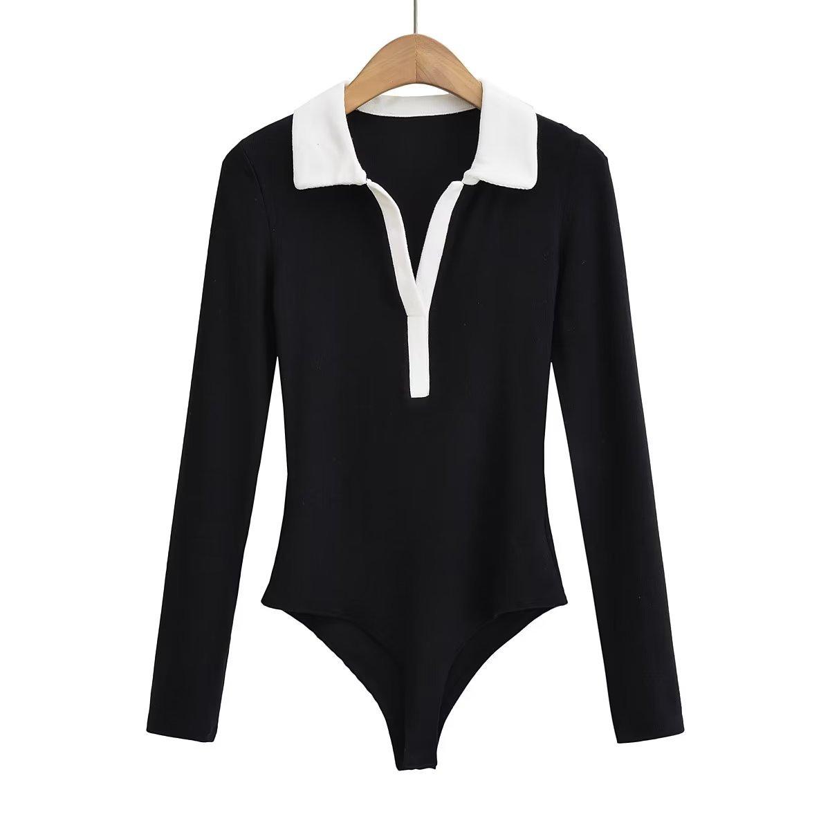 Mono con cuello en V 2022 para mujer Leyin ropa de chica hot sexy entrepierna manga larga camiseta fondo camisa top