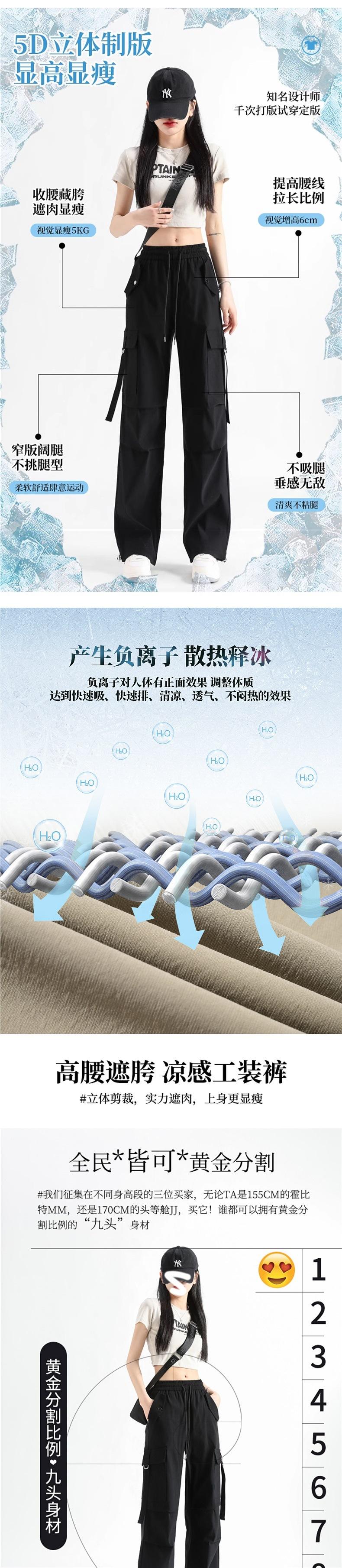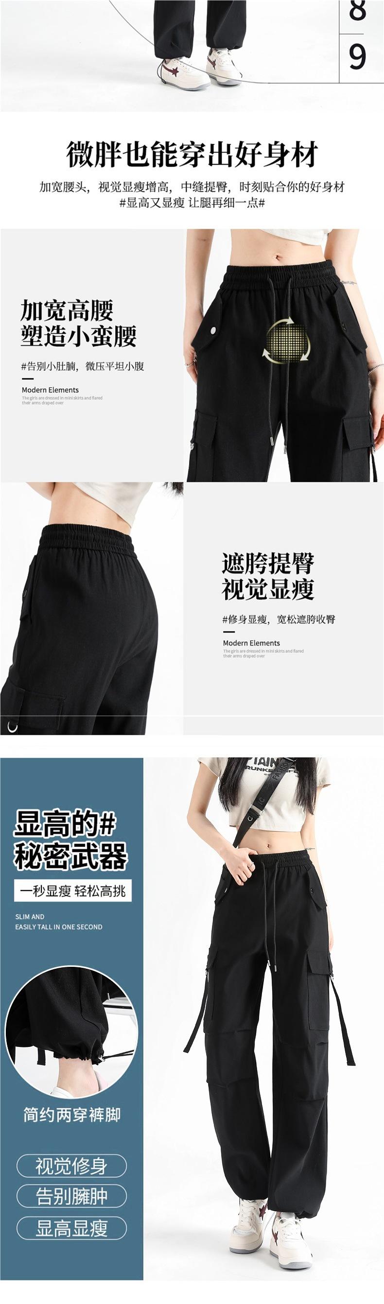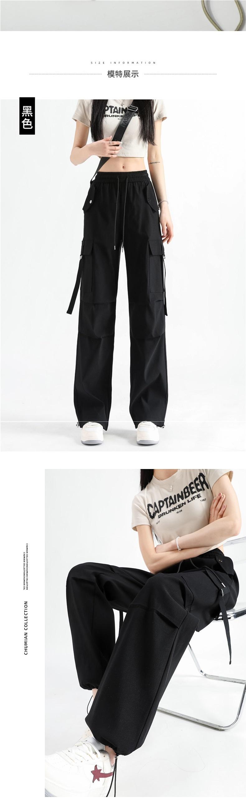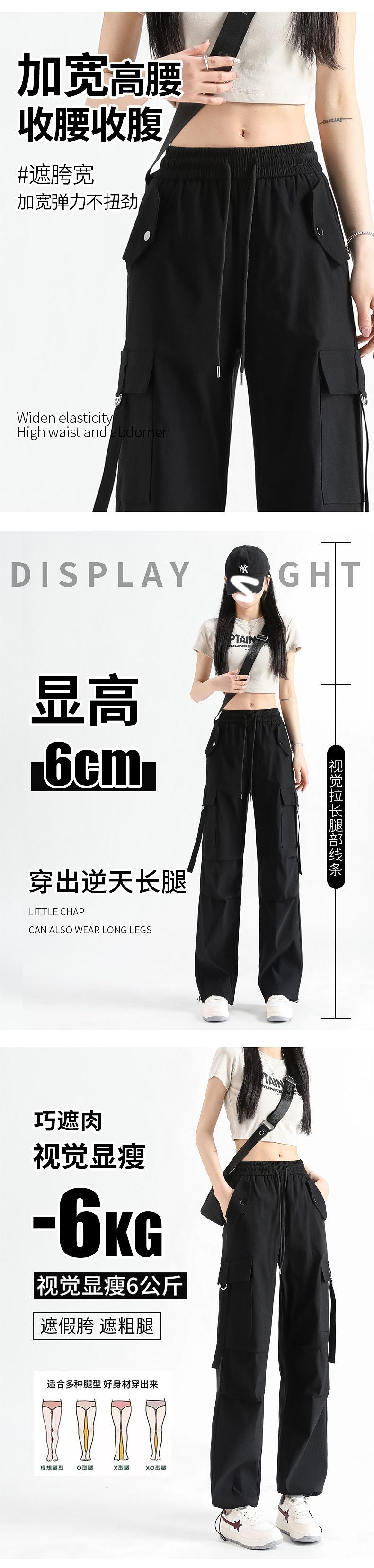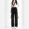 Pantalones Cargo Negros para Mujer Verano 2025 Nuevo Americano Pierna Recta Puño Talla Pequeña Holgados Casuales Pierna Ancha