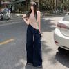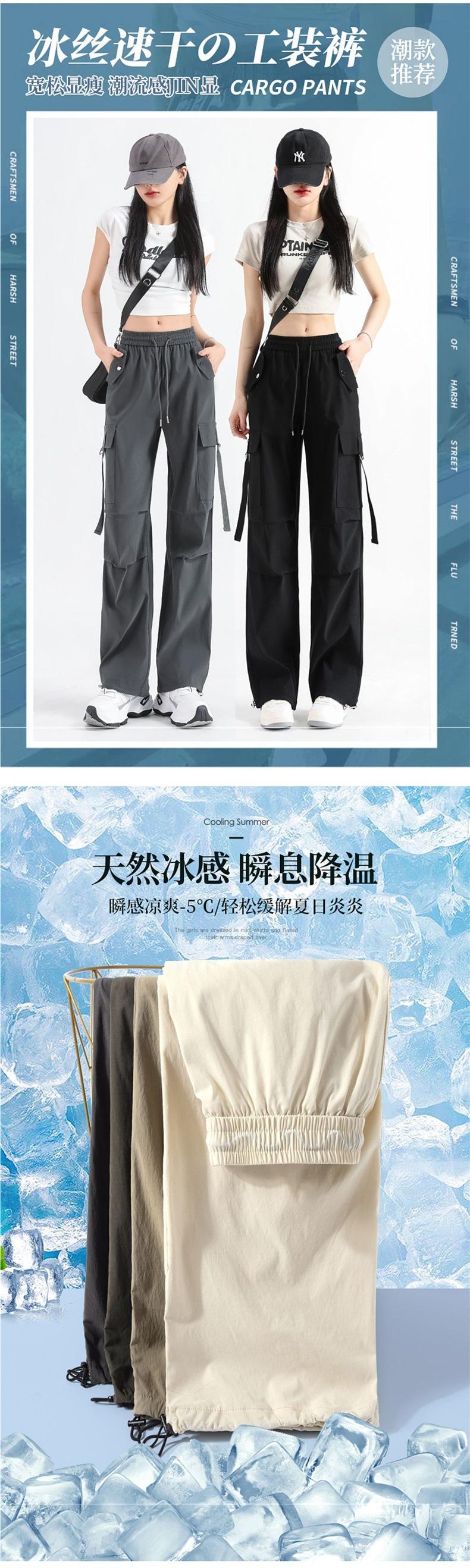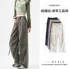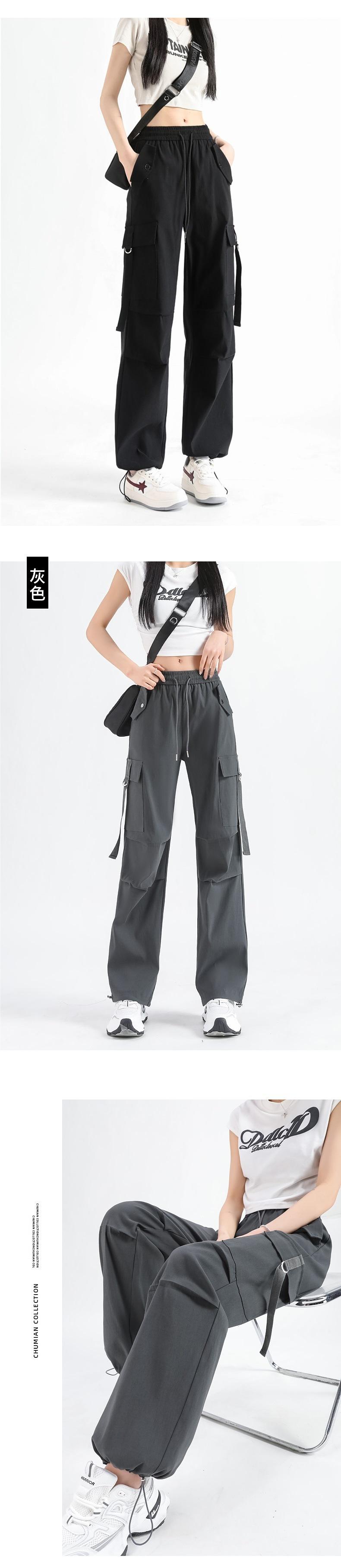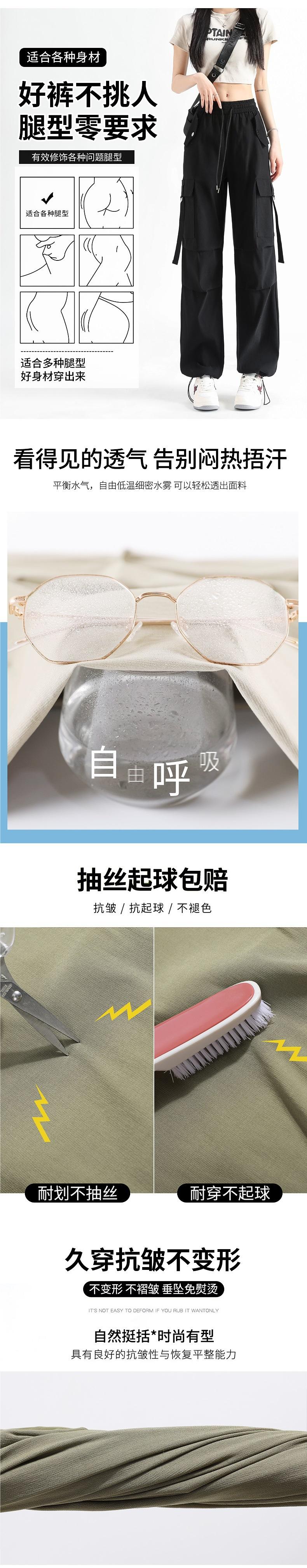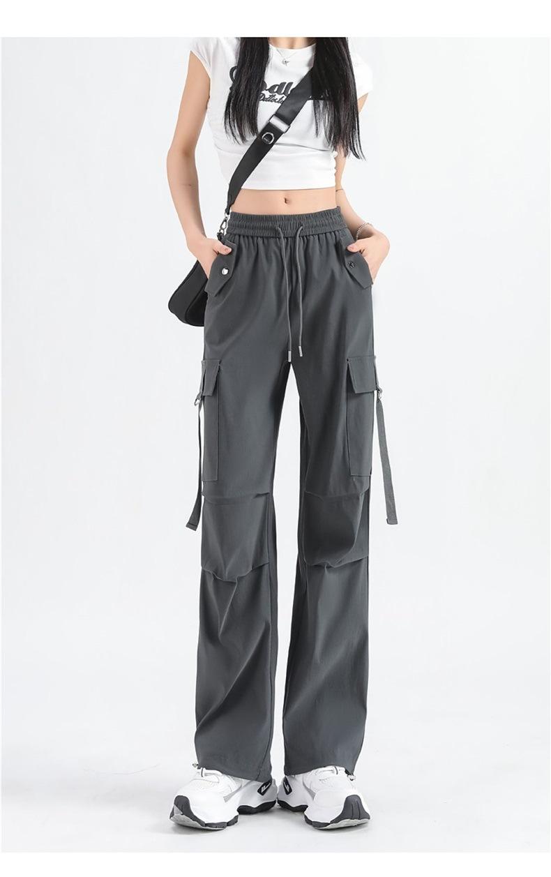 Pantalones Cargo Negros para Mujer Verano 2025 Nuevo Americano Pierna Recta Puño Talla Pequeña Holgados Casuales Pierna Ancha