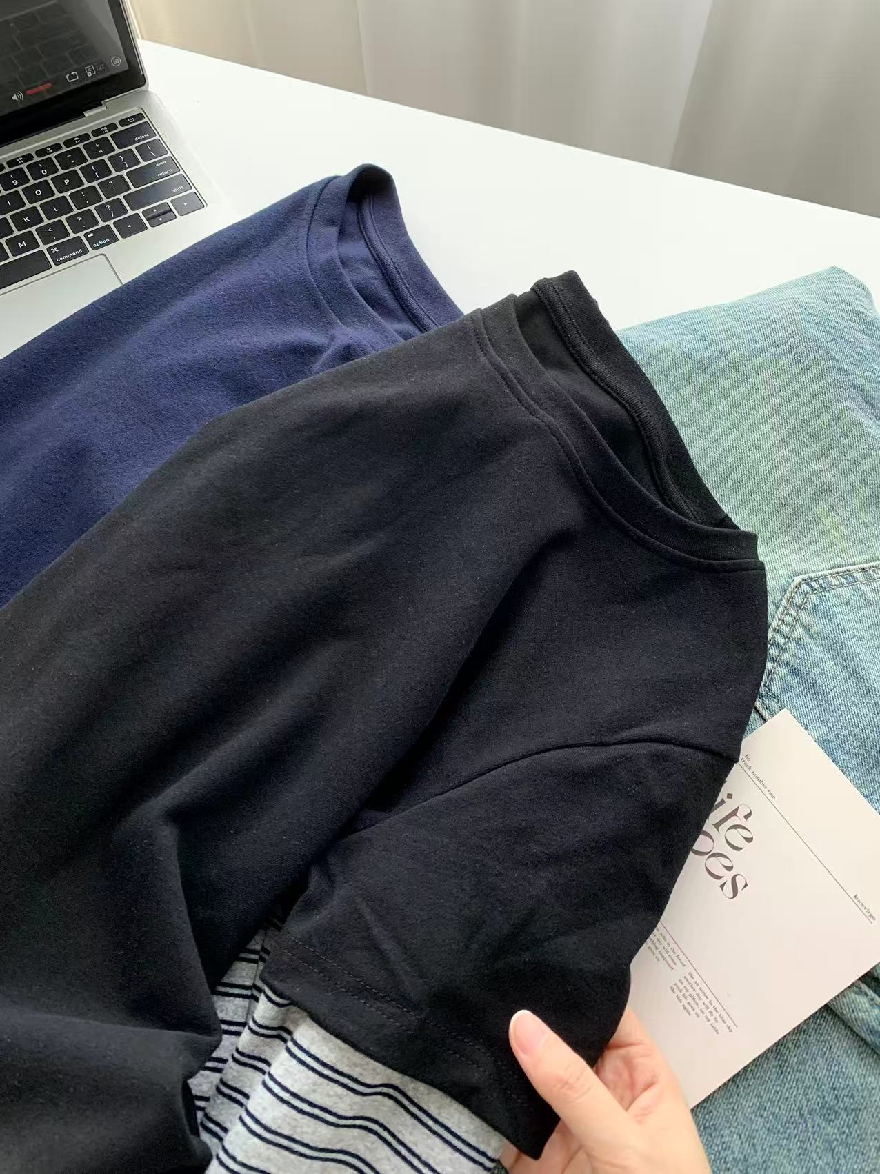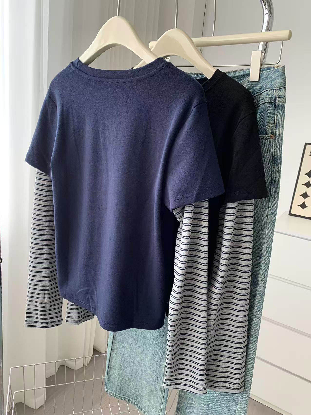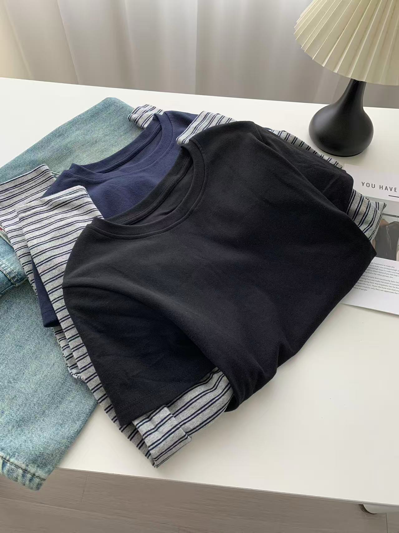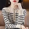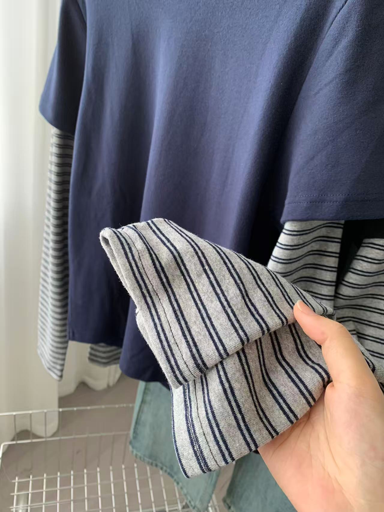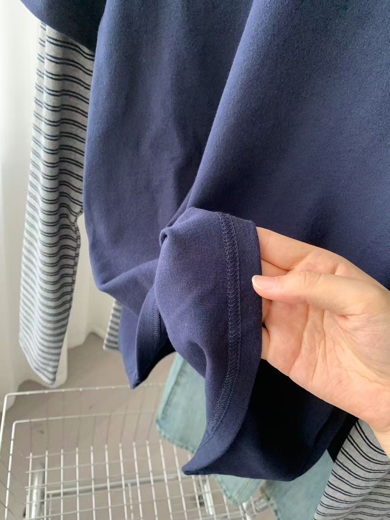 Sentido del diseño Camiseta de manga larga a rayas patchwork estilo coreano mujeres moda retro chic 25 otoño/invierno cepillada cuello redondo camisa base