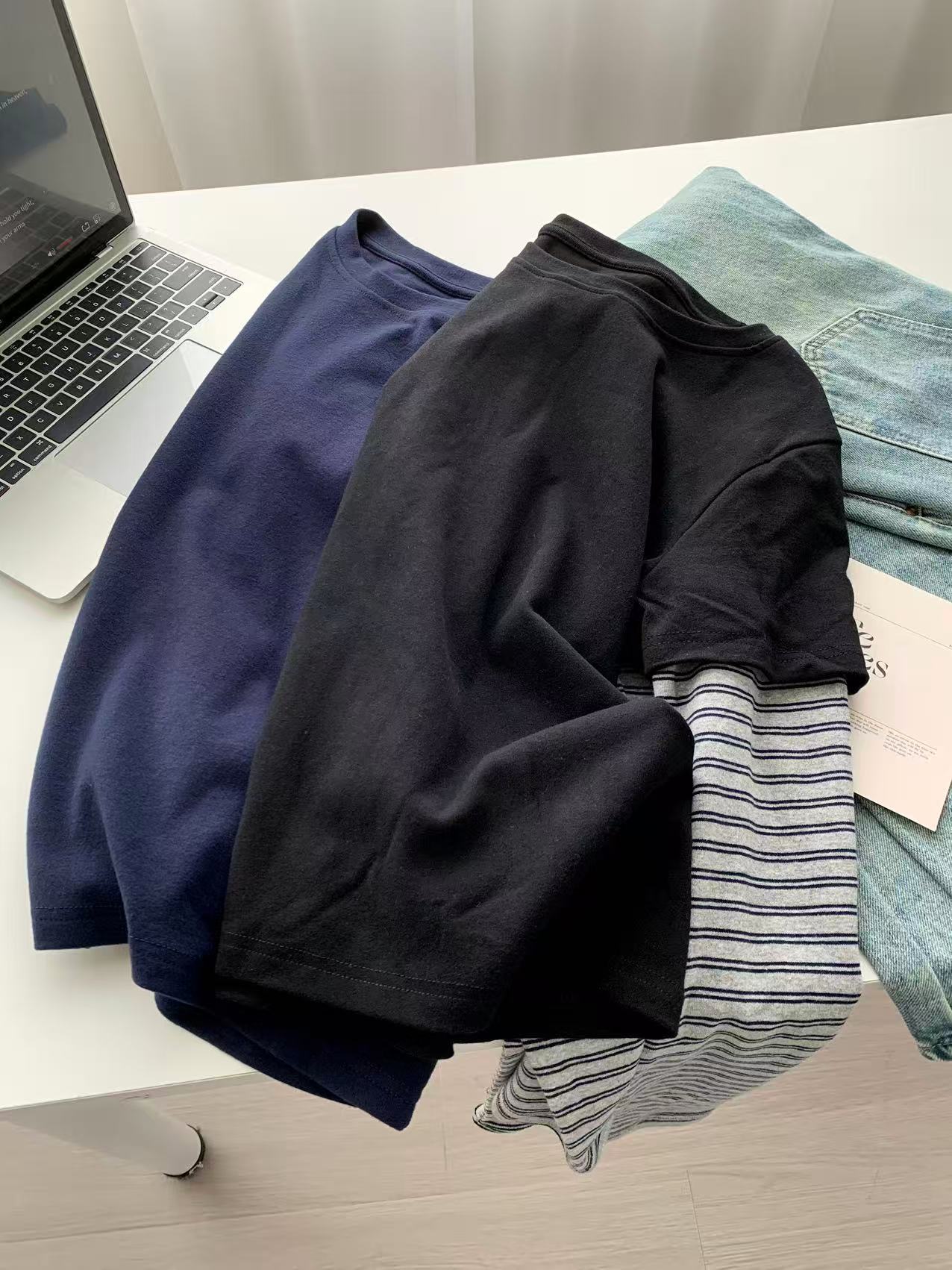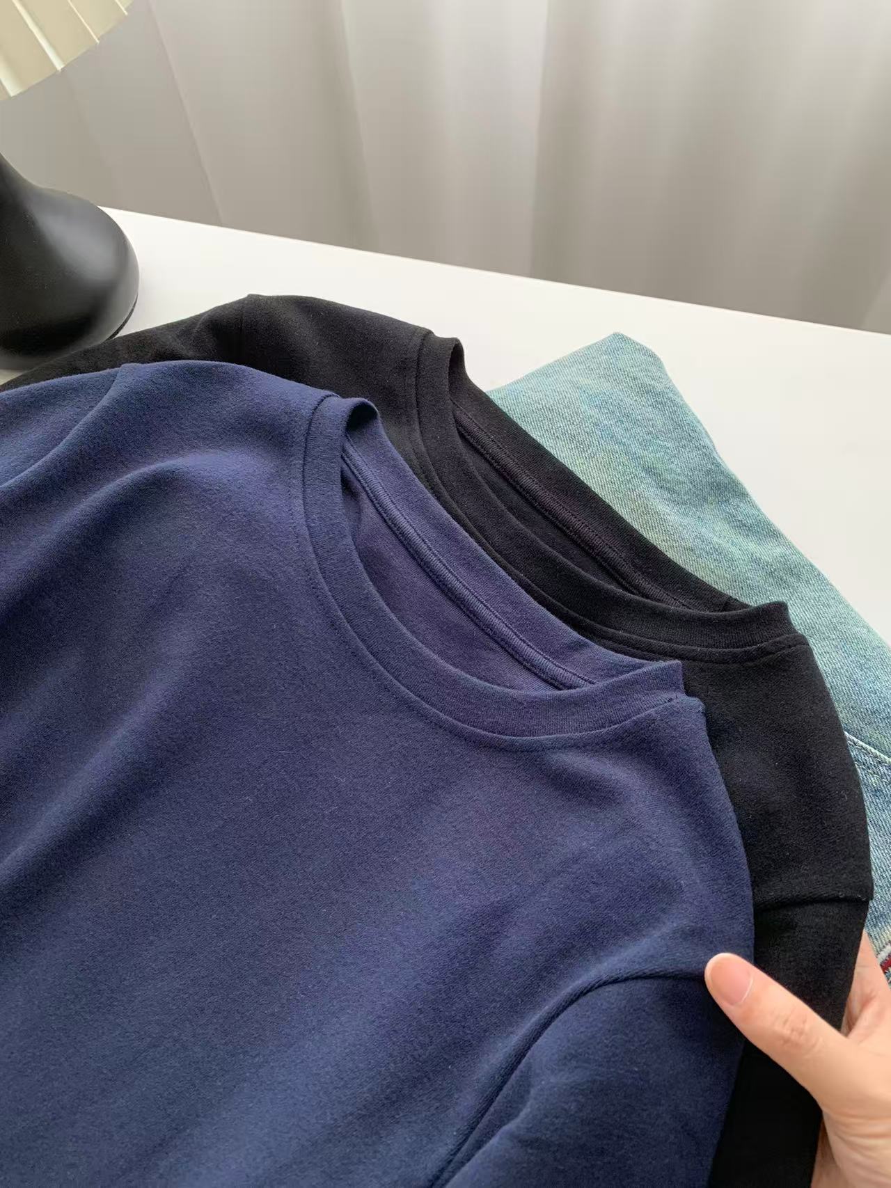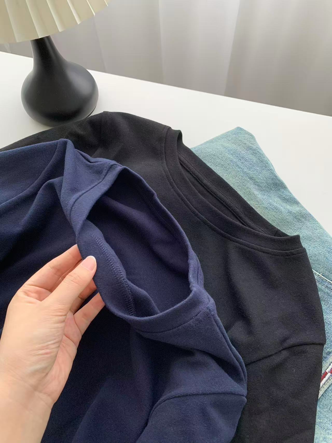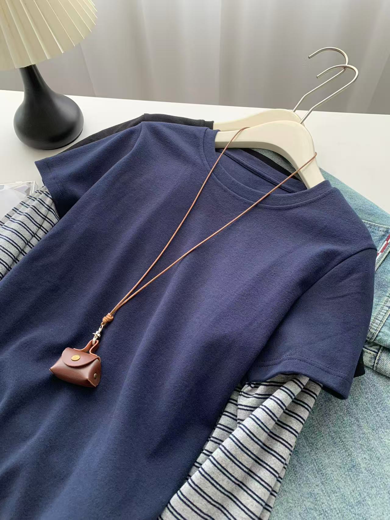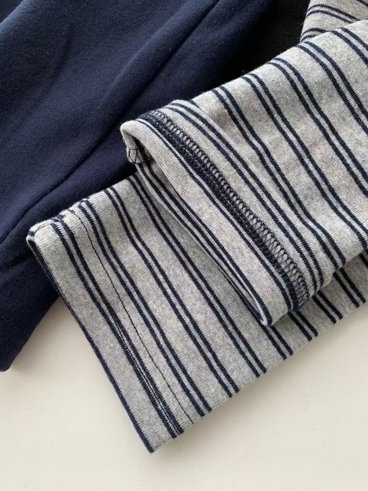 Sentido del diseño Camiseta de manga larga a rayas patchwork estilo coreano mujeres moda retro chic 25 otoño/invierno cepillada cuello redondo camisa base
